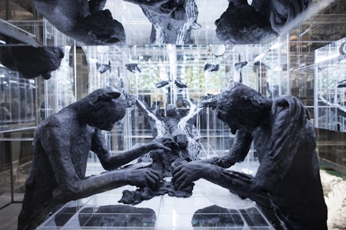 David Altmejd creates sculptures that often blur the distinction between interior and exterior, surface and structure, representation and abstraction. The human body in relation to processes of decay, renewal and transformation is a principal theme, with some sculptures appearing to either create or destroy themselves. His sculptures, which range from monumental to head scaled works, often incorporate a myriad of unexpected materials, the combinations of which can be captivating, disturbing or extremely poetic. Motivated by the invisible worlds that often exist beneath the surface of things, the artist reveals the hidden structures in his own works through negative spaces: gaps, holes, fissures and crystal-filled orifices are a recurring motif. Altmejd is also known for his earlier series of vast Perspex vitrines filled with labyrinthine arrangements of symbolic objects and materials. In these mesmeric works, precision and order conjure an aura of mystery and magic.