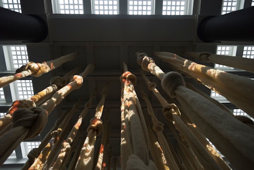 Cecilia Vicuña (b. 1948, Santiago, Chile) lives and works between Santiago and New York. She received the Golden Lion for Lifetime Achievement at the Venice Biennale, Italy in 2022. Other awards include the The Eric and Wendy Schmidt Environment and Art Prize, LA, CA (2024); Premio Velázquez de Artes Plásticas, Madrid, Spain (2019); Herb Alpert Award in the Arts, Santa Monica, CA (2019); Anonymous Was a Woman Award, New York, NY (1999); and The Andy Warhol Foundation Award, New York, NY (1997). In 2023-2024, a major travelling retrospective has been jointly organised by Museo Nacional de Bellas Artes (MNBA), Santiago; Museo de Arte Latinoamericano de Buenos Aires (MALBA); and Pinacoteca do Estado de São Paulo. Other recent solo exhibitions include: Pérez Art Museum Miami, Miami, FL (2024); Fourth Universalist Society, Central Park West, New York, NY (2024); Pinacoteca do Estado de São Paulo, São Paulo (2024); Museum of Art of São Paulo Assis Chateaubriand (MASP) (2023); Museo Precolombino, Santiago (2023); MOCA, Tucson (2023); Tate Modern, London (2022); Solomon R. Guggenheim Museum, New York (2022); Museo de Arte Miguel Urrutia (MAMU), Bogotá (2022); Centro de Arte Dos de Mayo (CA2M), Madrid (2021); Museo Universitario de Arte Contemporáneo, Mexico City (2020); and CCA Wattis Institute for Contemporary Arts, San Francisco (2020), among others.