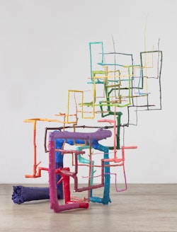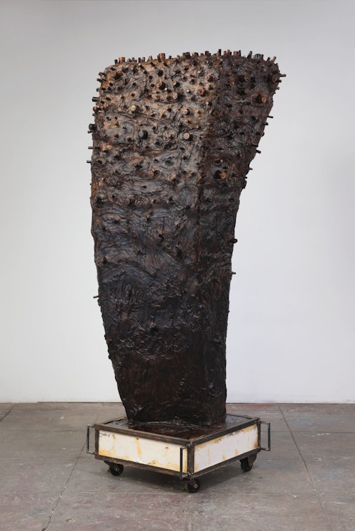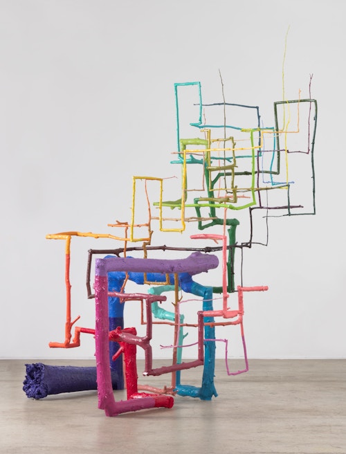 Evan Holloway has devoted more than three decades to advancing the field of sculptural practice. His material, formal, and conceptual experiments helped define the aesthetic of the burgeoning Los Angeles art world of the 1990s and he continues to be a leading voice in contemporary sculpture. Holloway’s interest lies less with questions of illusionism or formalism and more with the haptic potential of sculpture. While his interrogations into the limits and possibilities of sculpture are inspired Post-Minimalist materialists like Eva Hesse and Conceptual art pioneers such as Robert Morris, Holloway’s work is also positioned within the tradition of Conceptual art specific to California. By opening his practice to encompass sound, video, printed matter, and painting, Holloway articulates the liminal spaces between mediums. His deceptively rough-hewn aesthetic and his preference for working at relatively intimate scale engage viewers in an experience of art that affirms the body. At the same time, his interest in mysticism, esotericism, and spiritualism challenge the notion that our physical embodiment is the totality of our existence.