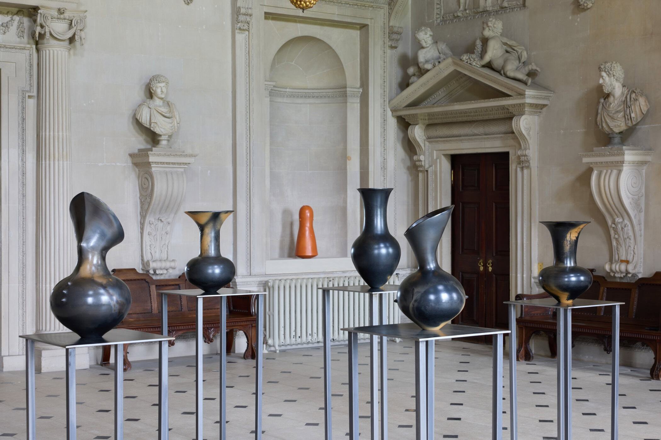 Odundo treats the vessel as an archetype that transcends culture, geography and time. It is both a container and a metaphor—an object that holds dualities such as interior and exterior, fragility and strength, presence and void. These oppositions underpin the broader themes that run through her practice: ideas of transformation, identity, memory, and the relationships that connect individuals and histories. Her making process is slow, deliberate and physically immersive. Hand-building using traditional coiling techniques, Odundo shapes each form with precision before carefully refining its surface. The distinctive depths of colour—ranging from warm terracotta to a polished black—are the result of nuanced firing methods that require expertise, patience and intuition. Leaving the vessels unglazed preserves a subtle porosity, which enhances their tactile immediacy and contributes to the sense that they are not inert forms but living entities shaped by breath, rhythm and time.