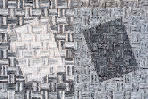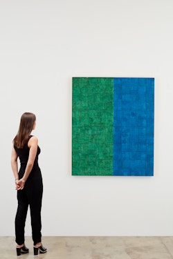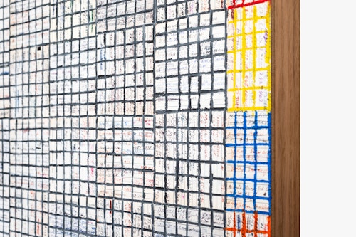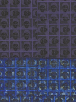 In a career spanning four decades, McArthur Binion (b. 1946, Macon, MS, USA) has gained recognition as an artist, writer and teacher. He became the first African American to obtain a master’s degree in fine arts in painting from Cranbrook Academy of Art (1973) and also holds a degree in creative writing. These dual passions – words and images – define his life and work to this day. After graduating, Binion moved to New York and immersed himself in the city’s vibrant creative scene, then dominated by minimalism and Pop Art. Friends with artists such as Brice Marden and Jean-Michel Basquiat, Binion pursued an artistic career and accepted the first of several notable teaching positions. Moving to Chicago in 1991, he became Professor of Art at Columbia College in 1993. In 2013, he rediscovered the address book that he’d maintained during his twenty-year stay in New York and began exploring its creative potential. Typically executed in oil-stick, his work draws upon the traditions of minimalism (the grid arrangement, serial gestures) whilst also being a form of self-portraiture. Underneath the precise and methodical markings lie photocopied pages with intimate details of Binion’s own life ranging from photos of his childhood home to his birth certificate and charged found photographs, such as those depicting the violence of lynching in America. Binion refers to this layer as the ‘under conscious’ or ‘substrate’, the details of which only become legible when standing close to the painting. Viewers are thus compelled to alter their viewing positions, shifting between the microscopic detail (words) and the bigger picture (image).