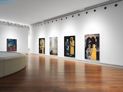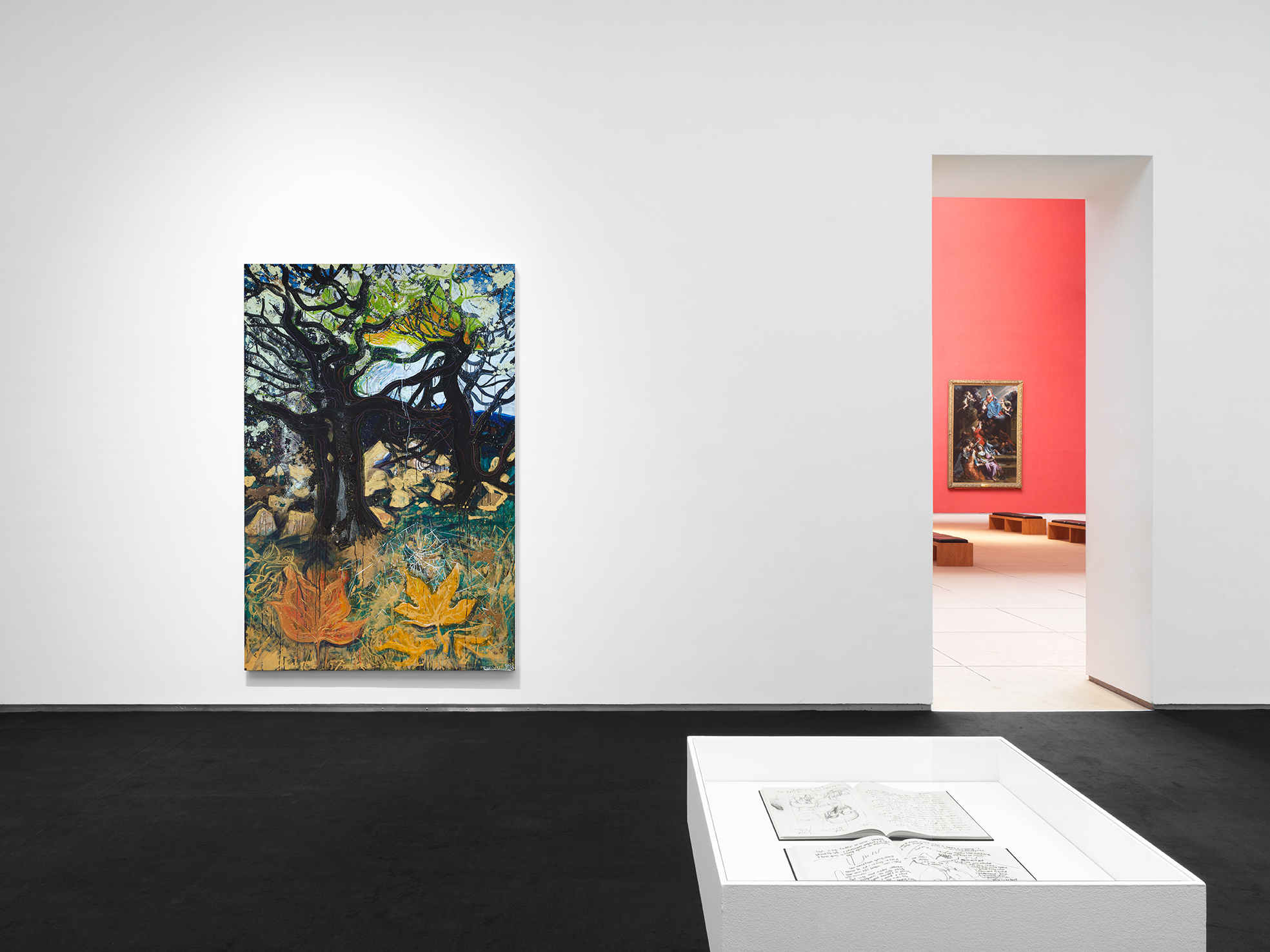 Houseago’s sculptures, which range from monumental to smaller-scale works, have a striking ability to simultaneously convey states of power and vulnerability. The artist uses materials associated with classical and modernist sculpture (such as carved wood, clay, plaster and bronze), as well as the less traditional (steel rods, concrete and hessian), to emphatically reveal the creative processes that drive his practice. He typically combines elements rendered in flat portions of wood with others sculpted in the round, together with hand-drawn components that are cast and printed onto the works in a technical tour-de-force. Whilst Houseago’s oeuvre can be seen as a continuation of a historical sculptural tradition, the unusual combinations of materials, references to popular culture and the interplay between two- and three-dimensions all serve to challenge the hierarchy inherent within visual forms, and the materials and values with which they are associated. The artist also creates two-dimensional works on canvas and paper, which he describes as a cross between ‘drawing and mapping’. His more recent paintings, executed in a vivid array of hues, are an exploration of the emotional and spatial power of colour.