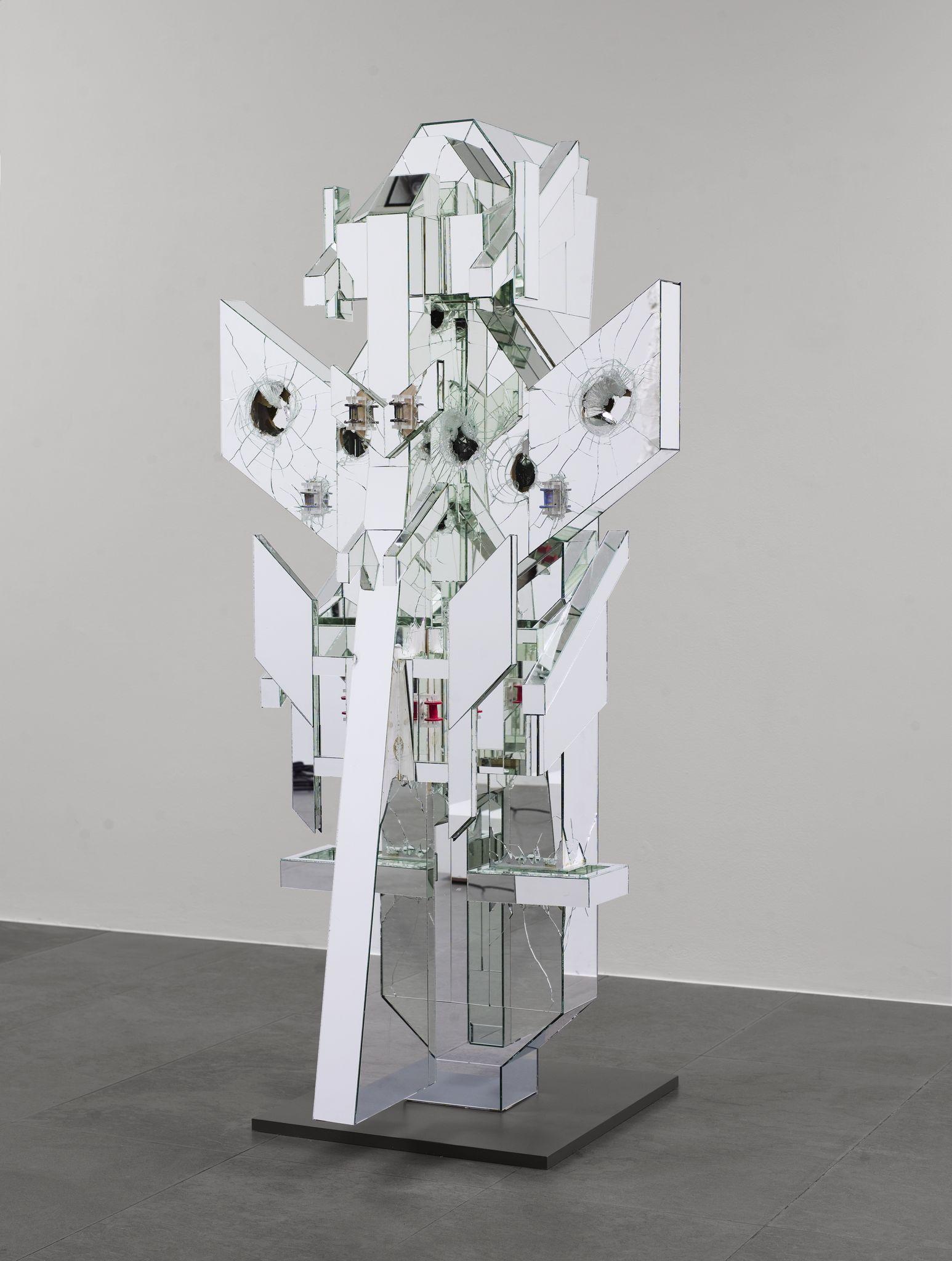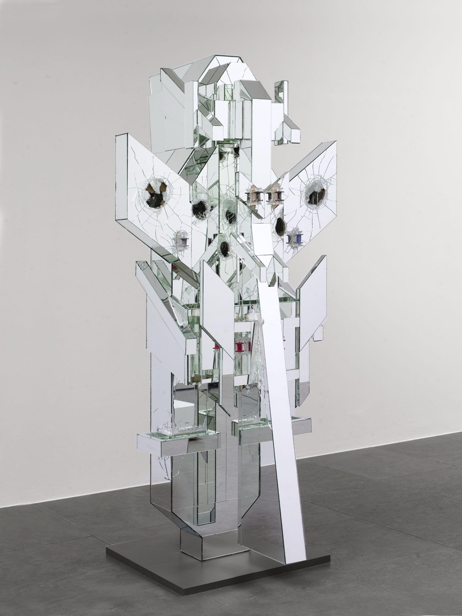 wood, mirror, glazed ceramic, plexiglas, steel, latex paint, glue