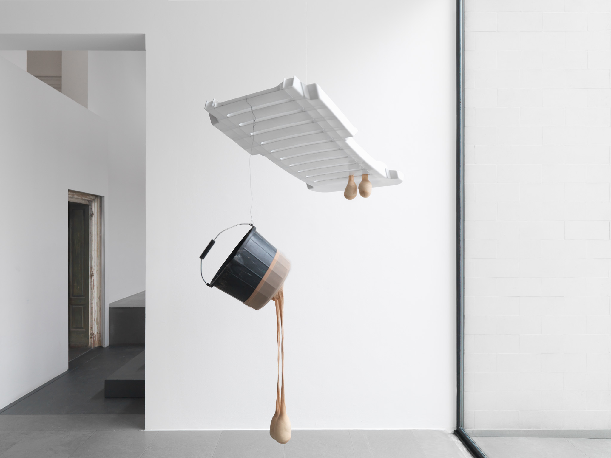 ‘Loungers were originally conceived for the foyer of the Britten studio at Snape Maltings, a raw brick space with stairs and a mezzanine level. I wanted to use the space between the two levels. I drew on familiar elements - stuffed tights, buckets. They have the uncanny air of figures hanging. Looked at another way they’re a bit like musical instruments.’