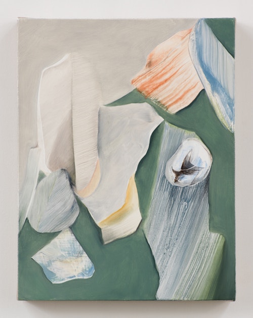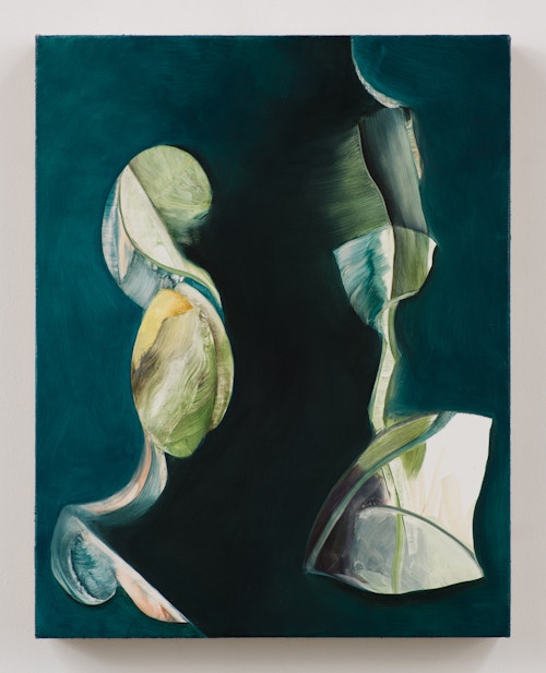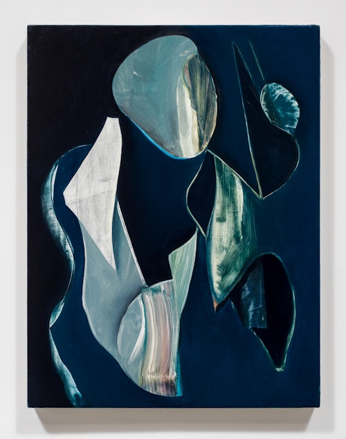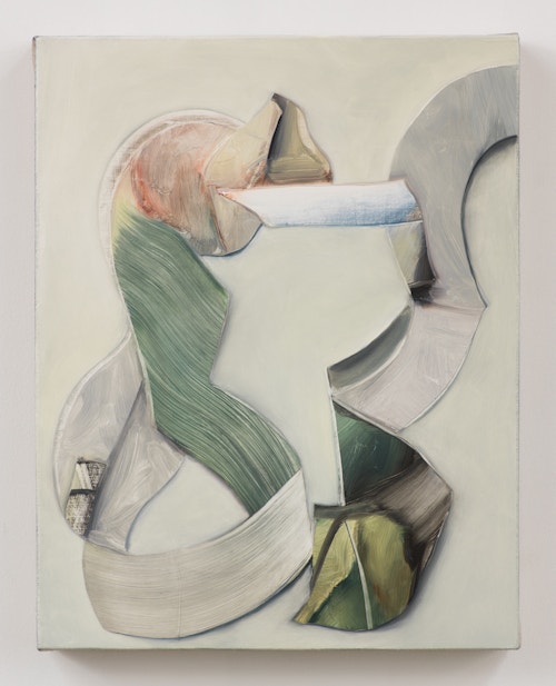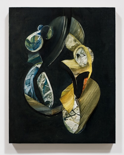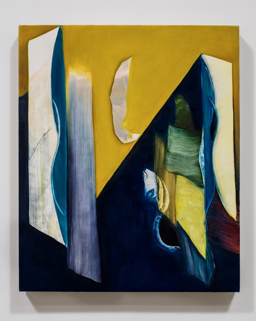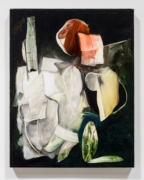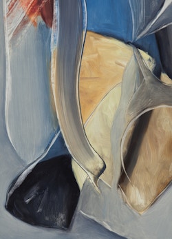 Lesley Vance’s paintings exploit the full potential of contemporary painting. Her abstract compositions accentuate the material qualities of paint but at the same time demonstrate the medium’s ability to create fictional spaces. Vance begins by creating improvised arrangements of objects in her studio and photographing them. Working from these images, with brush and palette knife, she works wet-on-wet creating a kind of sculptural space where paint sits upon paint in one uniform layer. Vance is primarily concerned with colour, texture, and light, but some elements of the imagery she begins with are often preserved. They are included in an intuitive play of shapes, colours and movements that seem to fold in and out of each other. A whole new pictorial space is created, which the artist describes as ‘a tactile and at the same time completely fictional abstraction, that pushes and pulls and complicates spatial norms.’