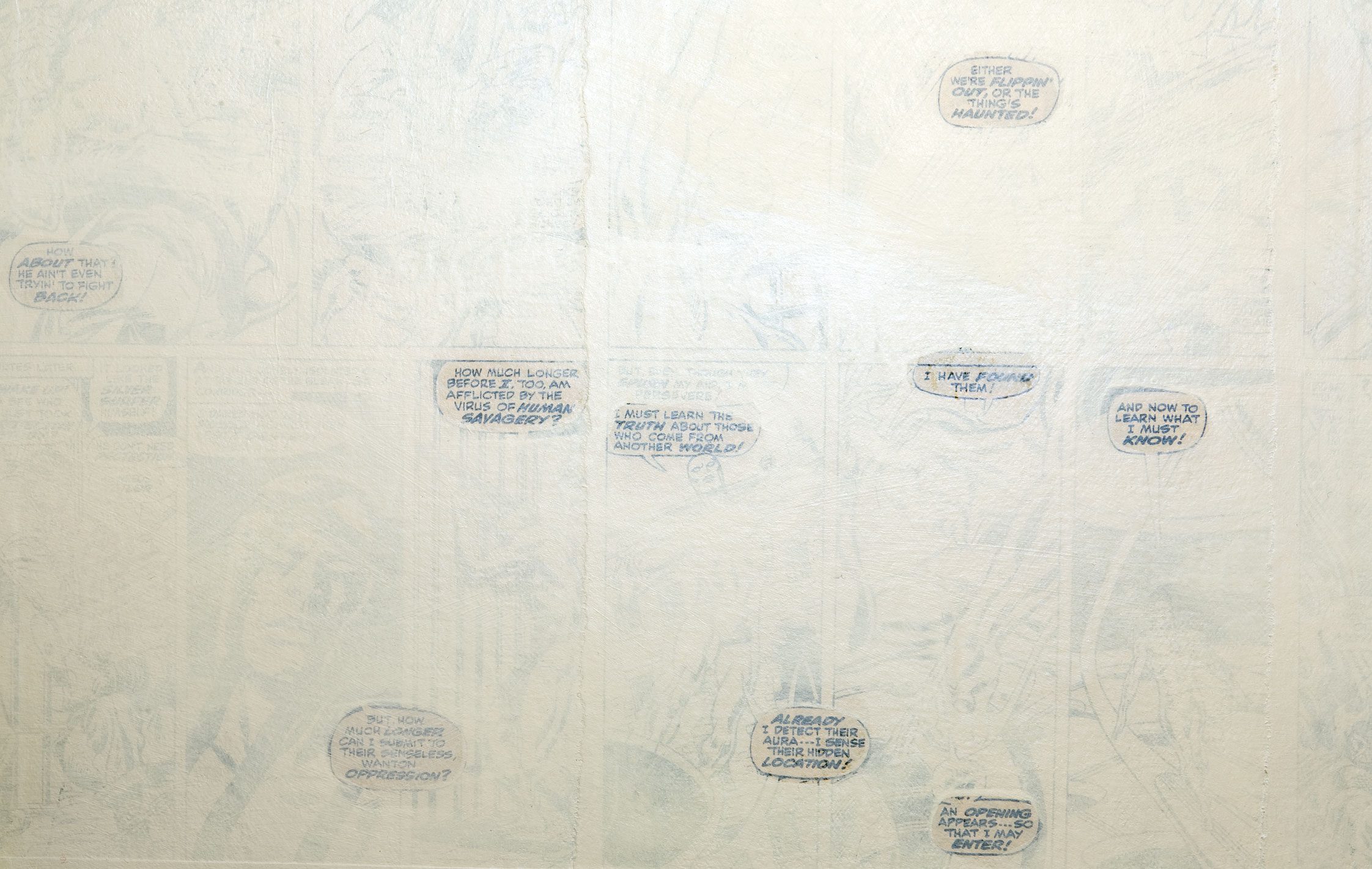 The exhibition at Xavier Hufkens comprises new works on canvas including Invisible Man (after Ralph Ellison) and By Any Means Necessary (after Malcolm X) and A Midsummer Night’s Dream (after Shakespeare and Mendelssohn) and new works on paper such as Study for the Metamorphosen (after R. Strauss) and Oedipus Rex (after Sophocles). These works resonate with references to individual spiritual metamorphoses and social change. The letters IM on the Invisible Man piece refer simultaneously to the book of Ellison, to the biblical ‘I’m the Lord your God...’, to the last letters of ‘victim’ and to the first letters of Martin Luther King’s speech ‘I’m a man’. The Pinocchio (after Carlo Collodi) sculpture speaks of the pedagogical relationship between Rollins and K.O.S. This work from 1992 has been recreated and is adorned by a replica of the eyes one of the members of the K.O.S.