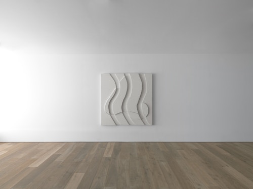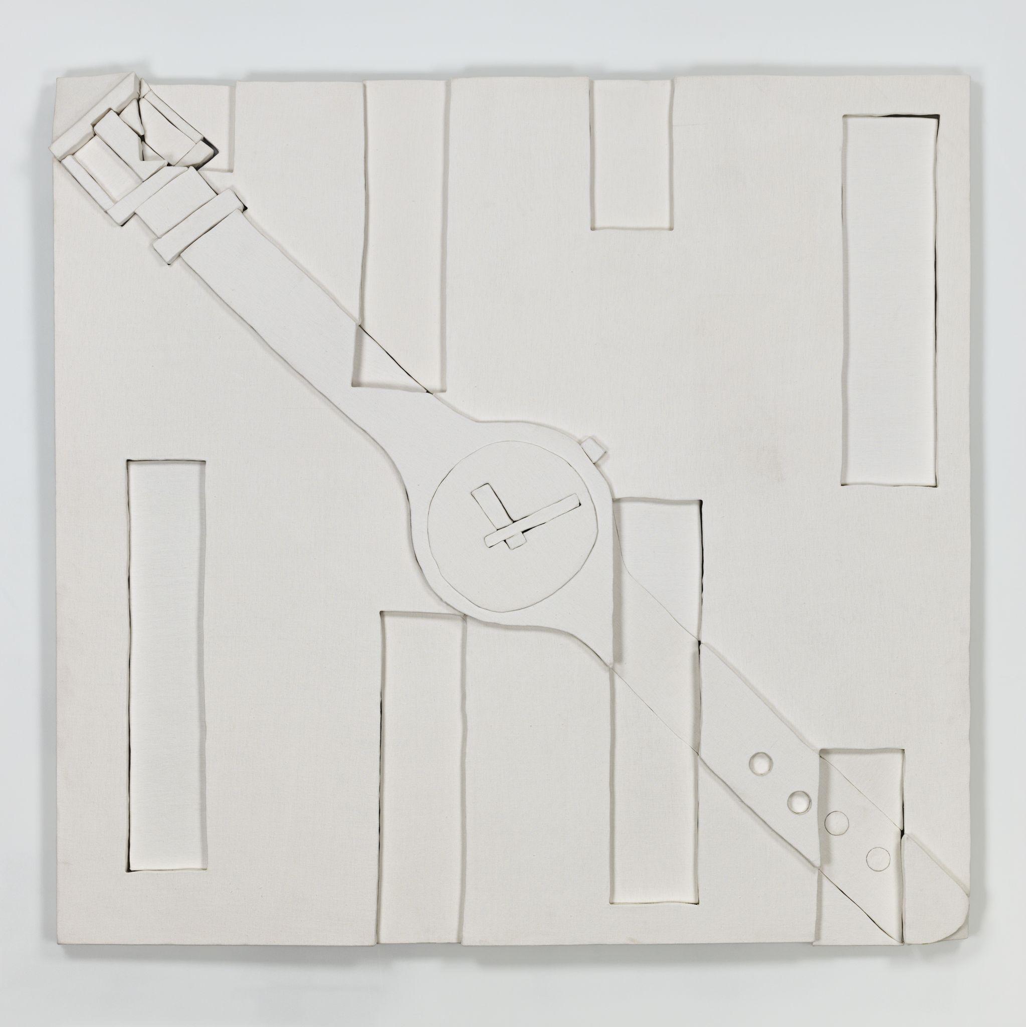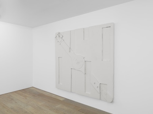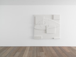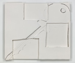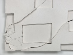 The artist’s oeuvre, which deals with both abstraction and representation, is based upon the history of the two central pillars of 20th-century American art: one being abstract and minimal painting and sculpture, the other being the use of imagery to express language, communication and humour. While previous series have explored one or other of these avenues individually, the artist’s most recent reliefs are an attempt to explore both simultaneously. At the same time, they can also be read as the materialization of far-reaching conceptual concerns – most notably the interdisciplinary tension that exists between sculpture, painting and drawing, as well as the dialogue between the ideas and ideologies surrounding the three traditional modes of artistic expression. Kahn is also interested in the idea of an undefined abstract space: an idea that he feels has emerged through the tension of architectural and pictorial space, and the emergence of a new form of space created in the advent of digital technology. Kahn has responded to this by creating reliefs that are possessed of a specific physicality, one that addresses the more recognisable space of the object, but also the new space of the abstraction. The objects depicted in this series are representative of the artist’s on-going exploration of certain subjects, such as figuration, and are recognisable from previous bodies of work. By consistently honing in on these concerns, the artist is developing a language that runs throughout, and connects, his entire oeuvre.