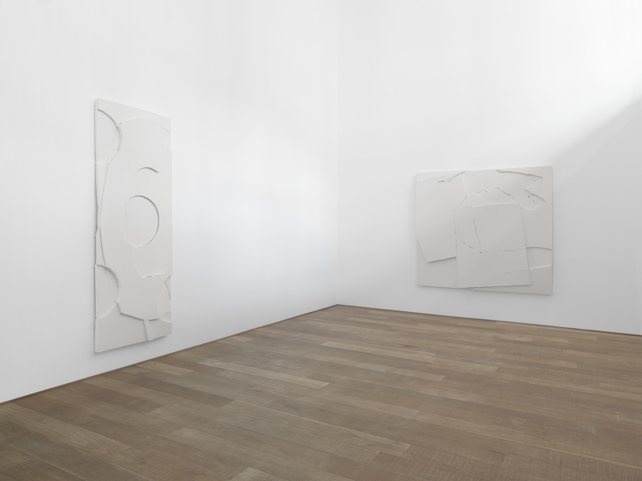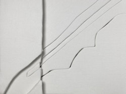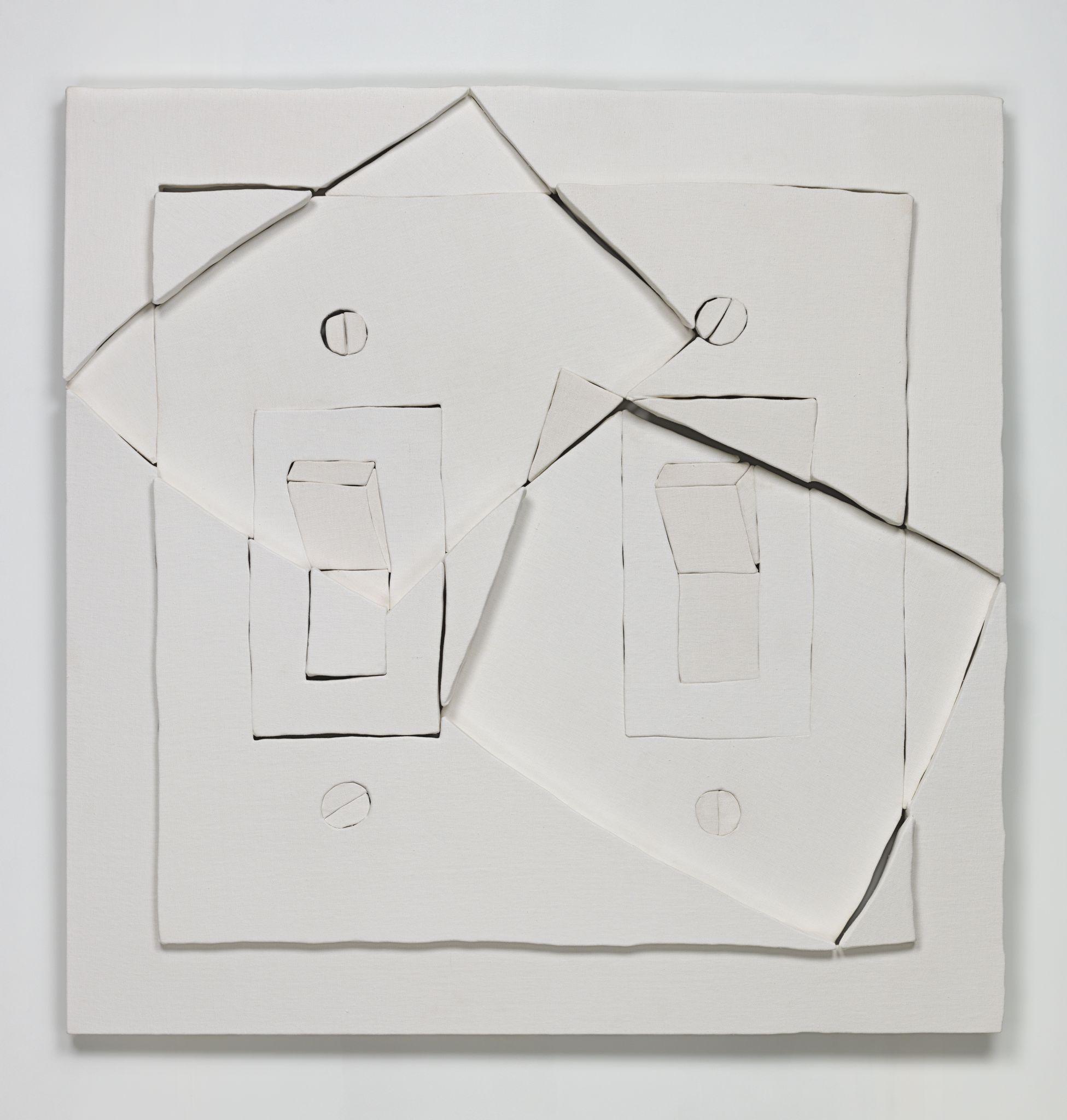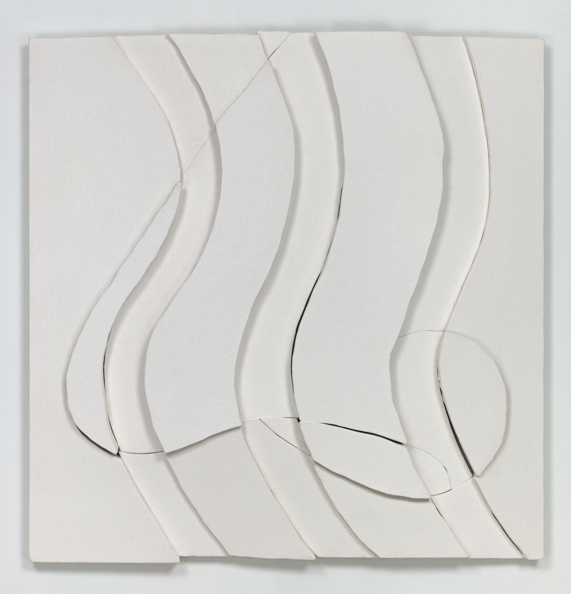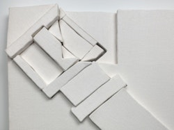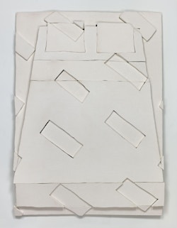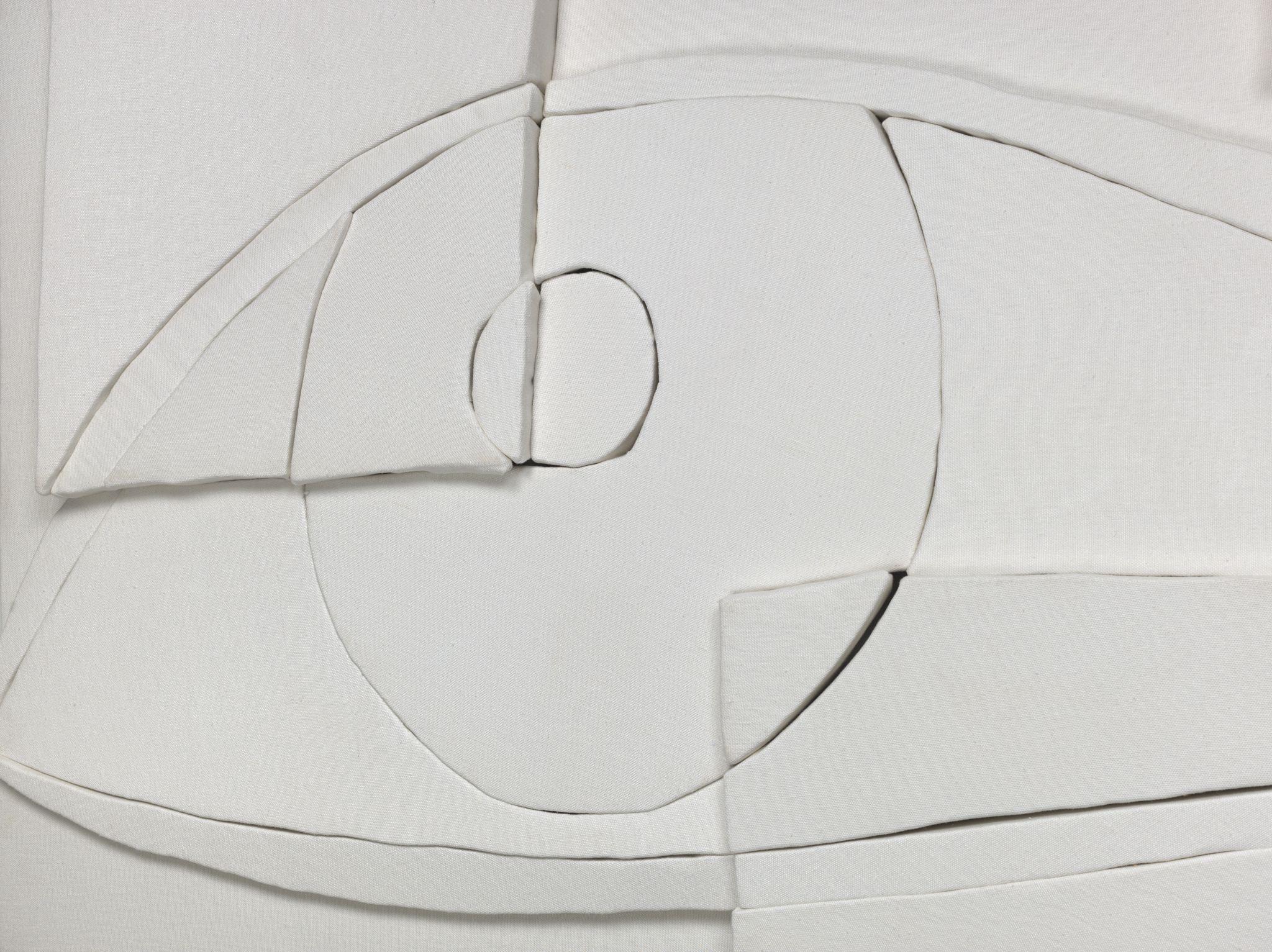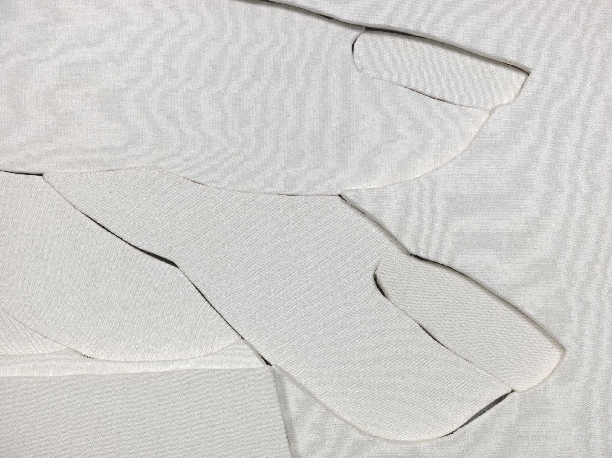 Wyatt Kahn is known for a striking body of work that investigates the boundaries between painting, sculpture and drawing. Comprised of unprimed layers of linen stretched across wooden frames, Kahn assembles complex wall-mounted works in which the gaps between the individual panels form abstract or pictorial compositions. An initial way of approaching his oeuvre is to consider the way in which it is created: each new series typically begins with sketches in pencil and pen, which are slowly refined into definitive drawings. These are transferred onto wood and cut apart. Kahn then stretches two layers of linen or canvas over the panels, typically the same heavyweight material that would be used for stretching paintings.