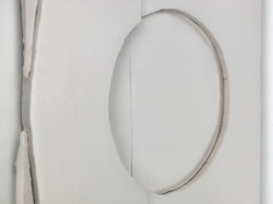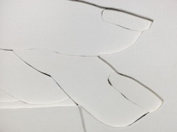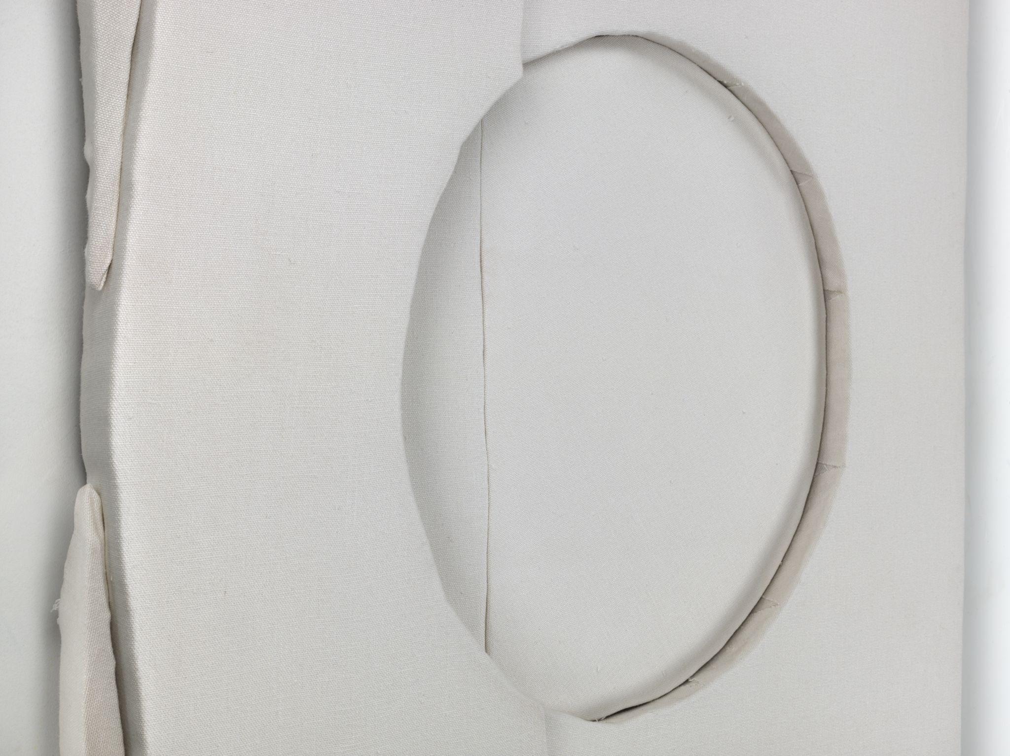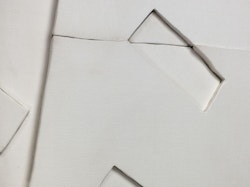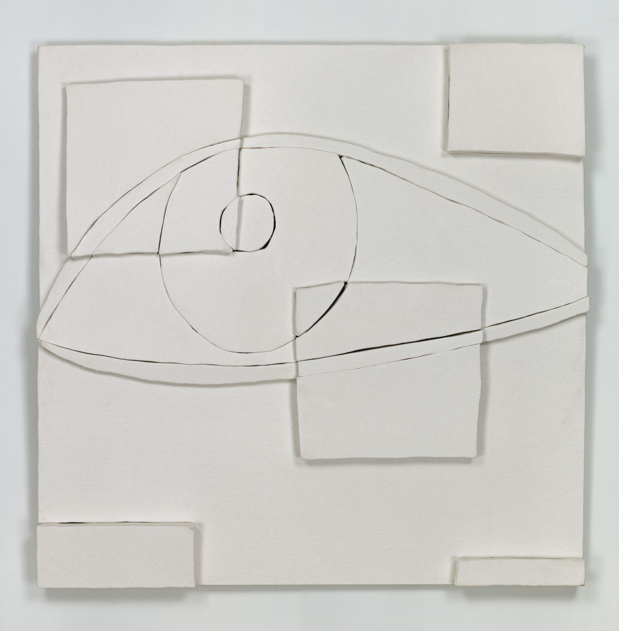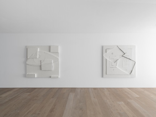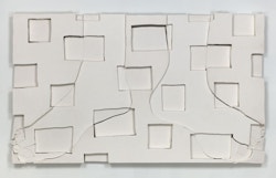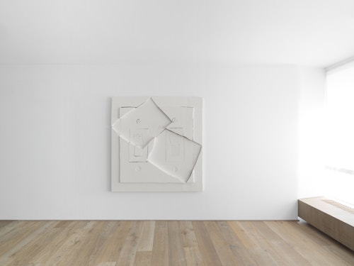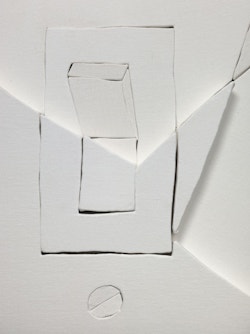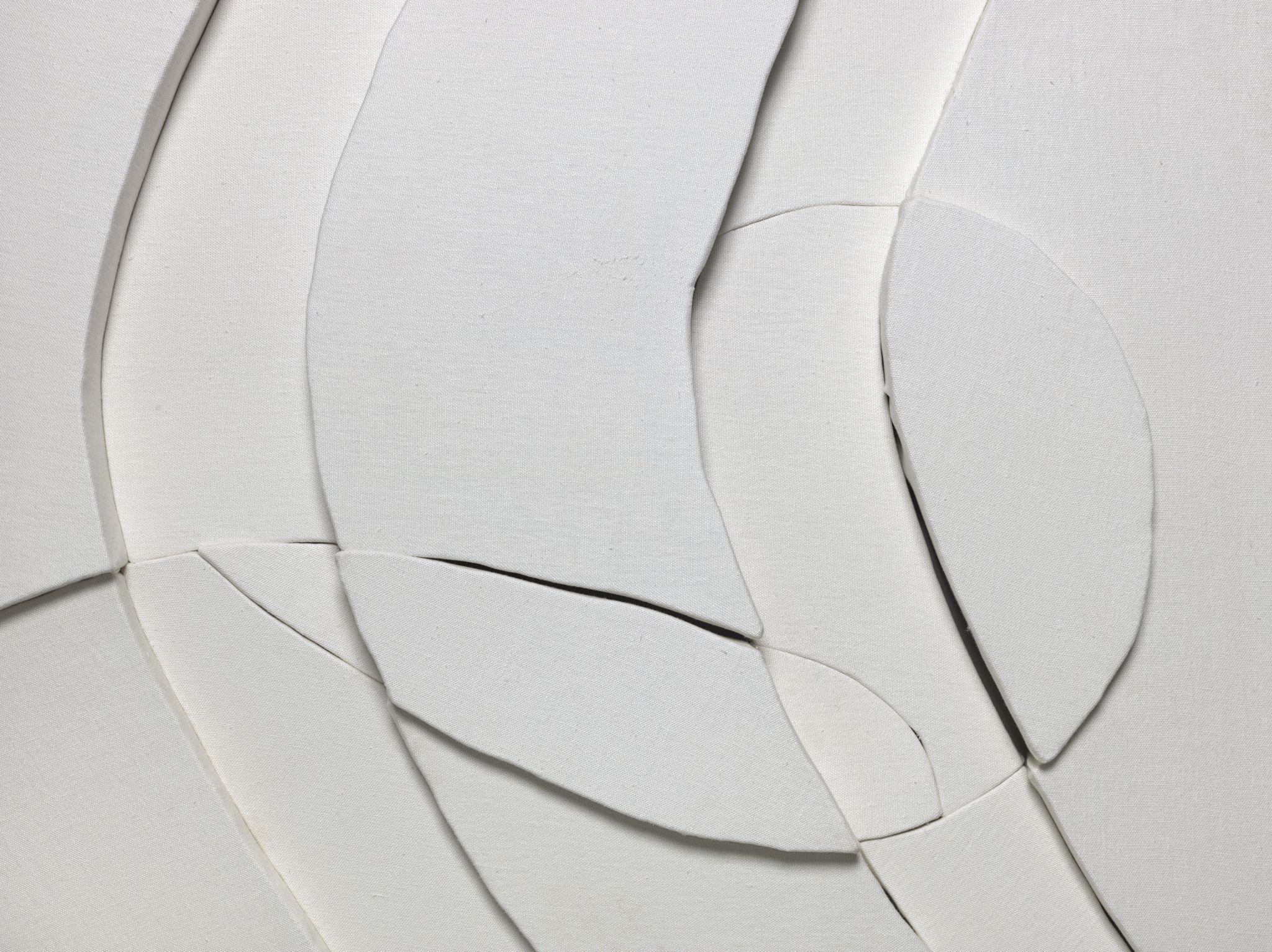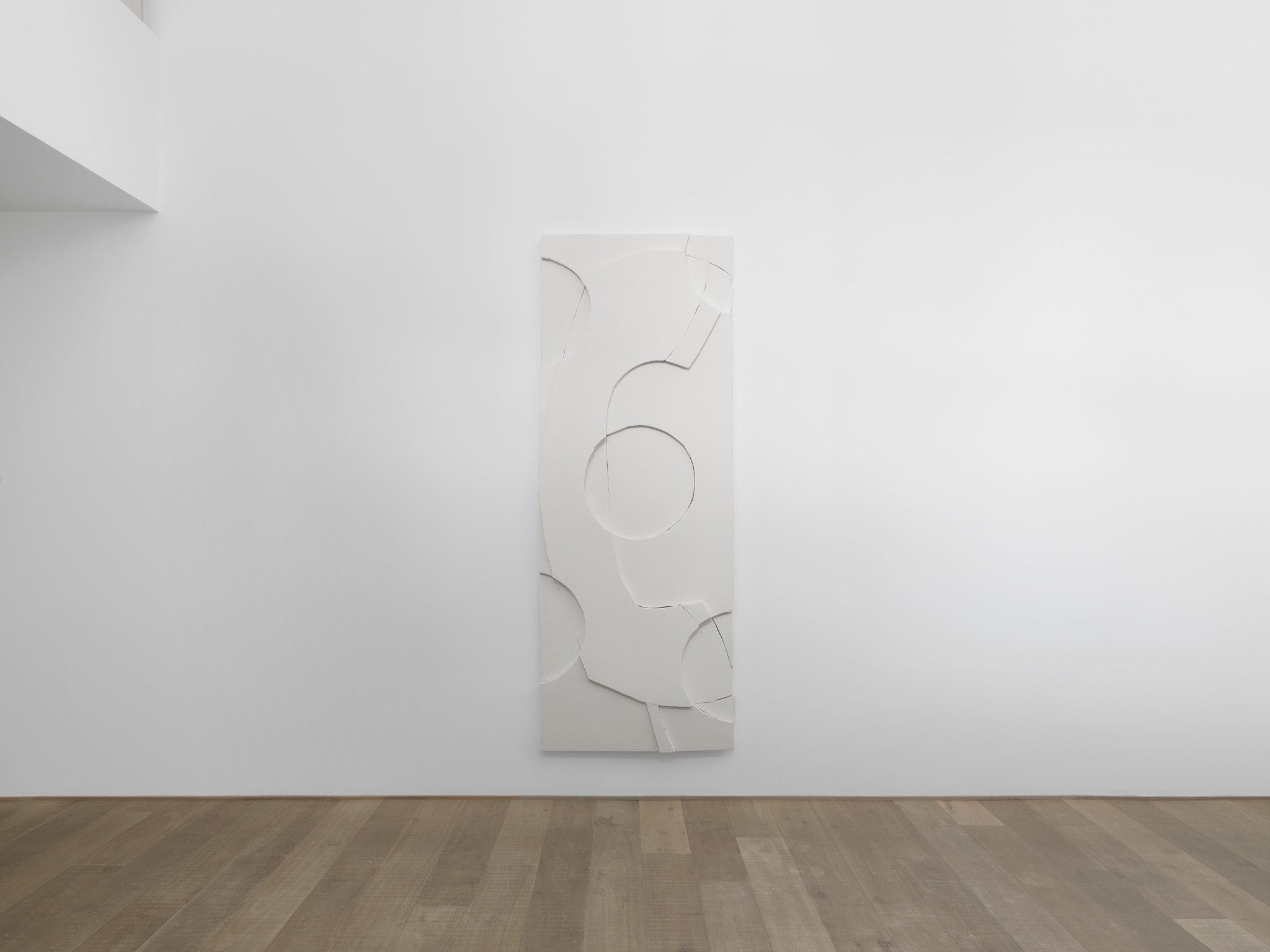 Wyatt Kahn is known for a striking body of work that investigates the boundaries between painting, sculpture and drawing. Comprised of unprimed layers of linen stretched across wooden frames, Kahn assembles complex wall-mounted works in which the gaps between the individual panels form abstract or pictorial compositions. An initial way of approaching his oeuvre is to consider the way in which it is created: each new series typically begins with sketches in pencil and pen, which are slowly refined into definitive drawings. These are transferred onto wood and cut apart. Kahn then stretches two layers of linen or canvas over the panels, typically the same heavyweight material that would be used for stretching paintings.