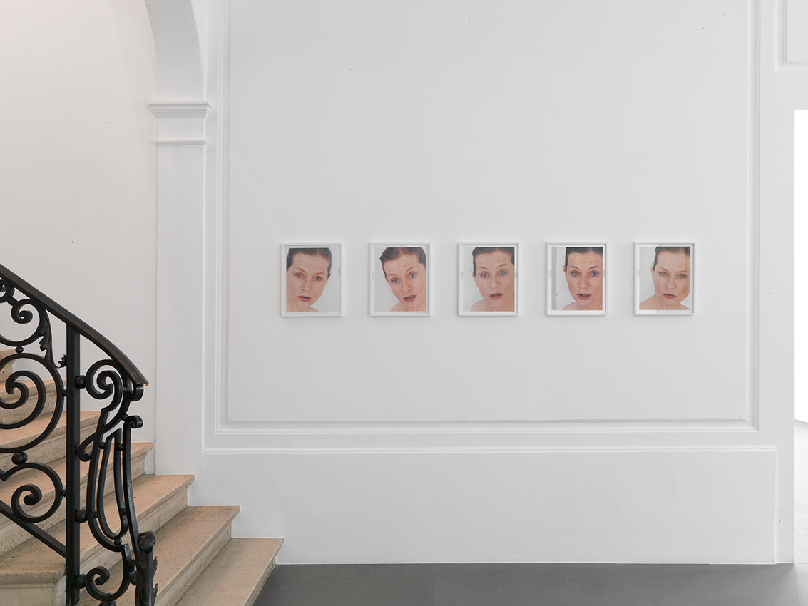 ‘Portrait of an Image (with Isabelle Huppert)’ is a series of 50 photographic portraits of French actress Isabelle Huppert. The series introduces a new description of the “paradox of an actor” within the oeuvre of Roni Horn that already involves a continuous play of identities, allusions and inflections. Horn photographed the actress Huppert in several sequences of five photos each. In each sequence, Isabelle Huppert slips into one of the characters she portrayed on screen - Erika, Lena, Claire, Charlotte, Dominique, Jeanne, Mika, Isabelle, Marie, Emma, Beatrice and others – so that her face expresses a personality that does not exists in reality but only in the film. To do so, however, Huppert had been constrained, not to assume a variety of aspects of the character but to concentrate on her muscular memory and revisit the physical reflexes of each persona as might an athlete or a musician.