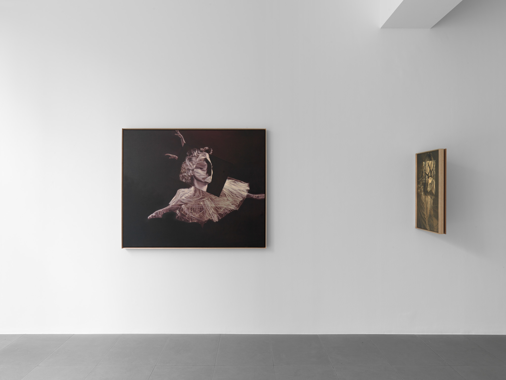 The universe of Cris Brodahl is per se feminine and elegant: a portrait, body or hand, accessory, space, a glance, a movement, mostly refer to women or indicate a female presence. She does not create these images based on nature or from imagination alone, but uses well-thumbed fashion and women’s pages, or old magazines about interiors or classical dance… Her painting style is refined, figurative and slightly nostalgic, using a palette of greyish tones that lend the works the glamour of an old movie.