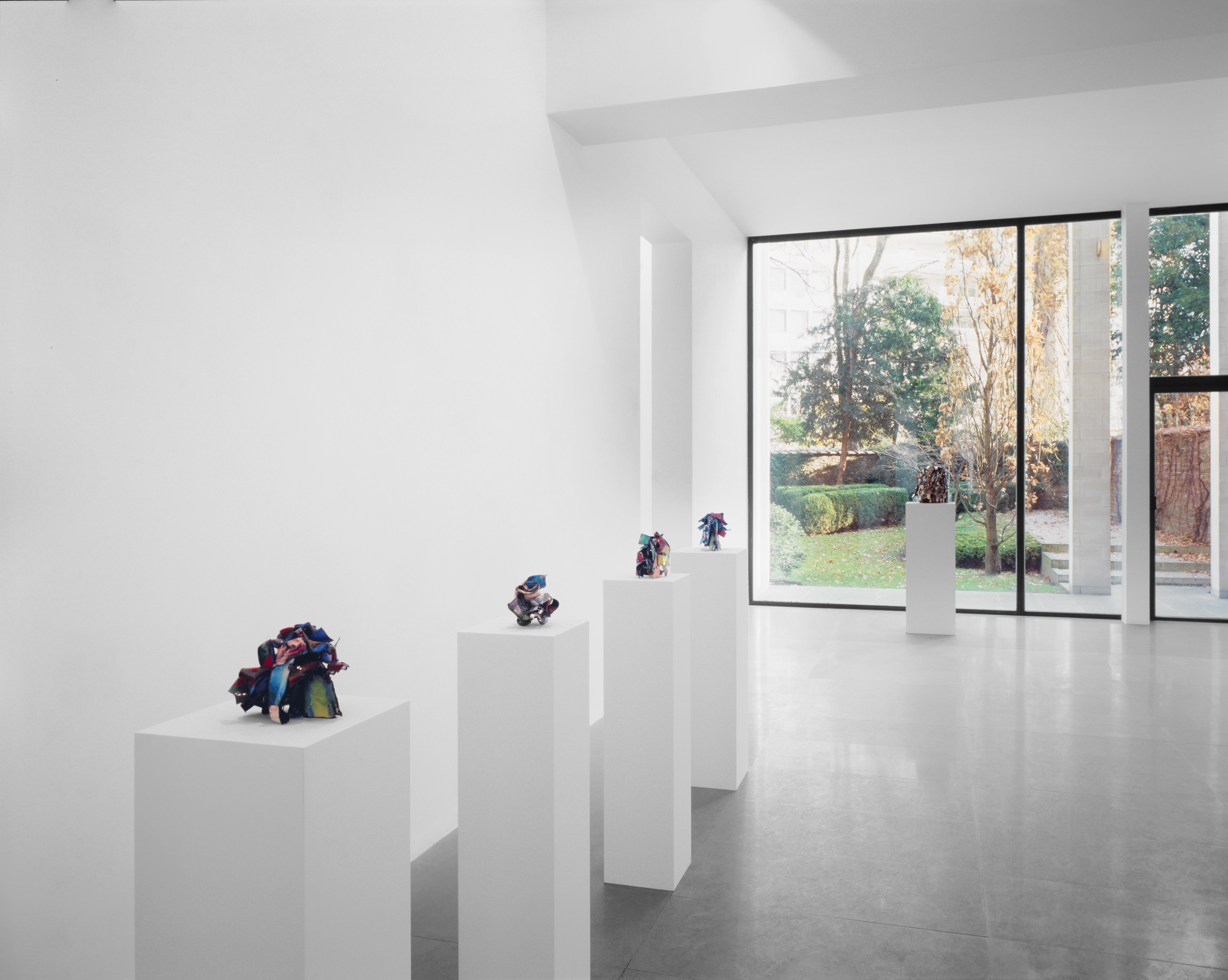 Donald Judd mainly focuses on the intricate relationship between the elements of colour, material and volume in John Chamberlain’s sculptures. Initially, Chamberlain brought together individual industrial car-parts in an “un-composed” visual unity. Similar to Judd, colour has gained a strong sensual position in his work over the years. Whereas before he sporadically altered the colours of the pre-fabricated components, from 1974 onwards, he took the liberty to paint the components and choose the colours: with many colours, spatters and stains, he strengthened or weakened volumes; he followed the curves and corners of the material or deliberately worked against them. Chamberlain knows how to make roundness into colour and colour into roundness, pushing the two into an overall unity.