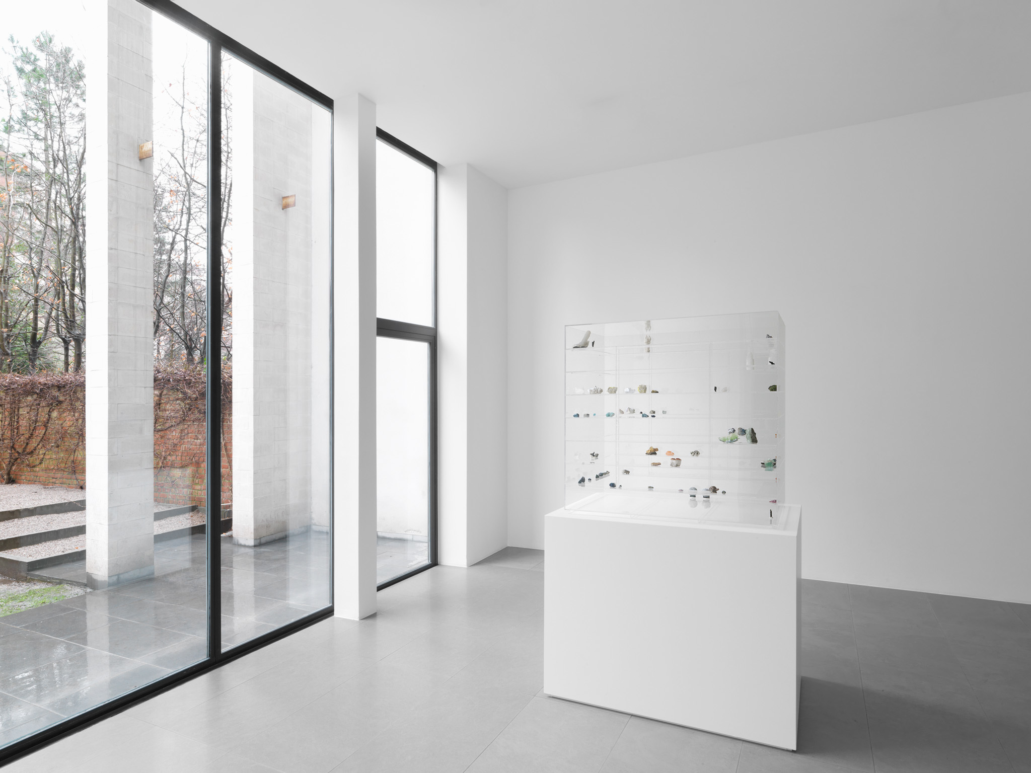 Untitled 1 (Spectres) and Untitled 3 (Spectres) form part of David Altmejd’s on-going series of sculptures that take the form of Plexiglas vitrines. These are broadly divided into two categories: monumental cases featuring intricate landscapes made up of hands and heads, cast fruit, thread and smashed mirrors, for example, and smaller vitrines typically containing arrangements of rare crystals and minerals. While Altmejd’s displays are reminiscent of those found in natural history museums, and are thus symbolic of order, classification and knowledge, they go beyond mere museological concerns. While the transparency of the cases encourages a closer inspection of the contents, the scale of the vitrines prevents the viewer from immediately grasping the whole. Only by walking around the sculptures, and by scrutinising them from every perspective – on a macro and micro level – is it possible to truly absorb the works in their entirety. And unlike museum displays, which typically aim to be encyclopaedic, Altmejd’s enigmatic ensembles are full of lacunae, including empty shelves (Untitled 1). Originally trained as a biologist, crystals feature extensively in Altmejd’s work. By placing them in vitrines, however, the objects become almost fetishized – but it is up to the viewer to decide which taxonomies, if any, underpin their seemingly idiosyncratic arrangement.