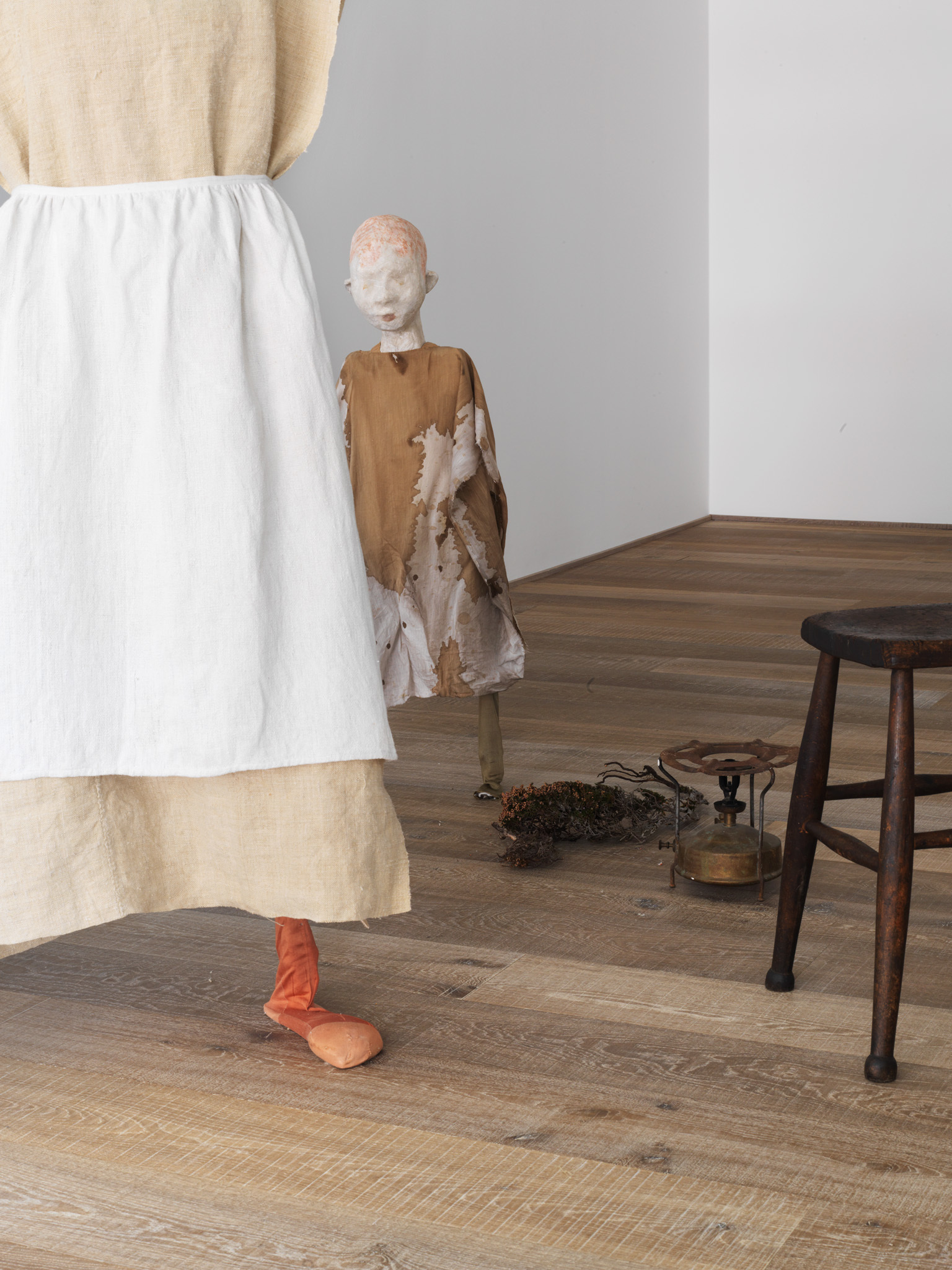 Although Wilkes draws upon her own life experiences for inspiration, which inevitably lends her work an autobiographical dimension, she is ultimately probing deeper, more visceral issues. Cathy Wilkes: ‘When the living and dead are considered together in the same place, there is a measurement and proximity to death, there is a measurement and proximity to life. The process of making the figures and collecting the materials suspends the work between life and death and measures these proximities. The work is a process of open concentration and waiting, and attention to every part of a totality. Totality of every single basic element… Recalling the day of her loss. Recalling something over and over again. Nothing is forgotten. In order not to forget, everything is recalled over and over again and checked. In close proximity to death - It’s understood that there is both materialisation and disappearance of physical things. It’s understood that it is a natural retreat from material reality. It’s understood that the forces of nature are electric and defining’