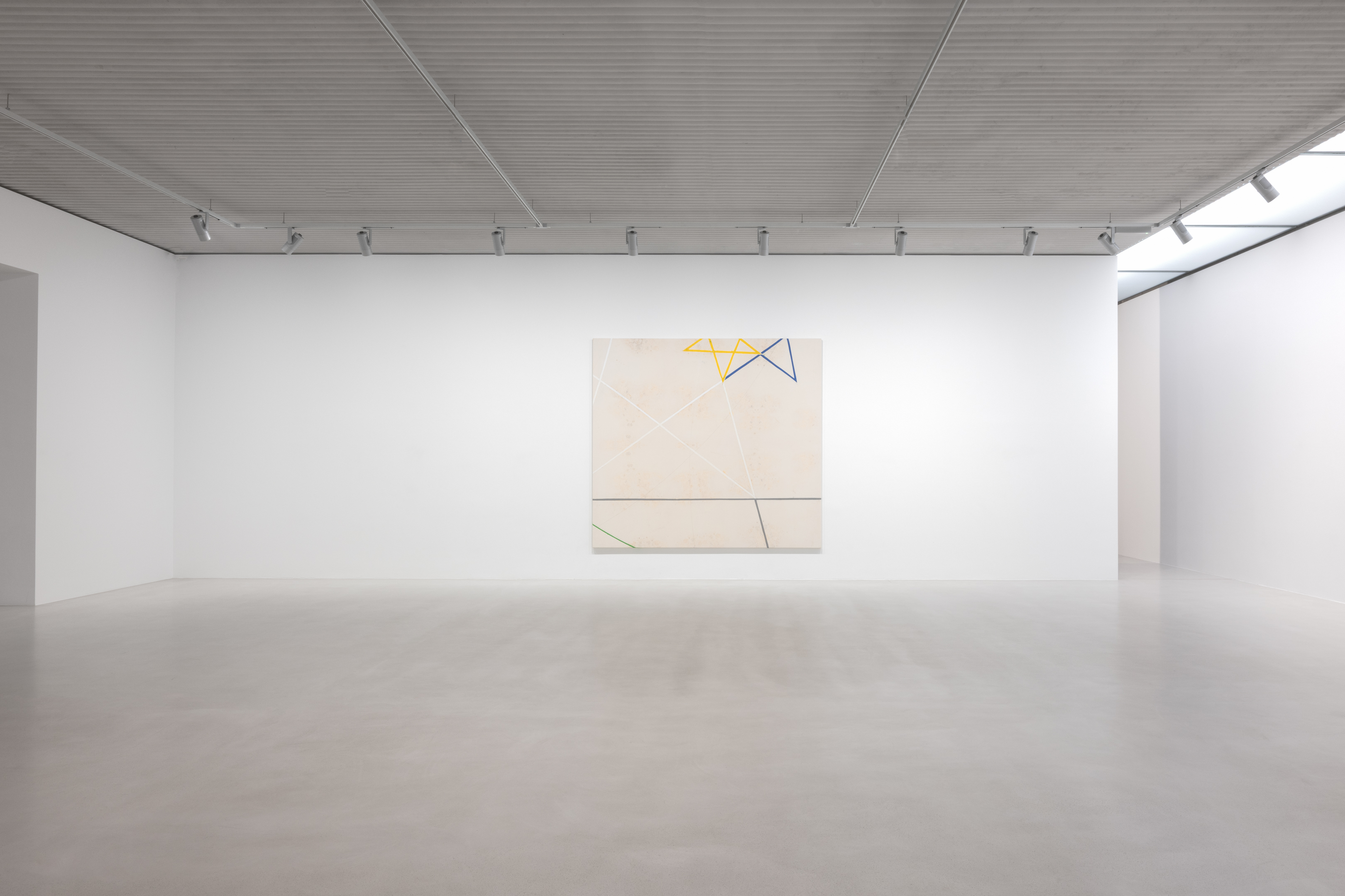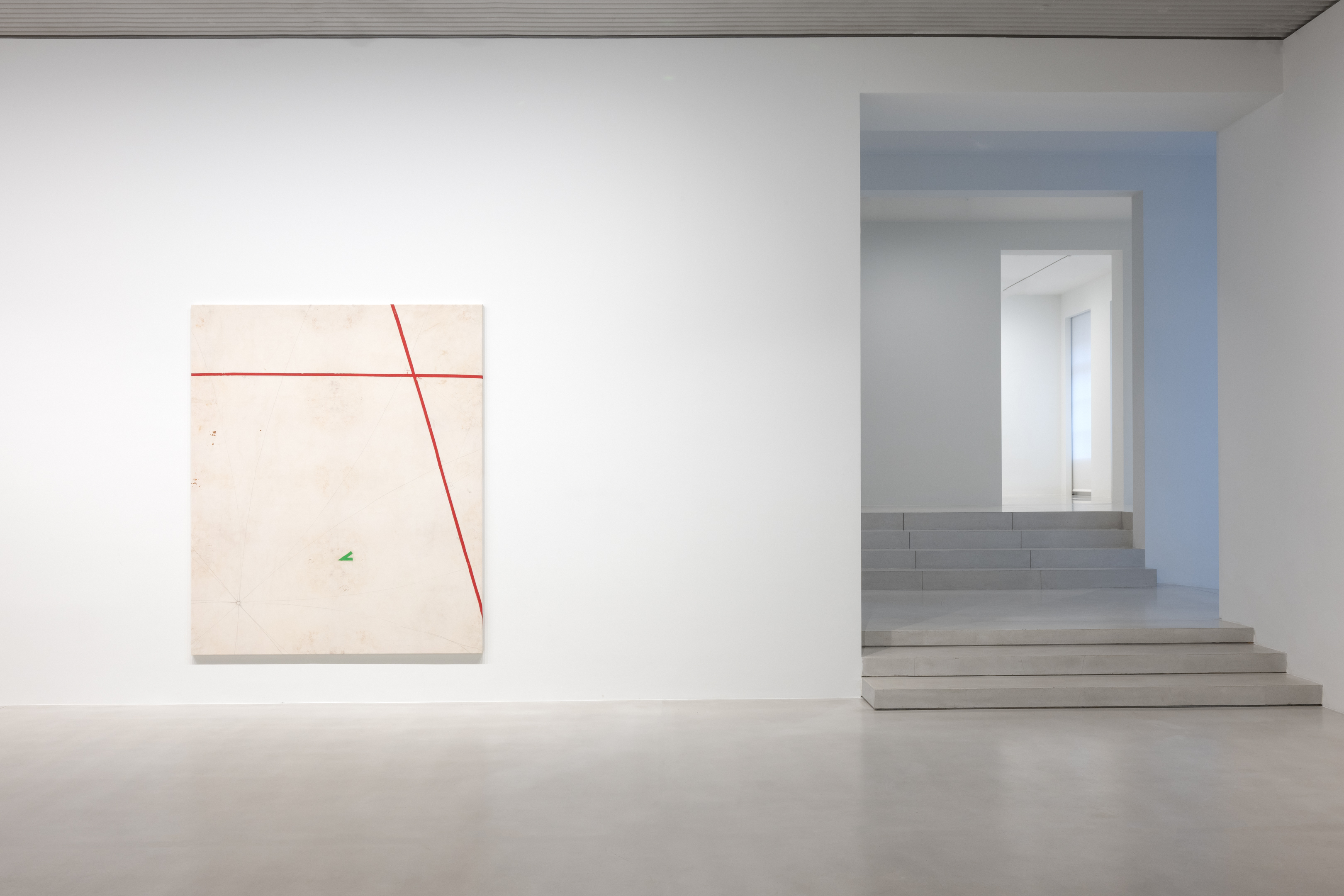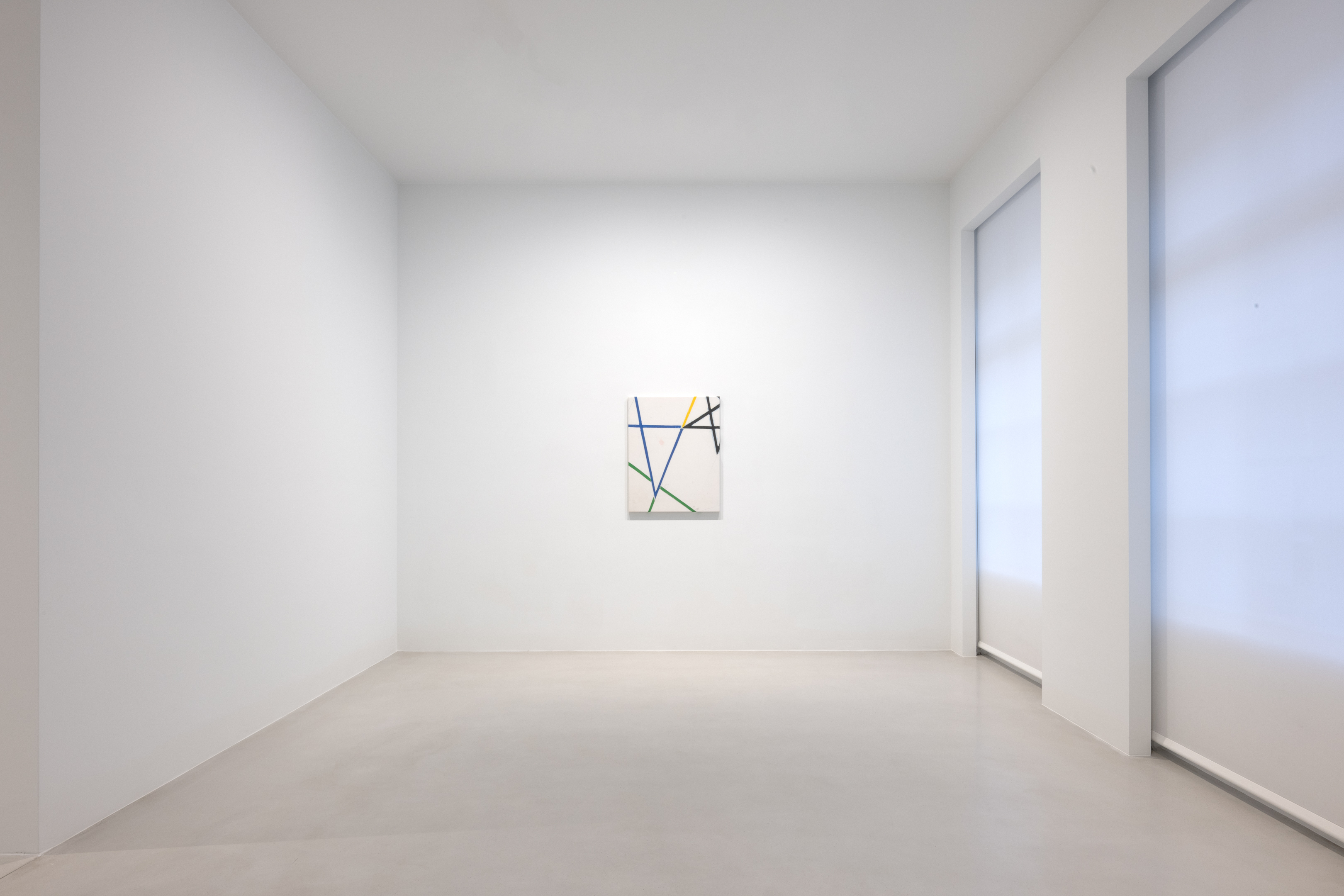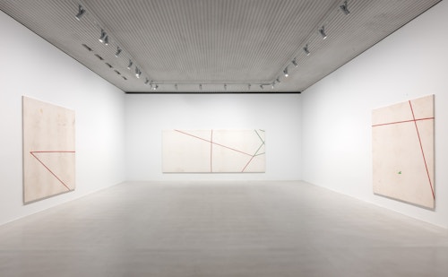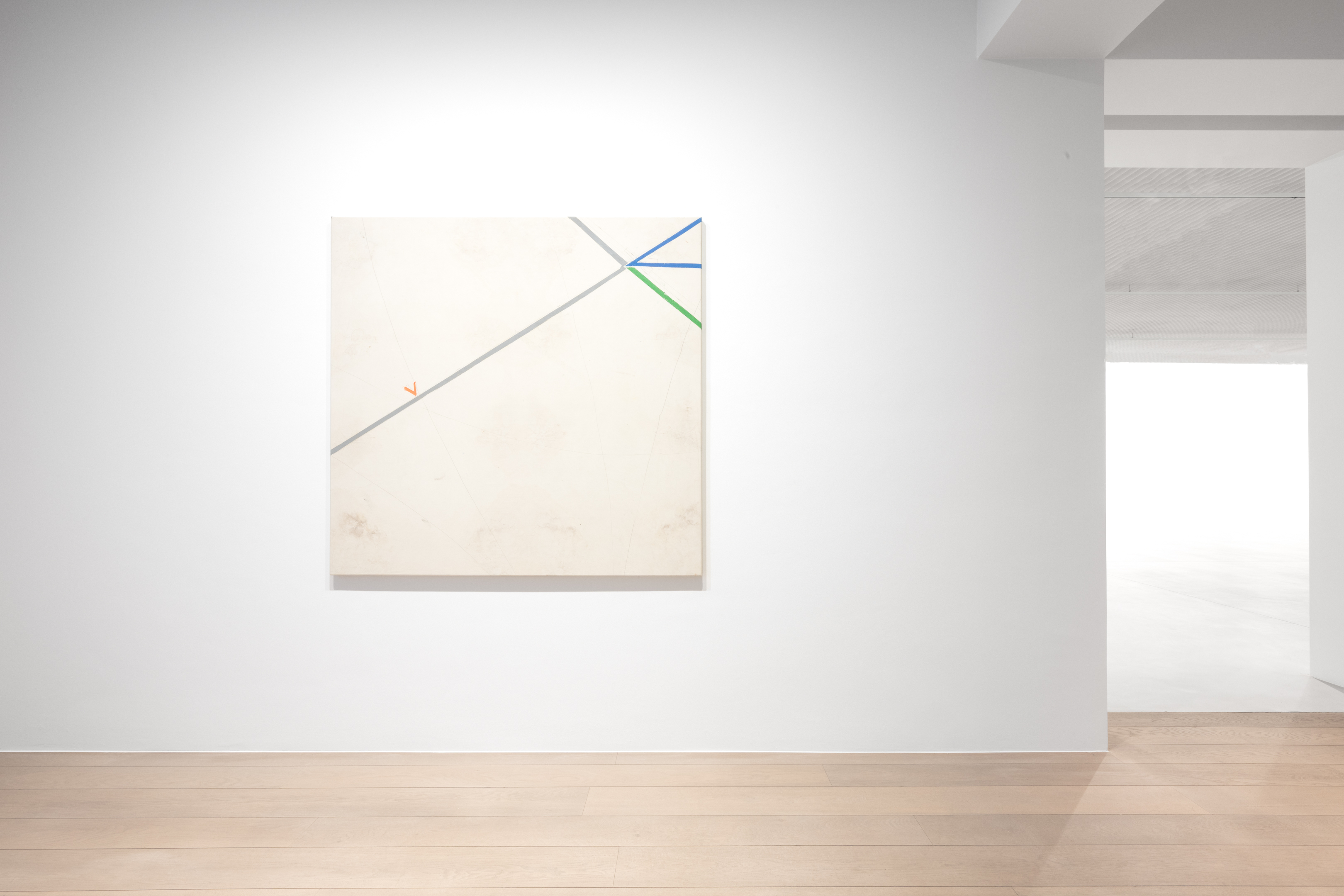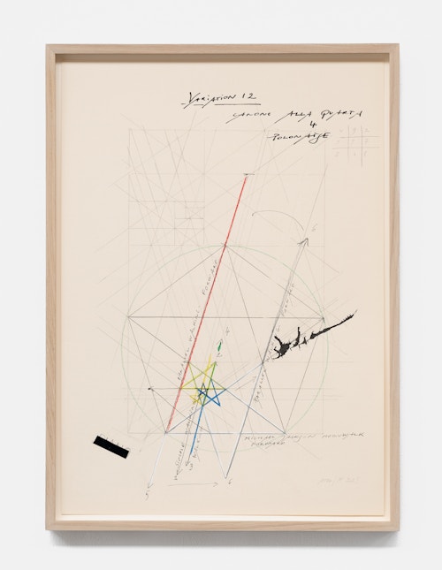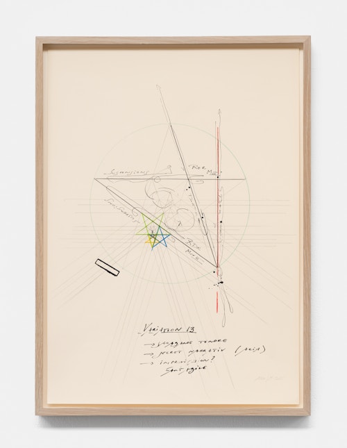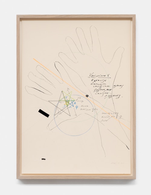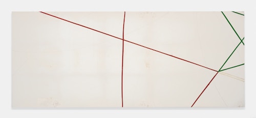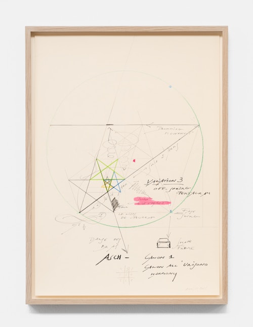 On canvas and on paper, echoes can be heard of the Goldberg Variations. More than a musical score, Bach’s work is a blueprint for De Keersmaeker’s entire oeuvre: a system of repetition and differentiation, in which choreographic labour unfolds as a continuous circling around the same (meta)physical questions and (ma)thematical figures. Geometry, long central to De Keersmaeker’s research, is more than a visual concern for her. The line appears in her work not as representation; it is choreography in its most concentrated form—the bearer of time and space. The twelve canvases that form the heart of the exhibition As you wish arise from the geometries of the dance floor. Here, lines unfold—precise and affirmative—as chromatic trajectories through space. The result is an abstract geometry that is at once functional, referential, and poetic.