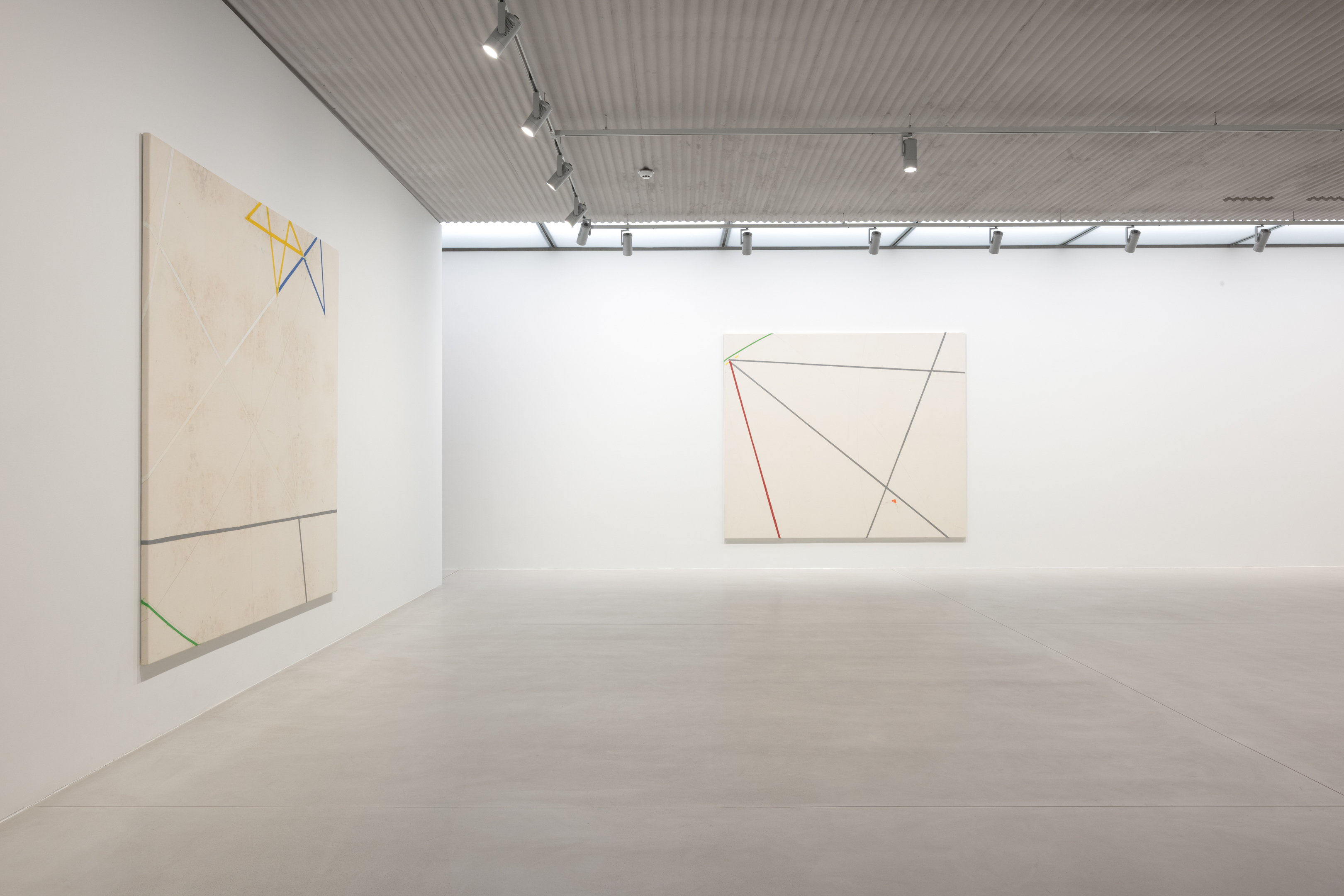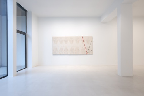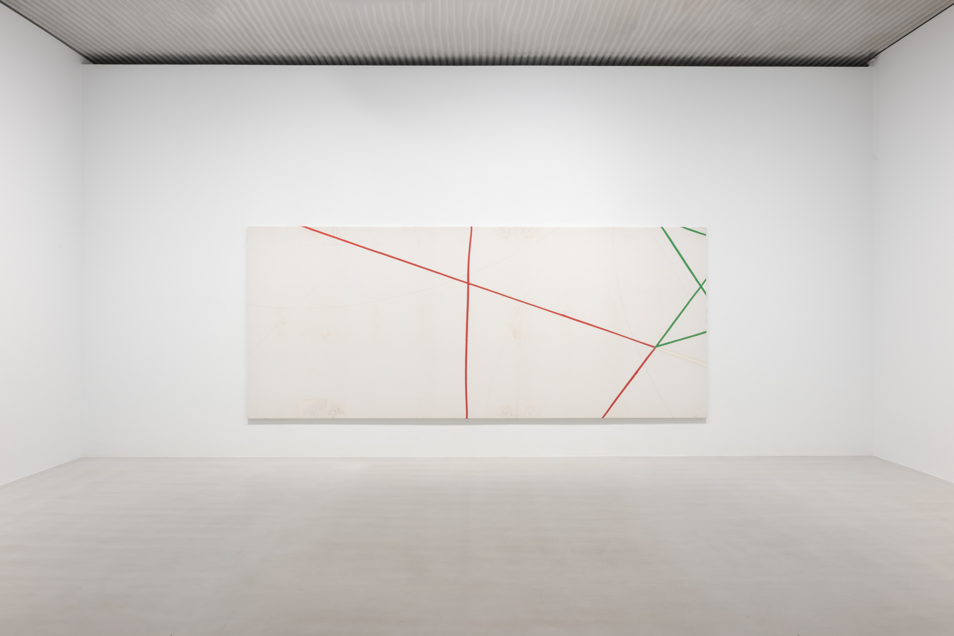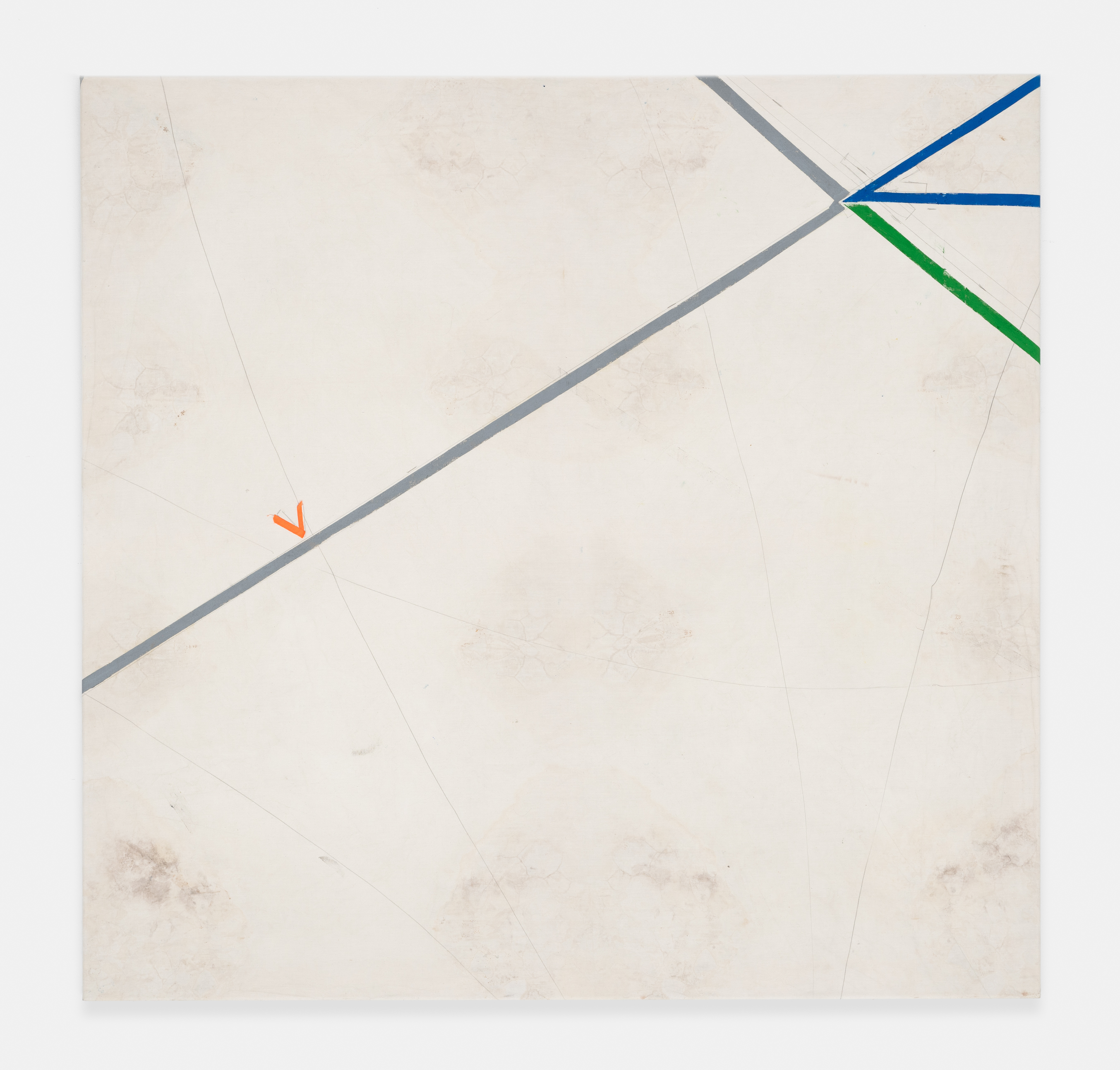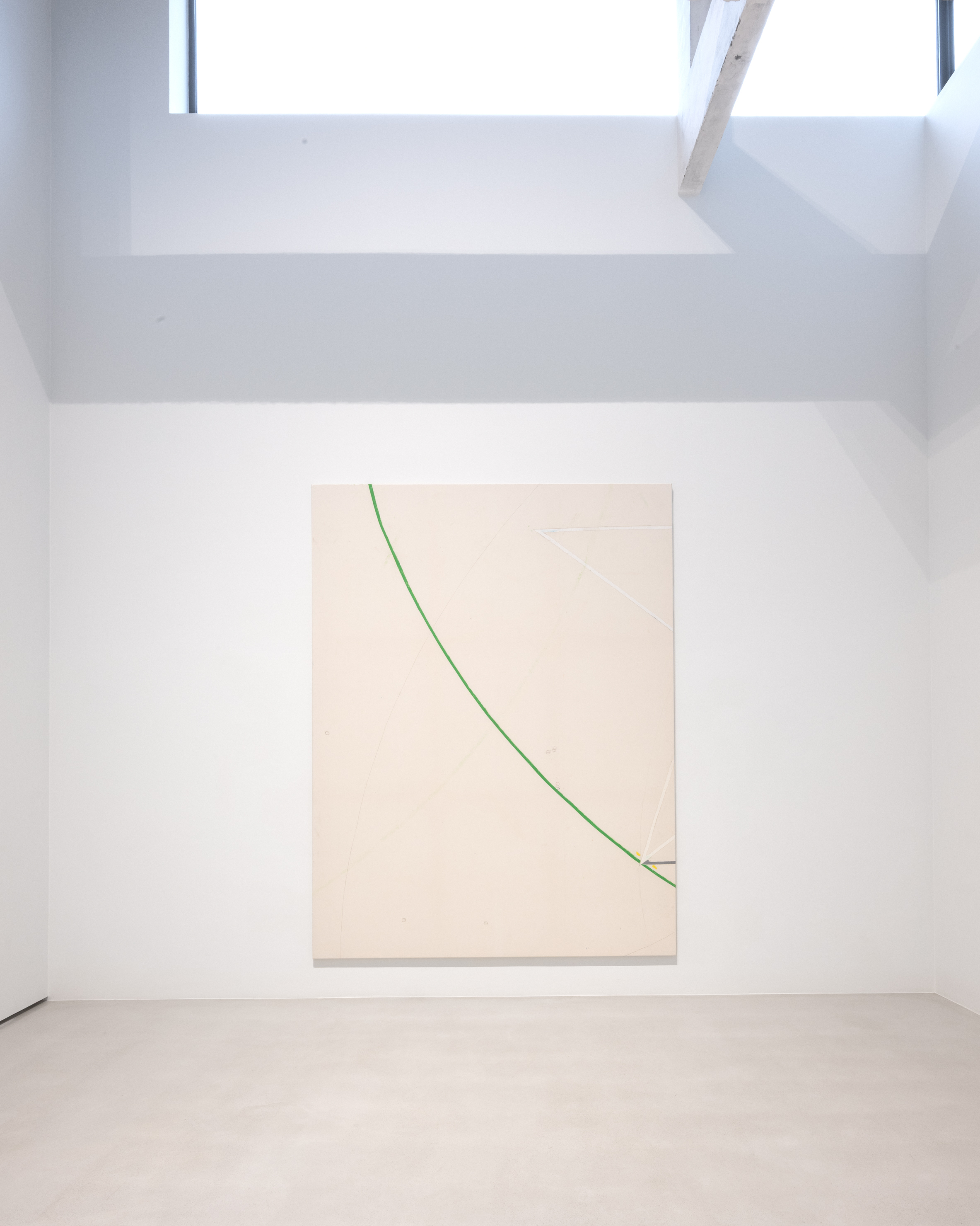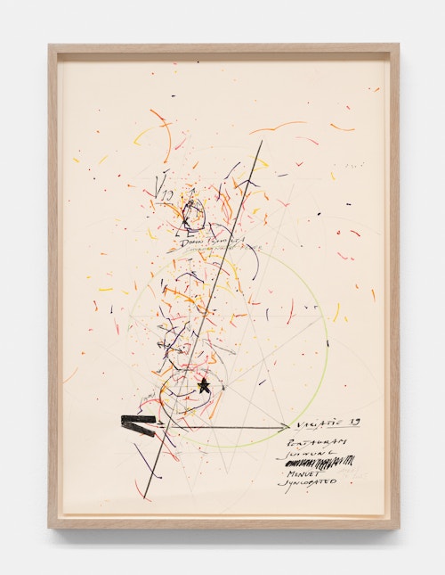 On canvas and on paper, echoes can be heard of the Goldberg Variations. More than a musical score, Bach’s work is a blueprint for De Keersmaeker’s entire oeuvre: a system of repetition and differentiation, in which choreographic labour unfolds as a continuous circling around the same (meta)physical questions and (ma)thematical figures. Geometry, long central to De Keersmaeker’s research, is more than a visual concern for her. The line appears in her work not as representation; it is choreography in its most concentrated form—the bearer of time and space. The twelve canvases that form the heart of the exhibition As you wish arise from the geometries of the dance floor. Here, lines unfold—precise and affirmative—as chromatic trajectories through space. The result is an abstract geometry that is at once functional, referential, and poetic.