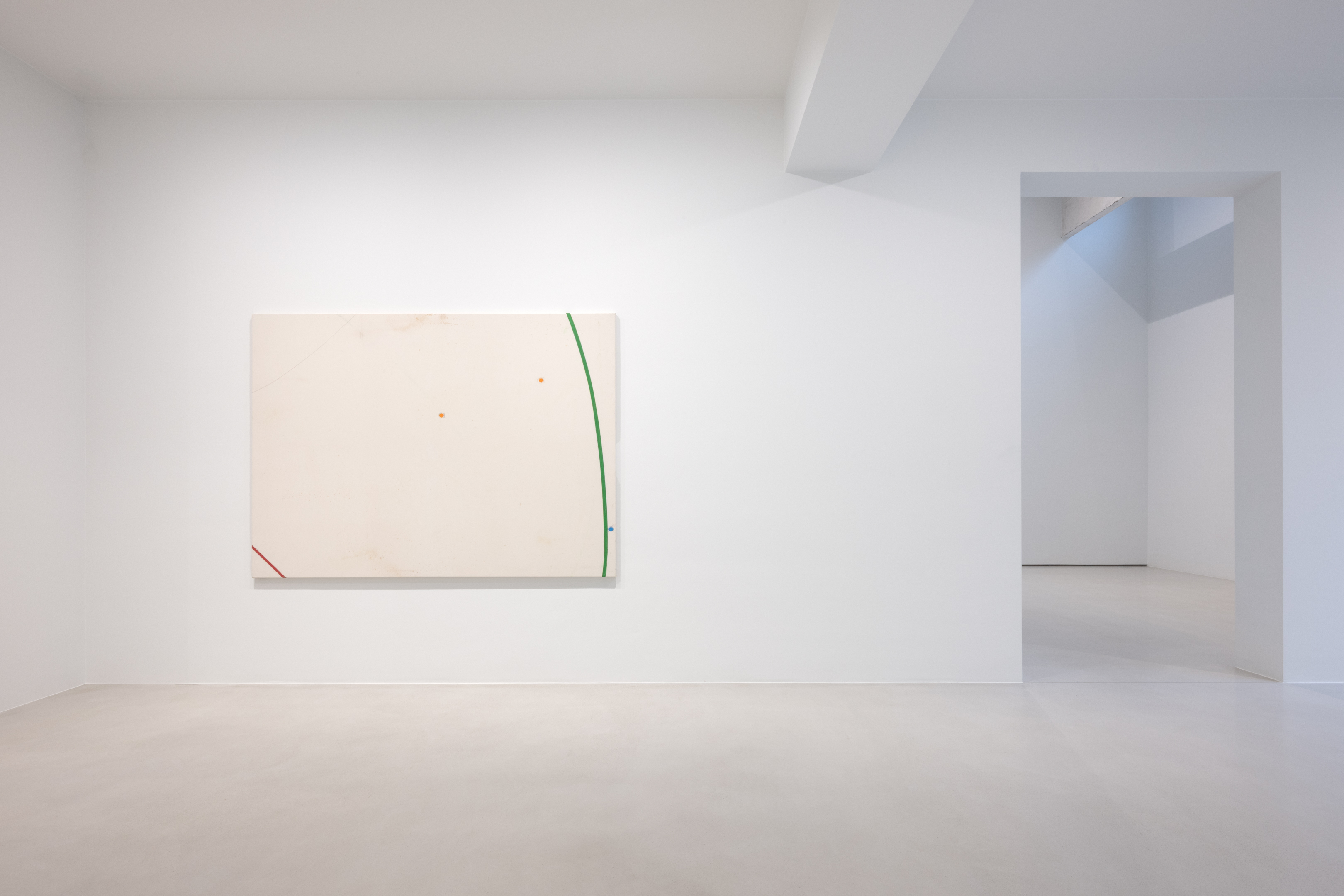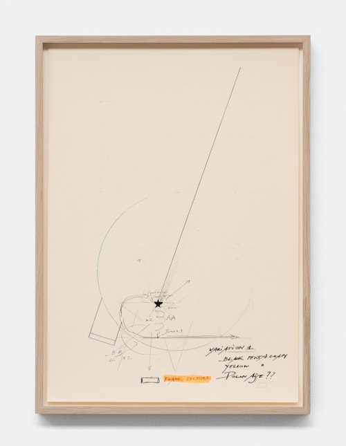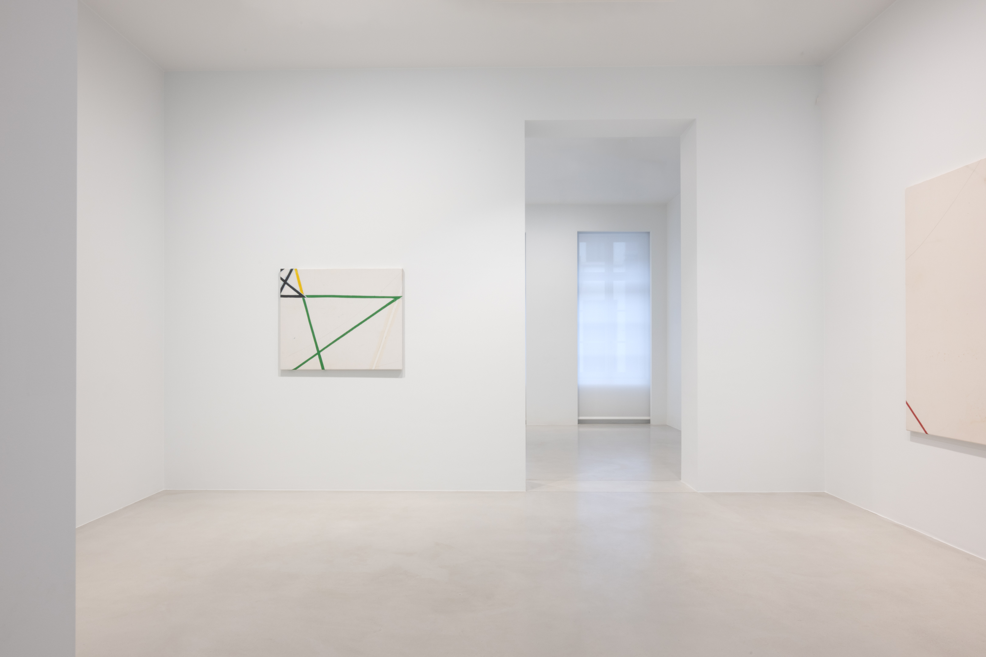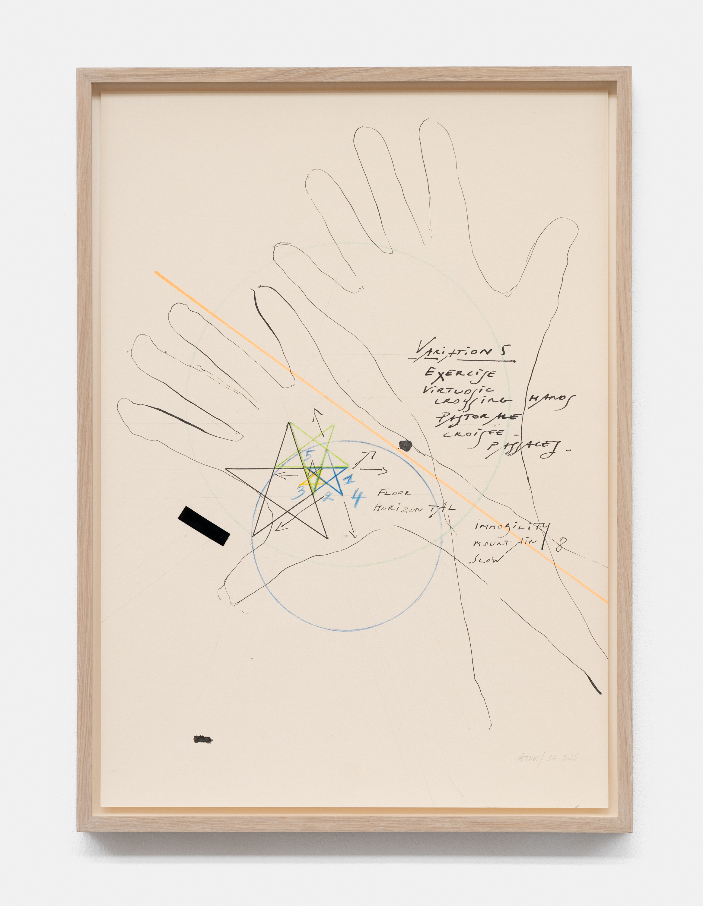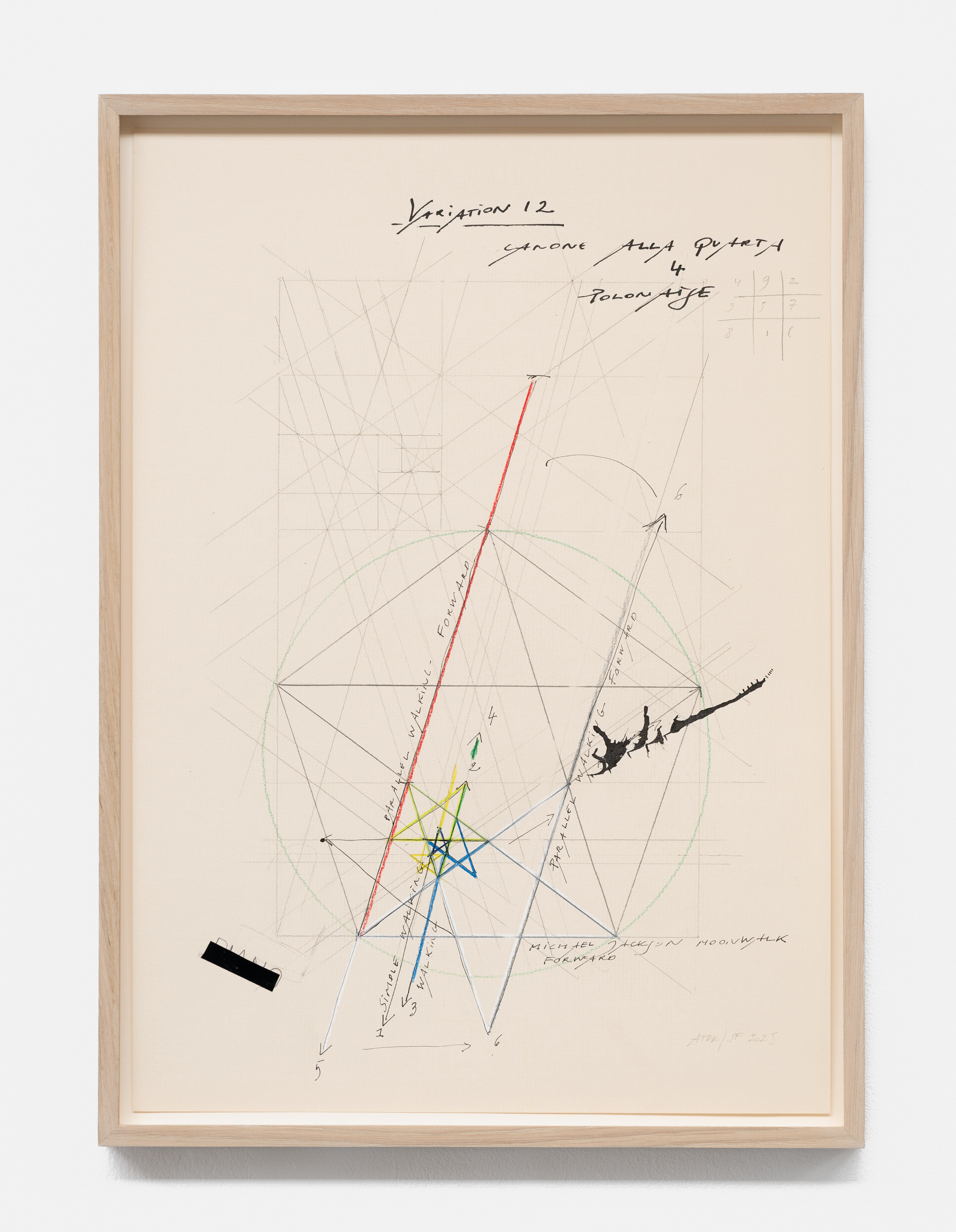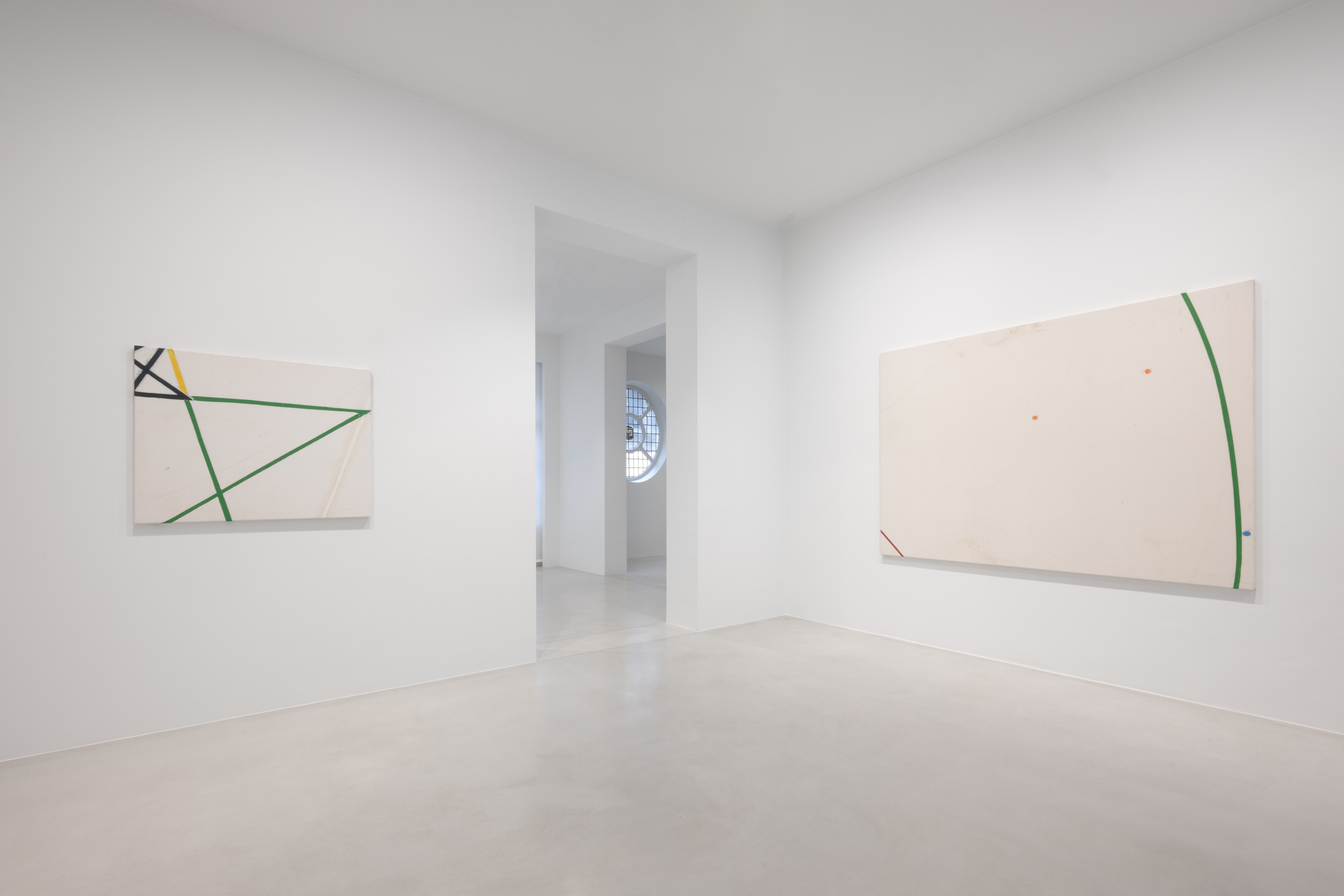 On canvas and on paper, echoes can be heard of the Goldberg Variations. More than a musical score, Bach’s work is a blueprint for De Keersmaeker’s entire oeuvre: a system of repetition and differentiation, in which choreographic labour unfolds as a continuous circling around the same (meta)physical questions and (ma)thematical figures. Geometry, long central to De Keersmaeker’s research, is more than a visual concern for her. The line appears in her work not as representation; it is choreography in its most concentrated form—the bearer of time and space. The twelve canvases that form the heart of the exhibition As you wish arise from the geometries of the dance floor. Here, lines unfold—precise and affirmative—as chromatic trajectories through space. The result is an abstract geometry that is at once functional, referential, and poetic.