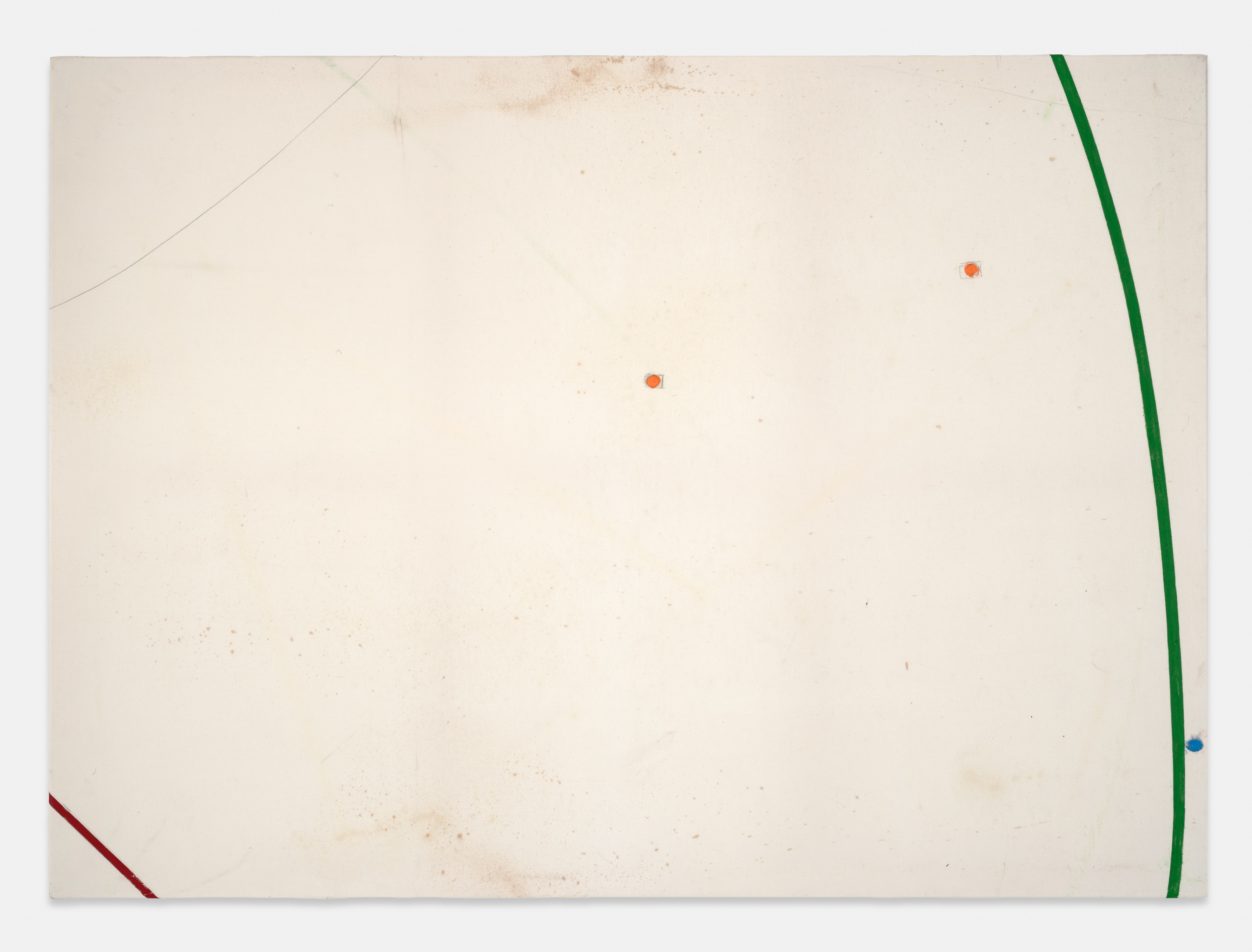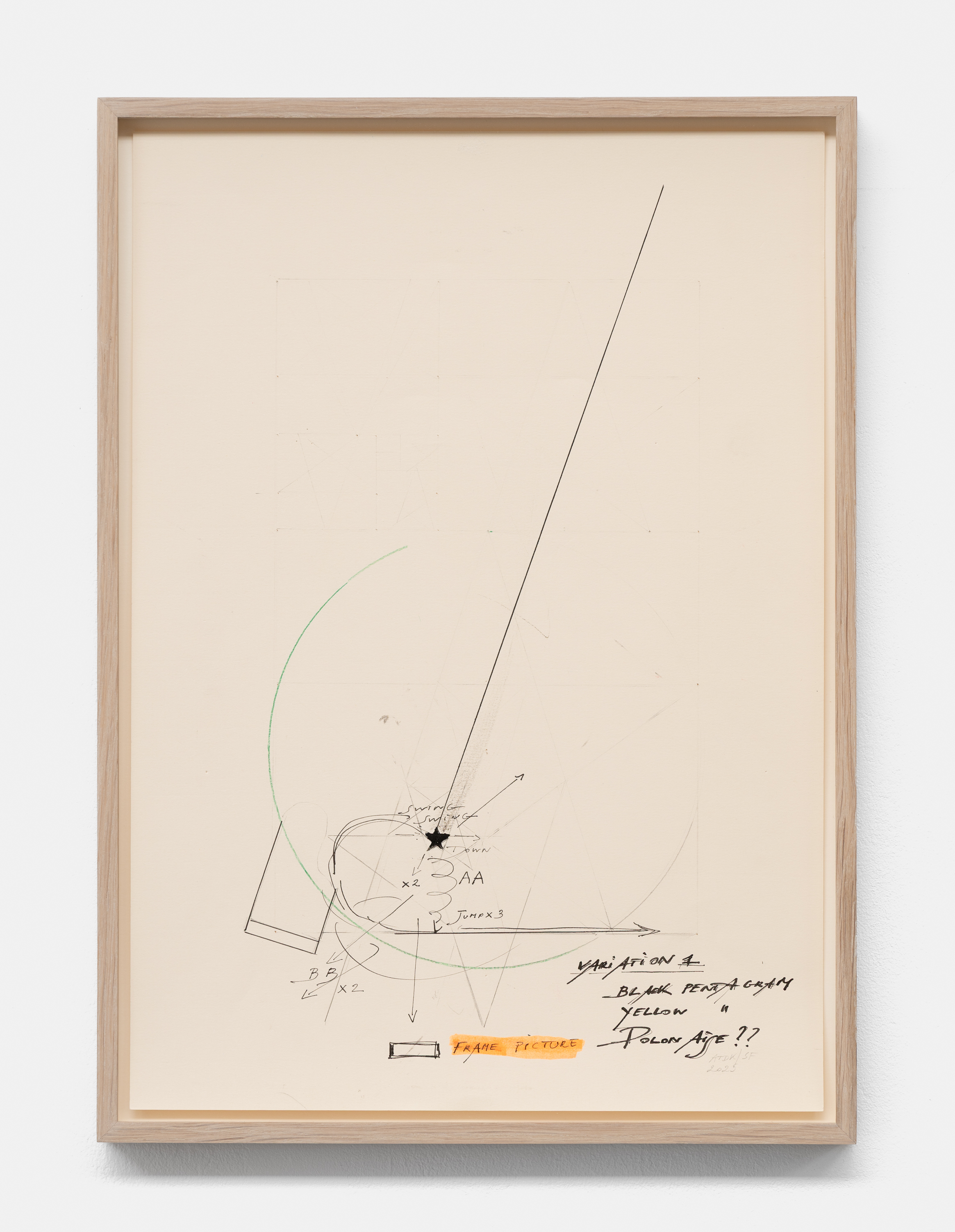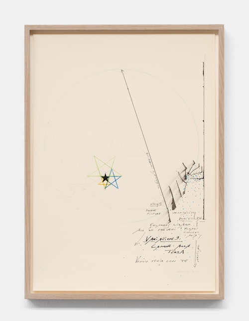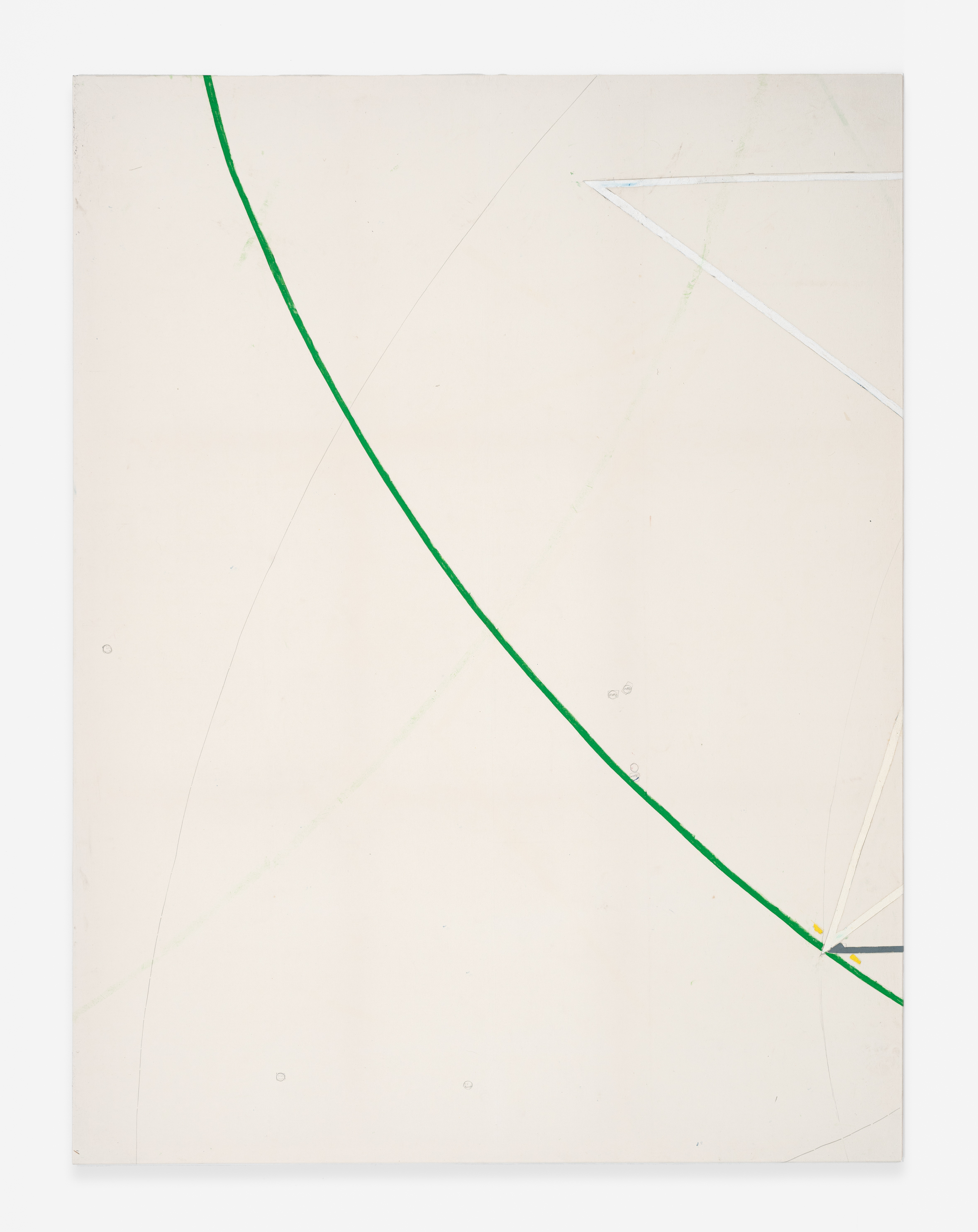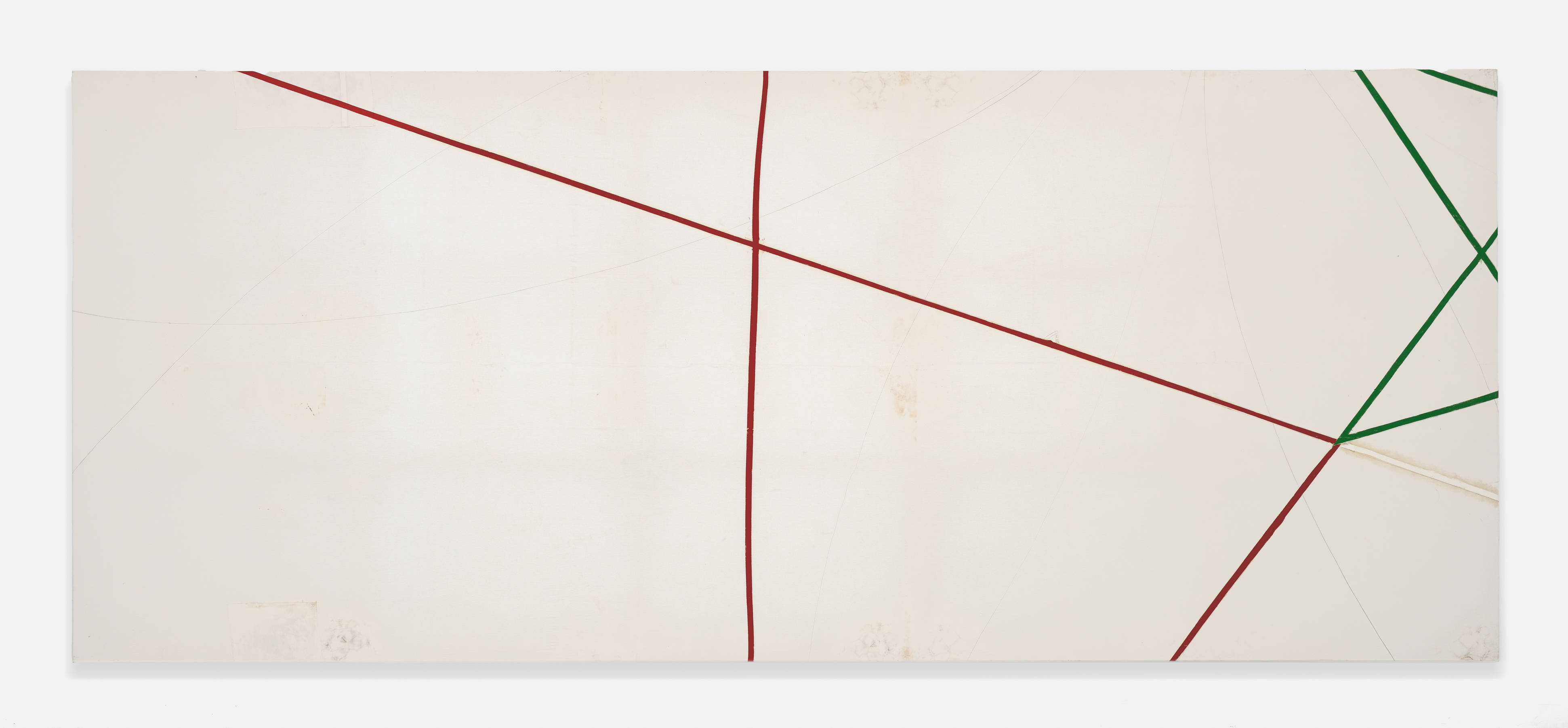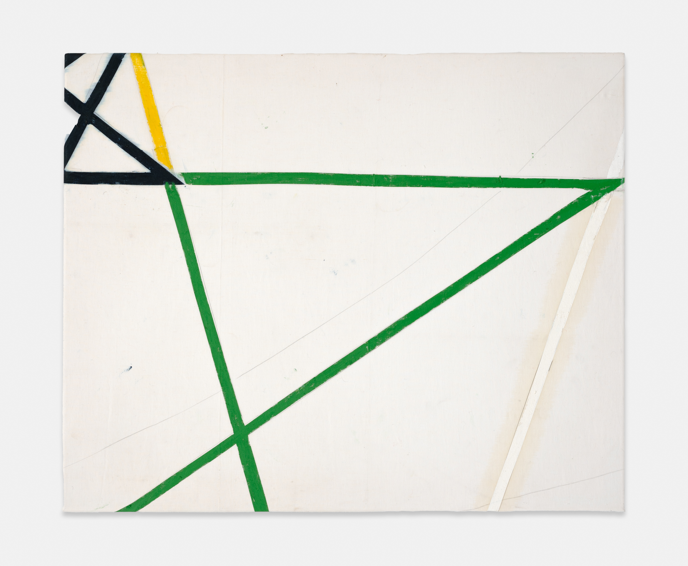 On canvas and on paper, echoes can be heard of the Goldberg Variations. More than a musical score, Bach’s work is a blueprint for De Keersmaeker’s entire oeuvre: a system of repetition and differentiation, in which choreographic labour unfolds as a continuous circling around the same (meta)physical questions and (ma)thematical figures. Geometry, long central to De Keersmaeker’s research, is more than a visual concern for her. The line appears in her work not as representation; it is choreography in its most concentrated form—the bearer of time and space. The twelve canvases that form the heart of the exhibition As you wish arise from the geometries of the dance floor. Here, lines unfold—precise and affirmative—as chromatic trajectories through space. The result is an abstract geometry that is at once functional, referential, and poetic.