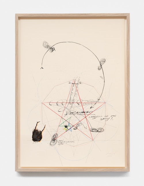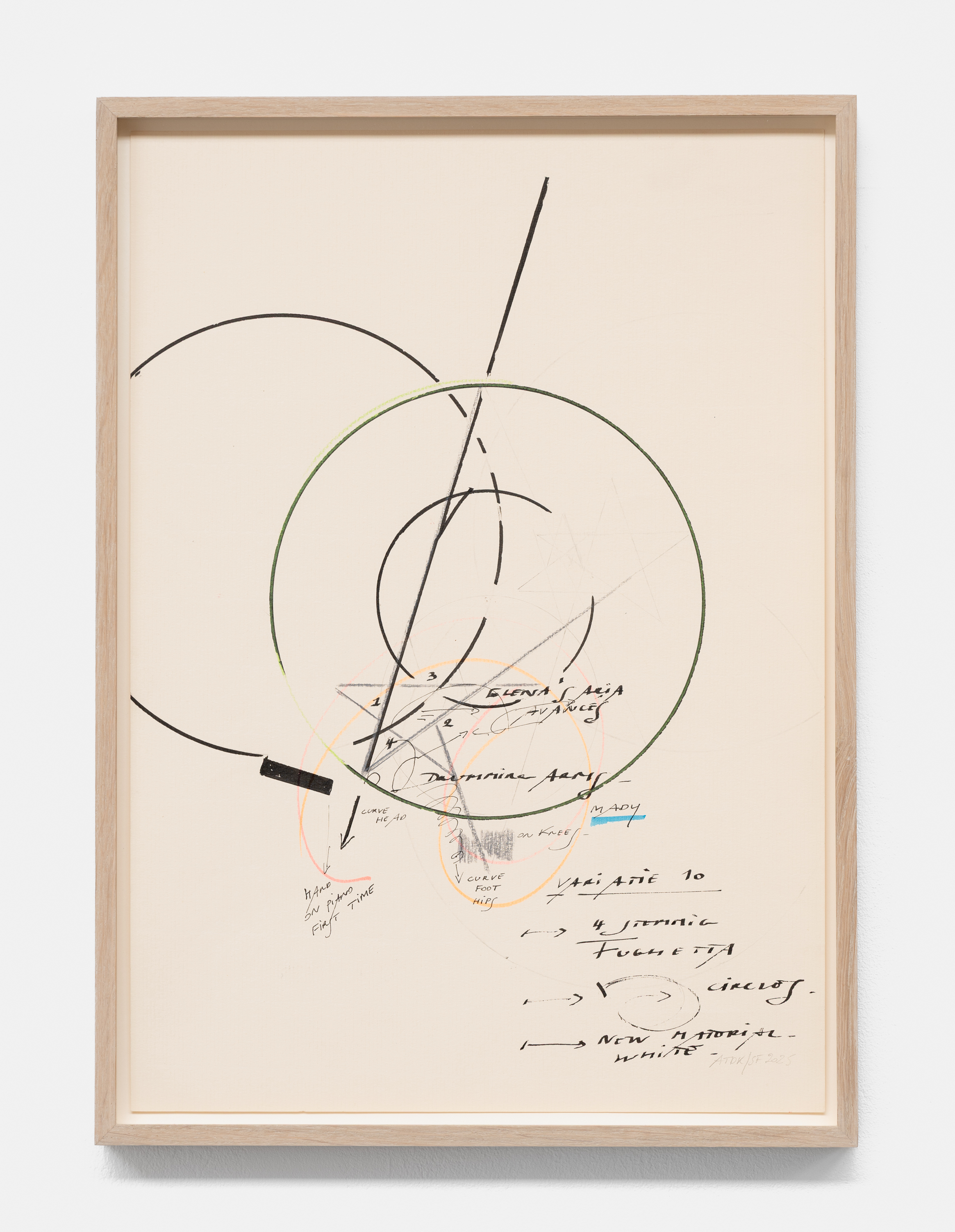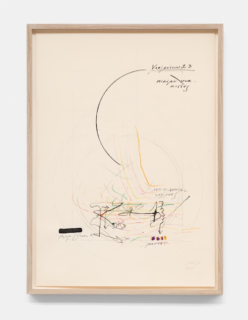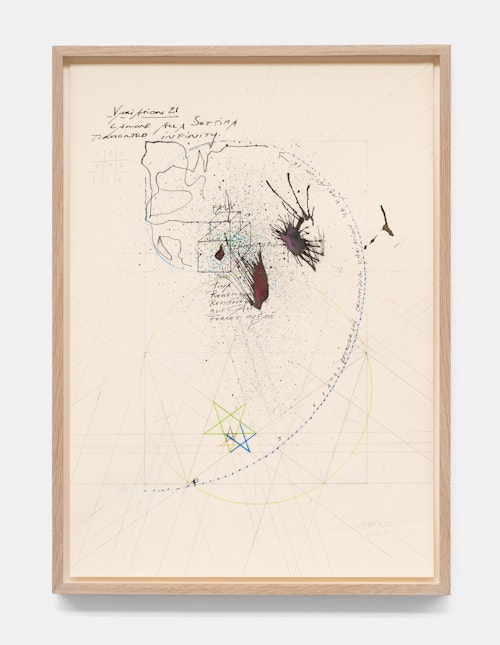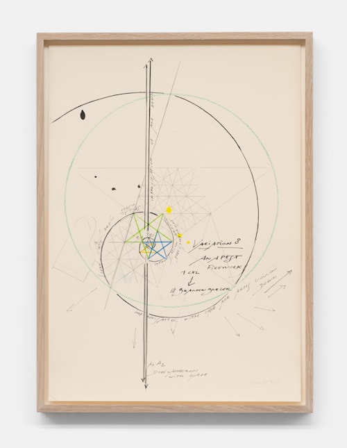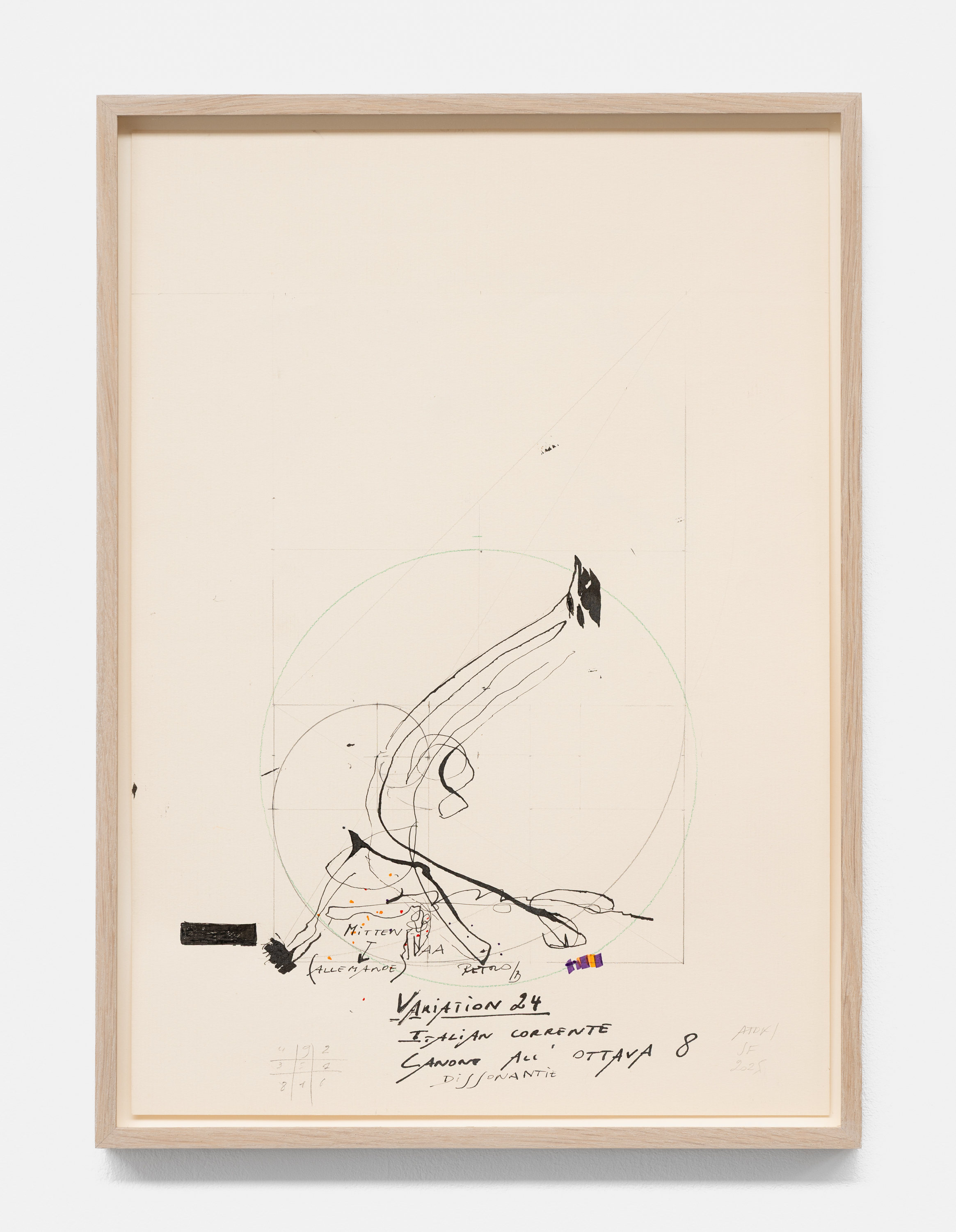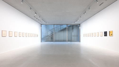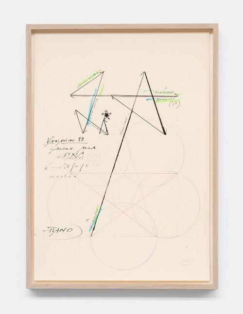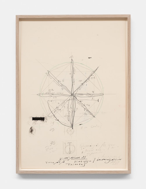 In the basement, a series of new, small drawings is displayed. They are not meant to be seen from a distance; they demand closeness and intimacy. For De Keersmaeker, drawing is an immediate, bodily form of thinking, where thought and gesture converge—a sensory reasoning in which hand tremor, movement, and the resistance of paper remain visible and tangible. Though private in nature, the drawings form both a key link in the creative process and an autonomous pictorial entity within the oeuvre. For this series, De Keersmaeker collaborated again with Steven Fillet. The drawings act as a companion score to the structure of the Goldberg Variations: compact yet layered fields, dense with texture and meaning.