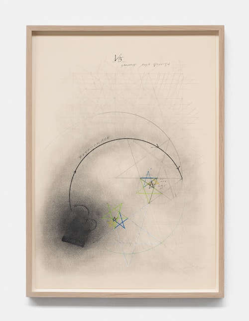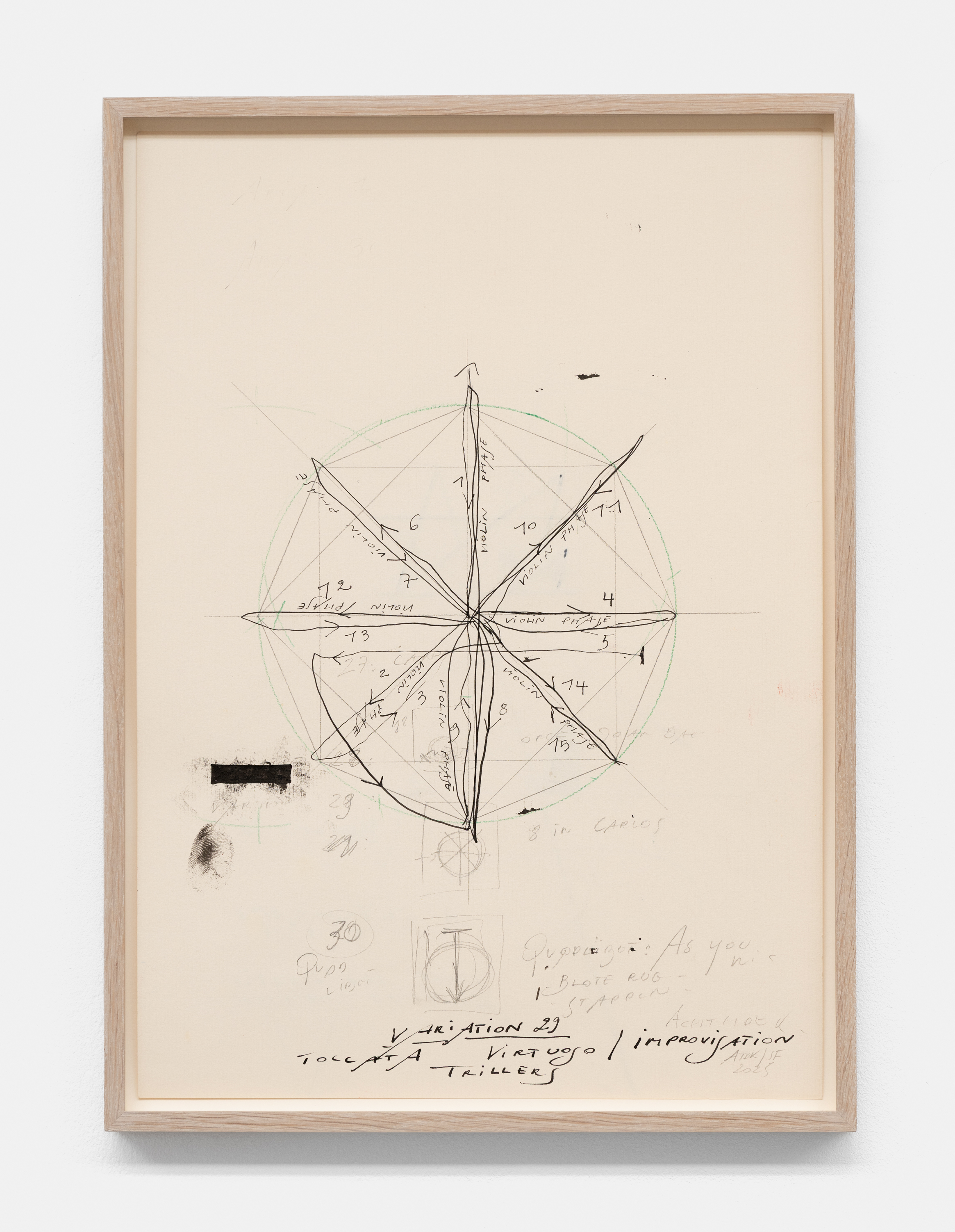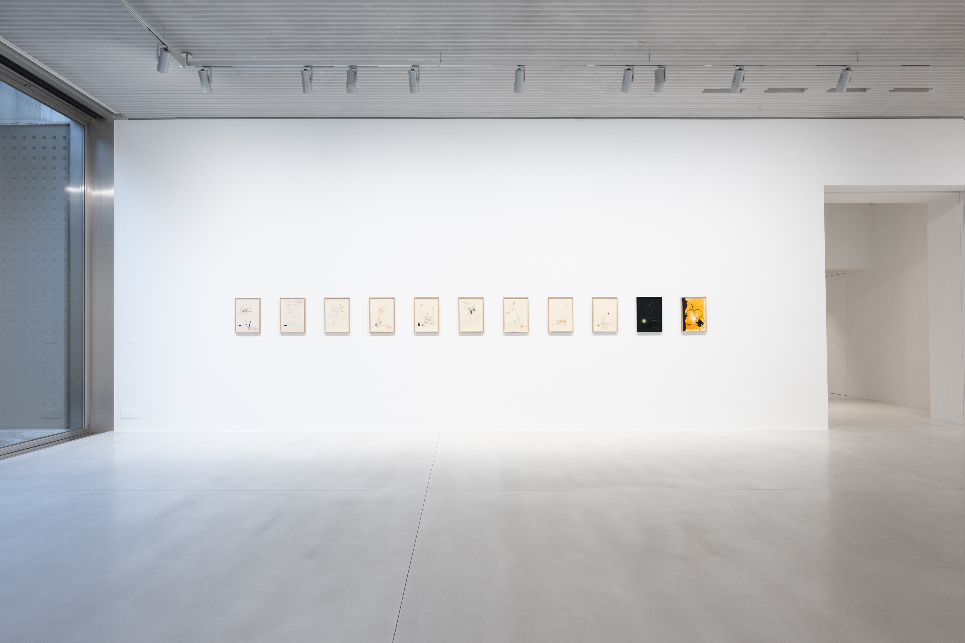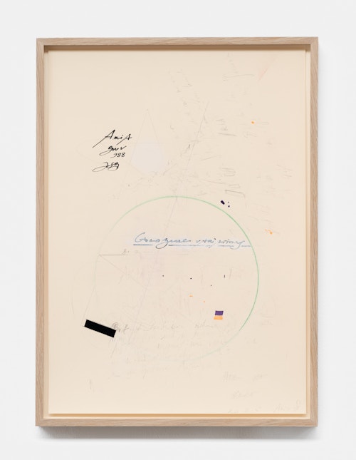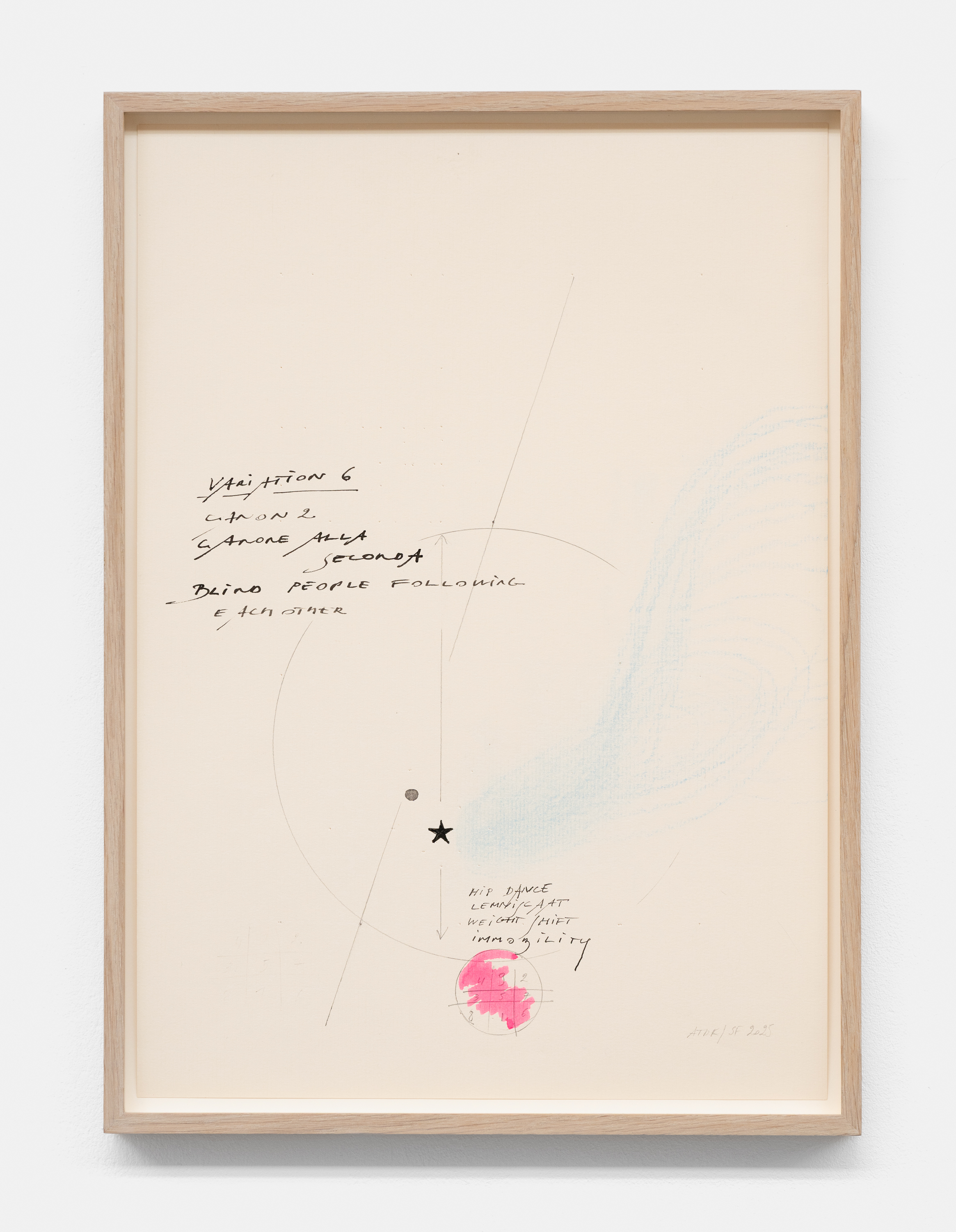 In the basement, a series of new, small drawings is displayed. They are not meant to be seen from a distance; they demand closeness and intimacy. For De Keersmaeker, drawing is an immediate, bodily form of thinking, where thought and gesture converge—a sensory reasoning in which hand tremor, movement, and the resistance of paper remain visible and tangible. Though private in nature, the drawings form both a key link in the creative process and an autonomous pictorial entity within the oeuvre. For this series, De Keersmaeker collaborated again with Steven Fillet. The drawings act as a companion score to the structure of the Goldberg Variations: compact yet layered fields, dense with texture and meaning.