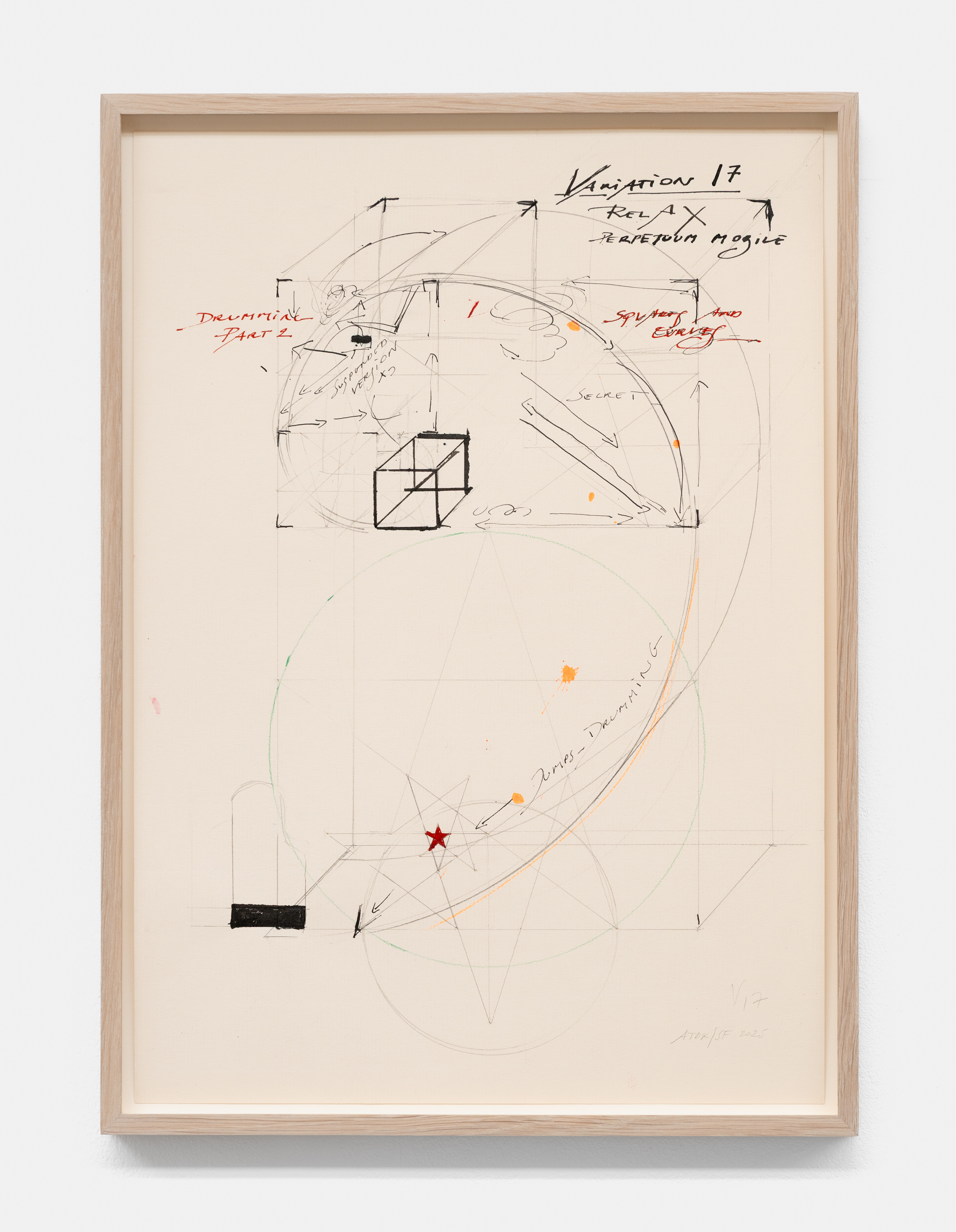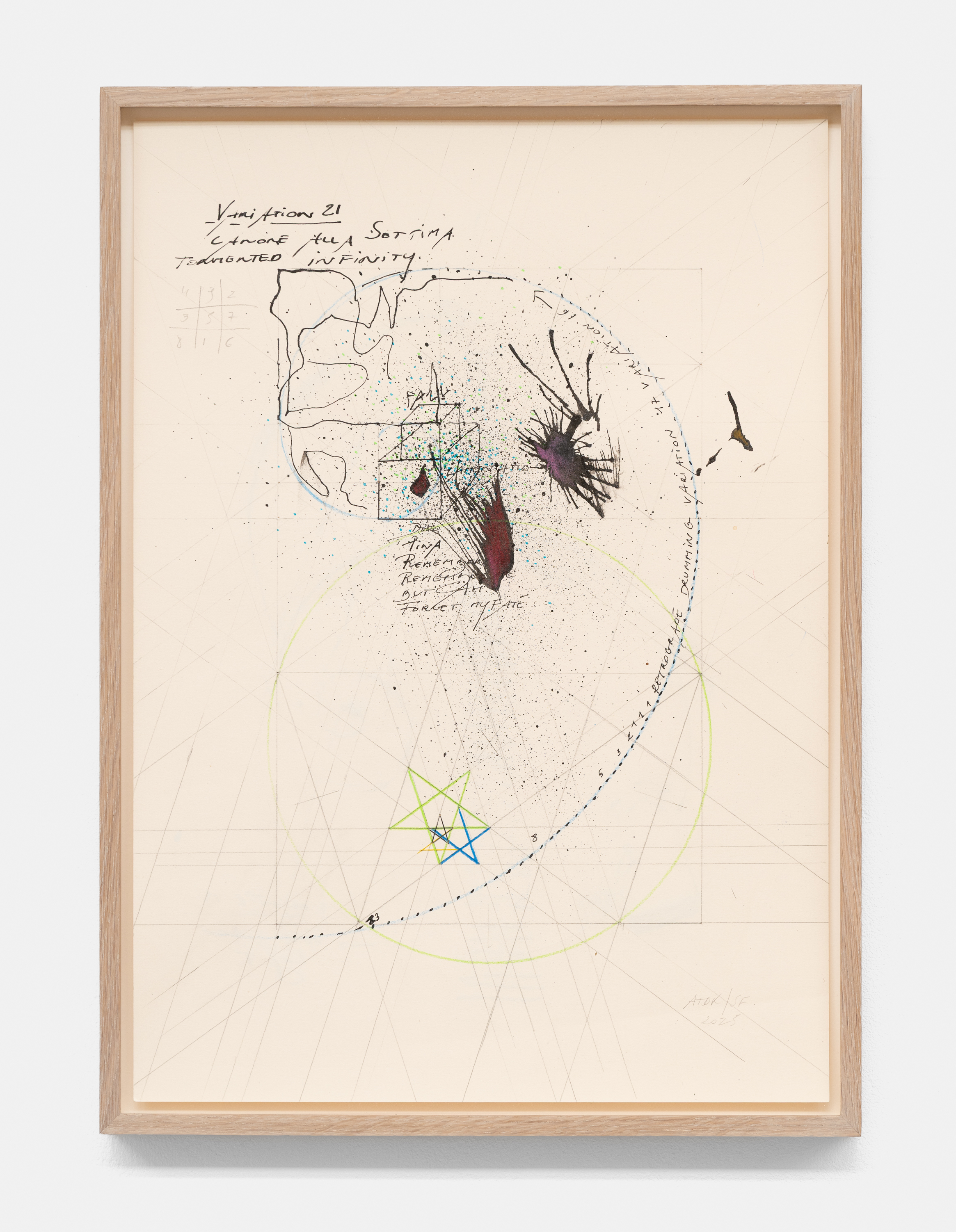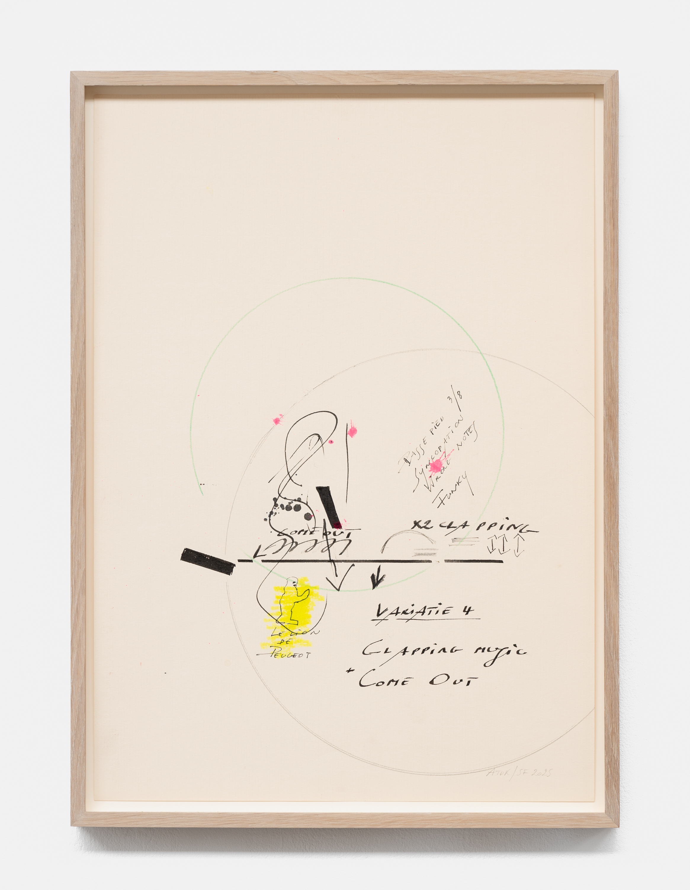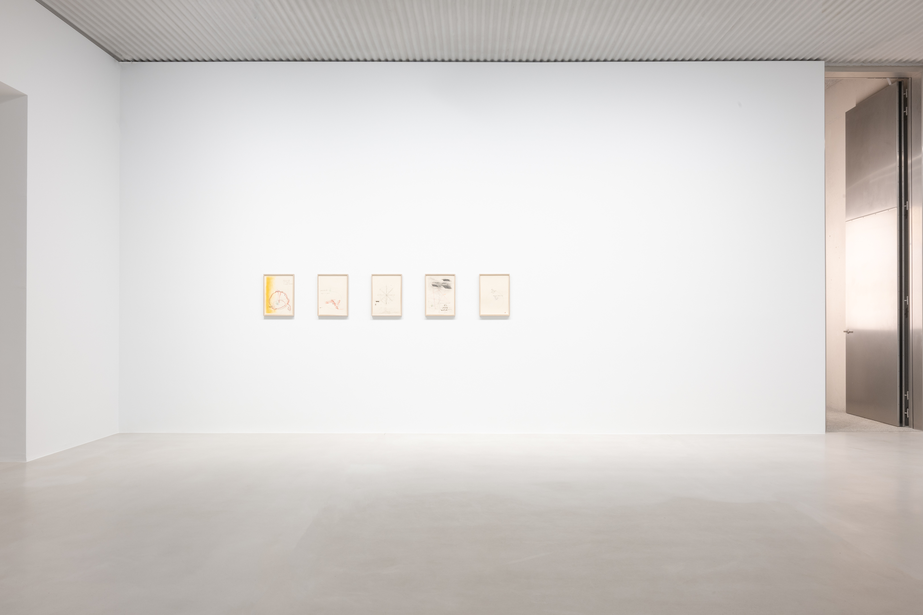 In the basement, a series of new, small drawings is displayed. They are not meant to be seen from a distance; they demand closeness and intimacy. For De Keersmaeker, drawing is an immediate, bodily form of thinking, where thought and gesture converge—a sensory reasoning in which hand tremor, movement, and the resistance of paper remain visible and tangible. Though private in nature, the drawings form both a key link in the creative process and an autonomous pictorial entity within the oeuvre. For this series, De Keersmaeker collaborated again with Steven Fillet. The drawings act as a companion score to the structure of the Goldberg Variations: compact yet layered fields, dense with texture and meaning.