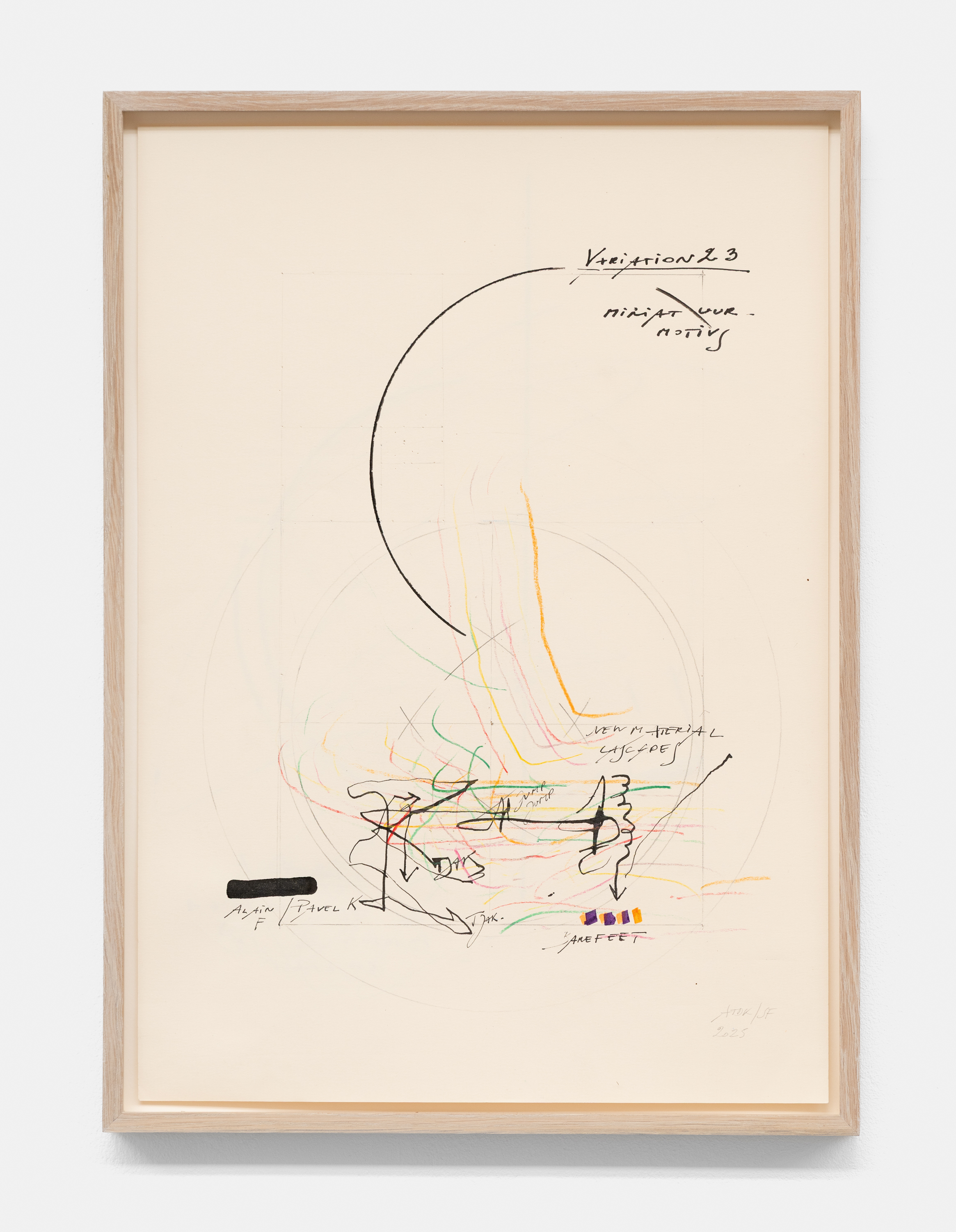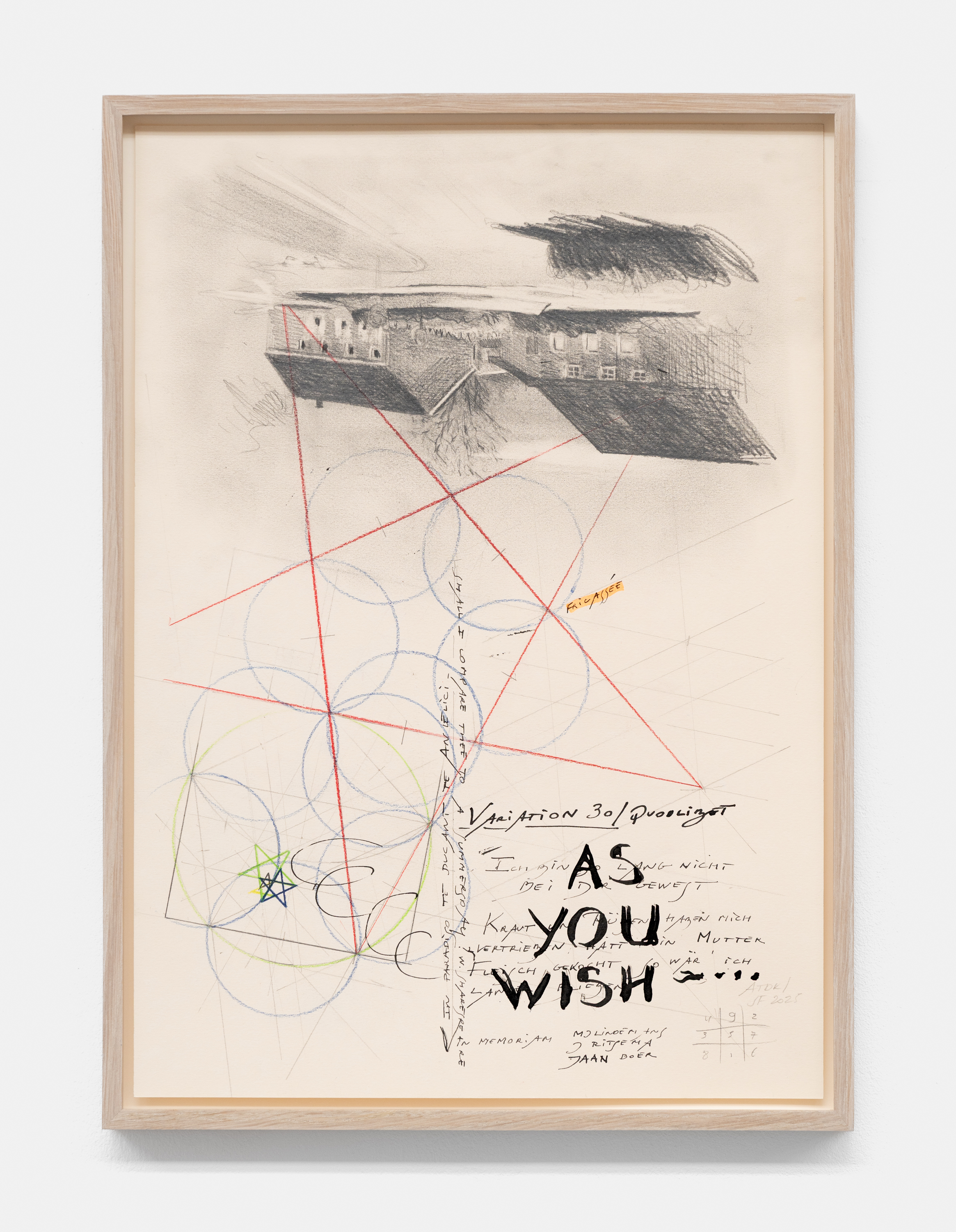 The exhibition title As You Wish—from the Latin quodlibet, literally meaning “whatever you want”—takes its name from Johann Sebastian Bach’s Goldberg Variations BWV 988, which not only provide the overarching framework for this project but also reflect the rhythms, structures, and sensibilities through which life and work are intertwined for both artists. Bach’s final, thirtieth variation bearing the same name: an unexpected ending to one of the most remarkable keyboard works ever written. Two folk songs (“Ich bin so lang nicht bei dir g’west…” and “Kraut und Rüben haben mich vertrieben hätt’ mein’ Mutter Fleisch gekocht, so wär’ ich länger blieben…”)¹ dance over the foundational bass line. It is as if everything that came before dissolves into something lighter and more familiar—a kind of homecoming. Some see in this a glimpse into the Bach household, where music was never segregated, but a constant, ever-present fact of life.