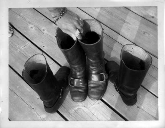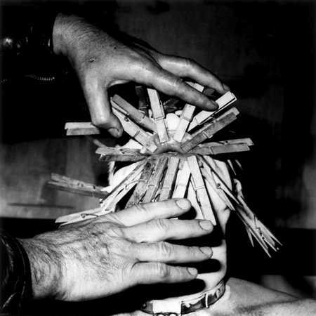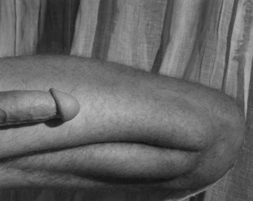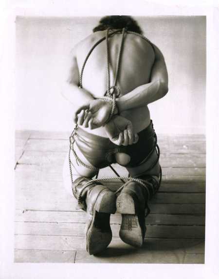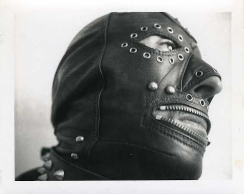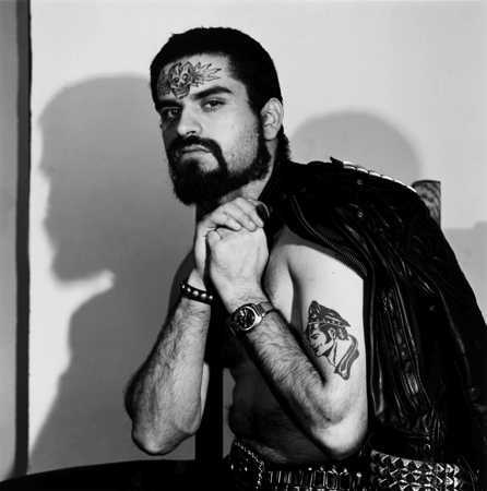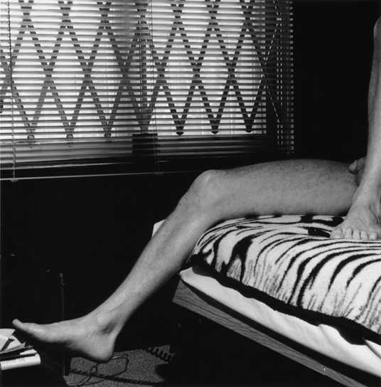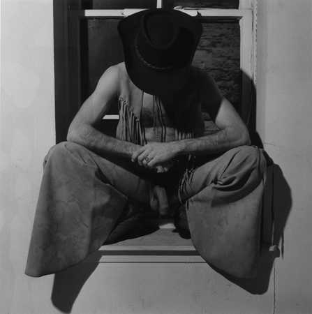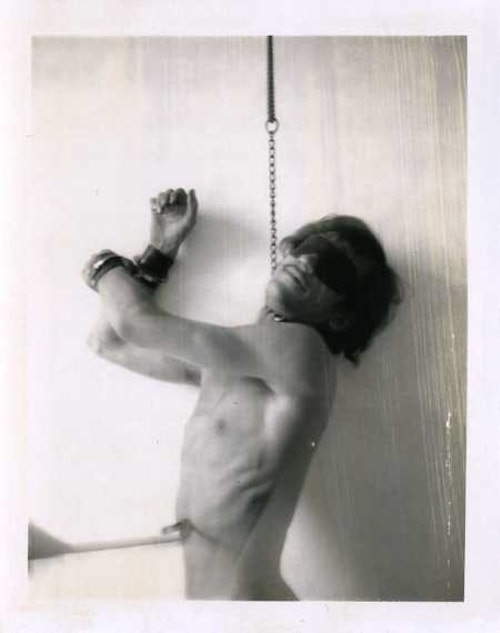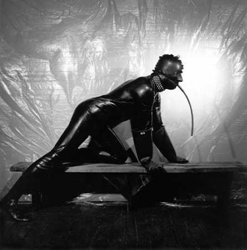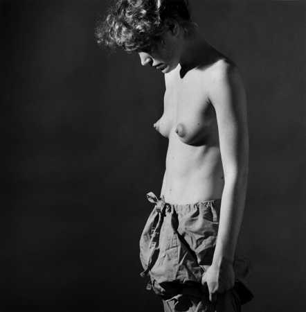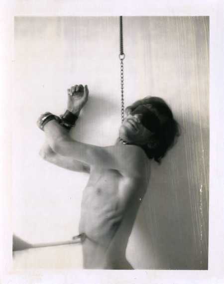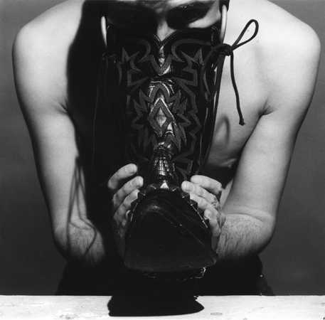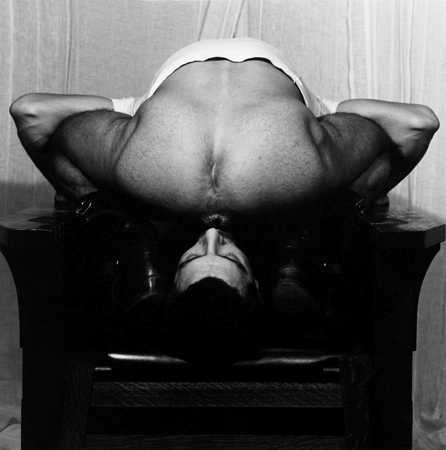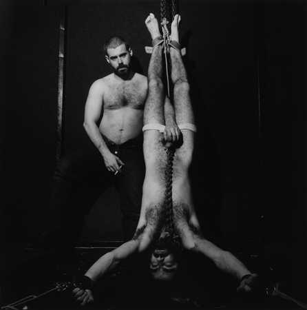 In the mid 70s, Mapplethorpe grew increasingly interested in documenting the New York S&M scene. The resulting photographs are shocking for their content and remarkable for their technical and formal mastery. In Jim, Sausalito from 1977, the main character is clad in leather boots, trousers and mask, all typical of the gay S&M scene. The triangular shape formed by his body is bathed in light from above, as his gloved hands hold on to the rungs of a ladder, which forms a grid of horizontals and verticals in the left half of the image. The man may look menacing, but he seems attracted to the light above. Mapplethorpe was constantly drawn to the ambiguous relationships between light and dark, good and bad, heaven and hell. Yet Mapplethorpe's art always revealed the humanity and emotions of his subjects behind their leather, spikes, and chains. Mapplethorpe told ARTnews in late 1988, "I don't like the particular word 'shocking.' I'm looking for the unexpected. I'm looking for things I've never seen before… I was in a position to take those pictures. I felt an obligation to do them.