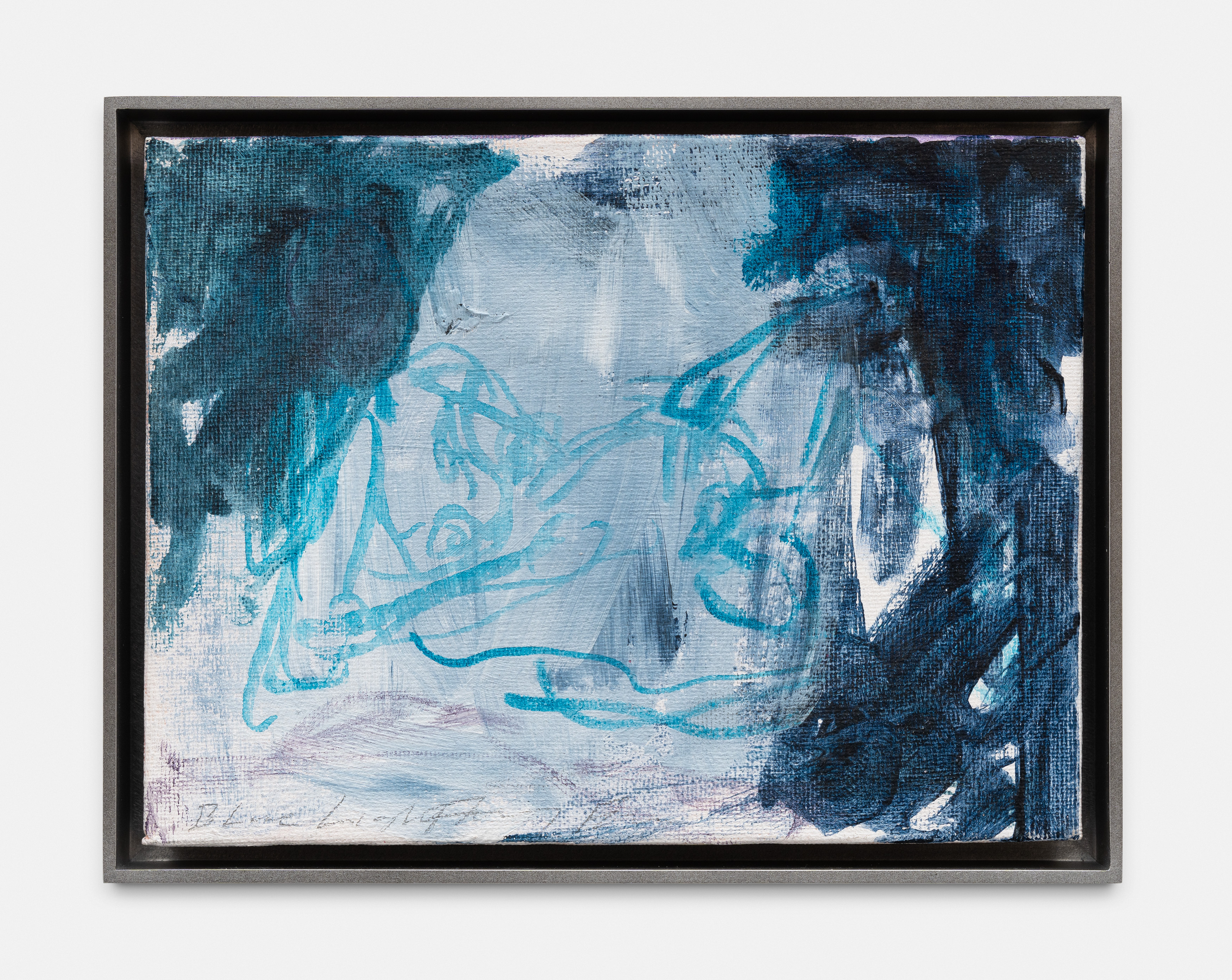 Dreams and sleep, and their antitheses—nightmares and insomnia—are also weaved through the exhibition, alongside the ghosts of past masters. Her painting The Nightmare, for example, echoes the Swiss artist Henry Fuseli's work of the same name from 1781: a dark incubus atop a pale, supine woman. The image reflects Emin's deep engagement with art history, as seen in previous works inspired by Edvard Munch. From My Bed (1998) to Insomnia Room (2019), the artist's nocturnal hours, both good and bad, invariably seep into her work. Several paintings in the exhibition, including I Kept Dreaming, Night Time, and Sleeping with my eyes open extend this trajectory. Water also makes its presence felt, both in the myriad shades of blue that can be seen in the paintings, but also as a motif. It embodies various symbolic interpretations, serving as a symbol of purity and renewal (I wanted to be clean) to one of fear and anxiety (I Kept Drowning).
