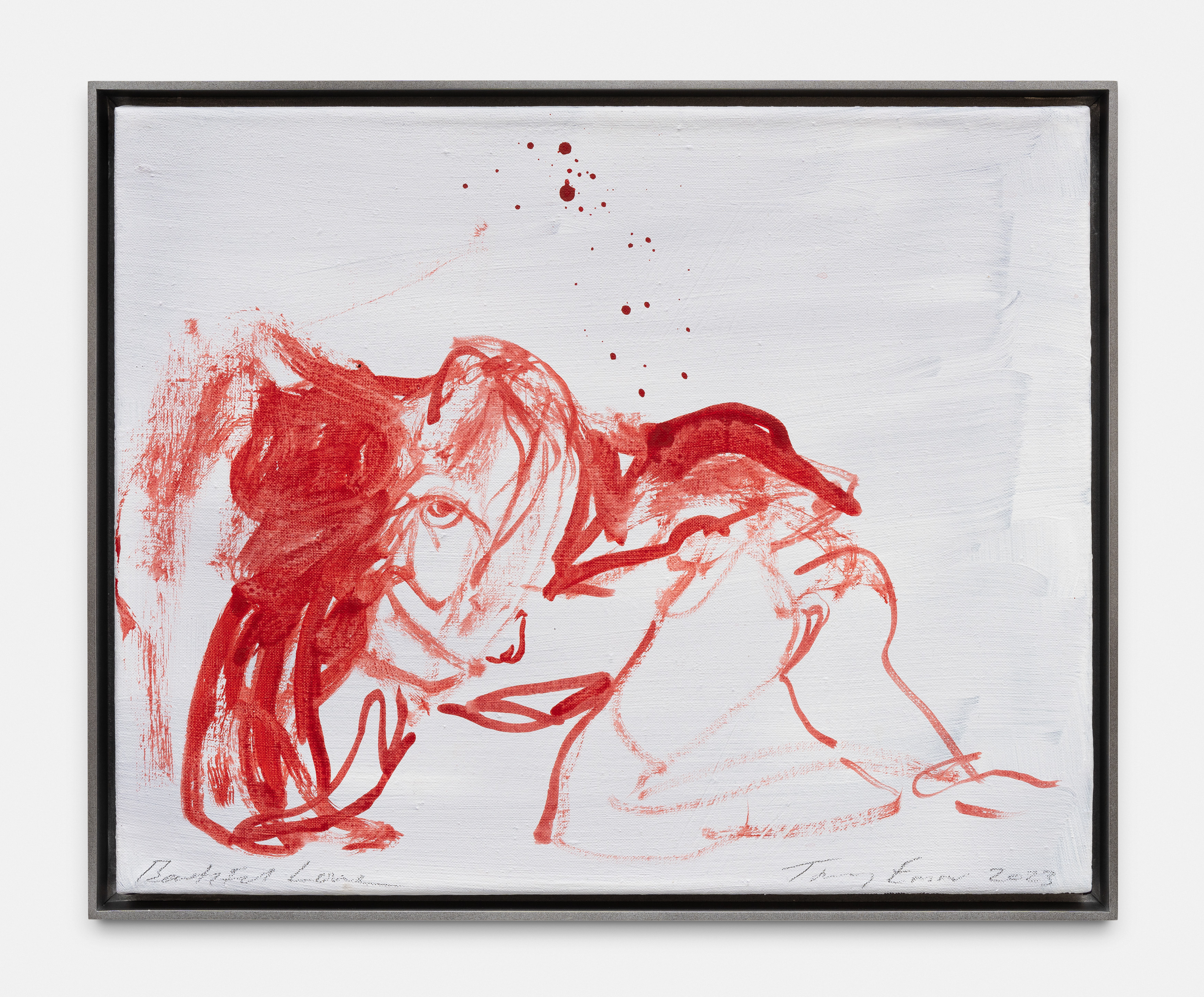 Tracey Emin's new exhibition with the gallery revolves around a seminal theme in her oeuvre—love in all its many guises. In a new series of paintings, ranging from the intimately scaled to the monumental, Emin explores the intricacies of the human emotions, revealing a profound understanding of our innermost workings. Gestural brushstrokes and bold use of colour evoke intimacy of the human body and its emotions laid bare. While Emin's commitment to painting has remained steadfast throughout her career, recent years have seen a renewed focus on this core element of her art. This revived attention is evident as she immerses herself deeper into the realm of painting, infusing her art with her personal experiences of love and mortality.