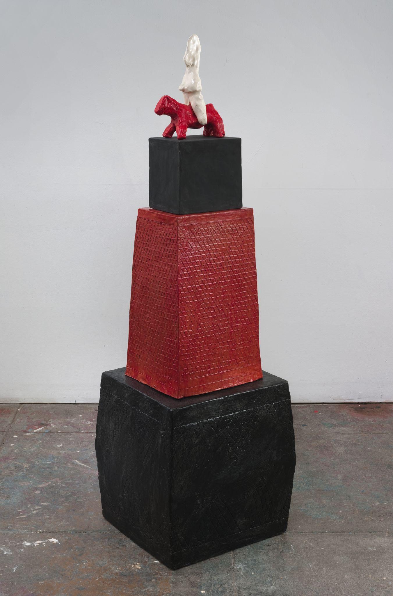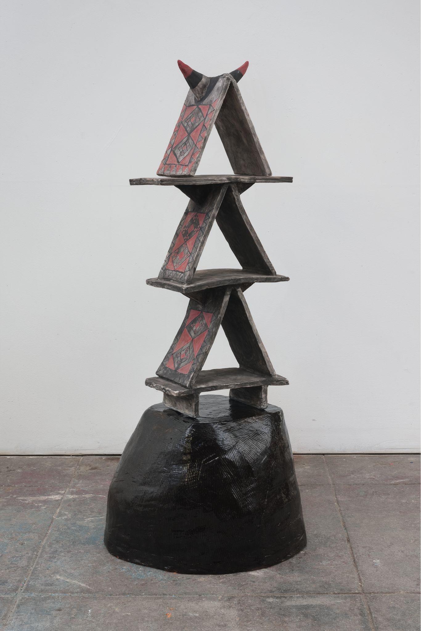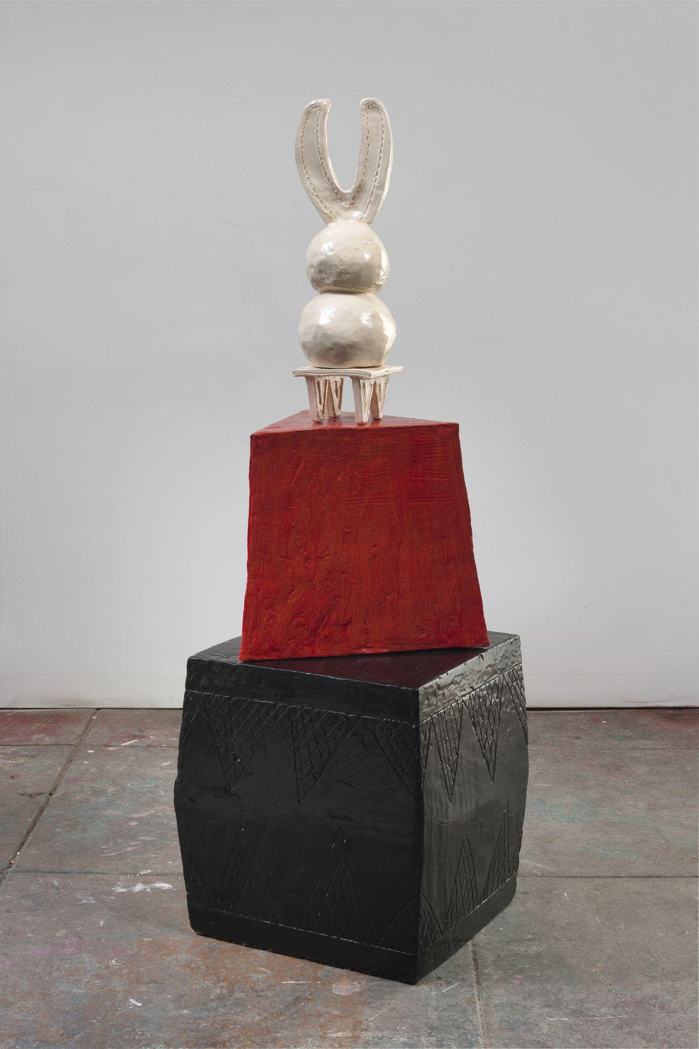 The works in California Ras Shamra encapsulate Holloway’s trans-historical and interconnected view of the universe – a world in which seemingly remote cultures and plural belief systems coexist in a form of artistic space-time continuum. The unexpected, hybrid visual forms that he sculpts are as paradoxical as they are enigmatic: archetypal yet atypical, delicate yet brutal.