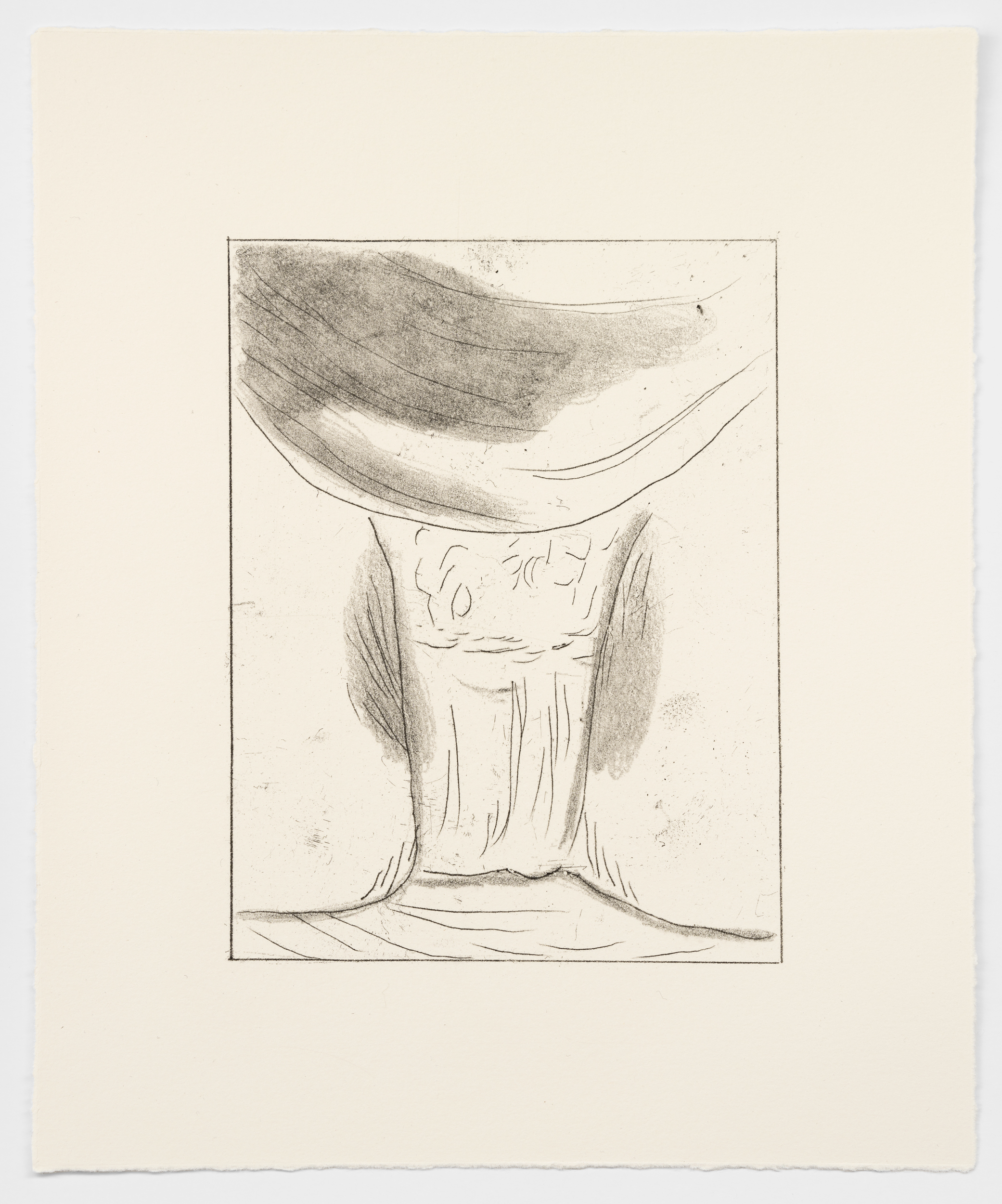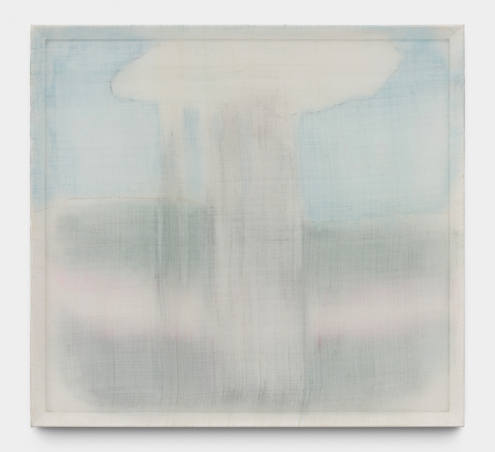 These works are shown in conjunction with a series of paintings in which medium, support, composition and colour (or its absence) have an equivalent value. In these works, the artist paints on highly sustainable fabrics (linen, pineapple leaf cloth, known as Piña, and a textile crafted from banana bark fibres) using egg tempera and gum Arabic (a binder made from the sap of the Acacia tree to which pigment is added). Many of these images reference flowers and plants. The natural luminous delicacy of these organic, time-honoured materials enters into an intriguing dialogue with the opacity and solidity of the man-made consumer goods. The exhibition also includes finely drawn lithographs and soft-ground etchings. The historical techniques used in these works result in delicate surface textures that chime with Wilkes’ paintings and overall lightness of touch.