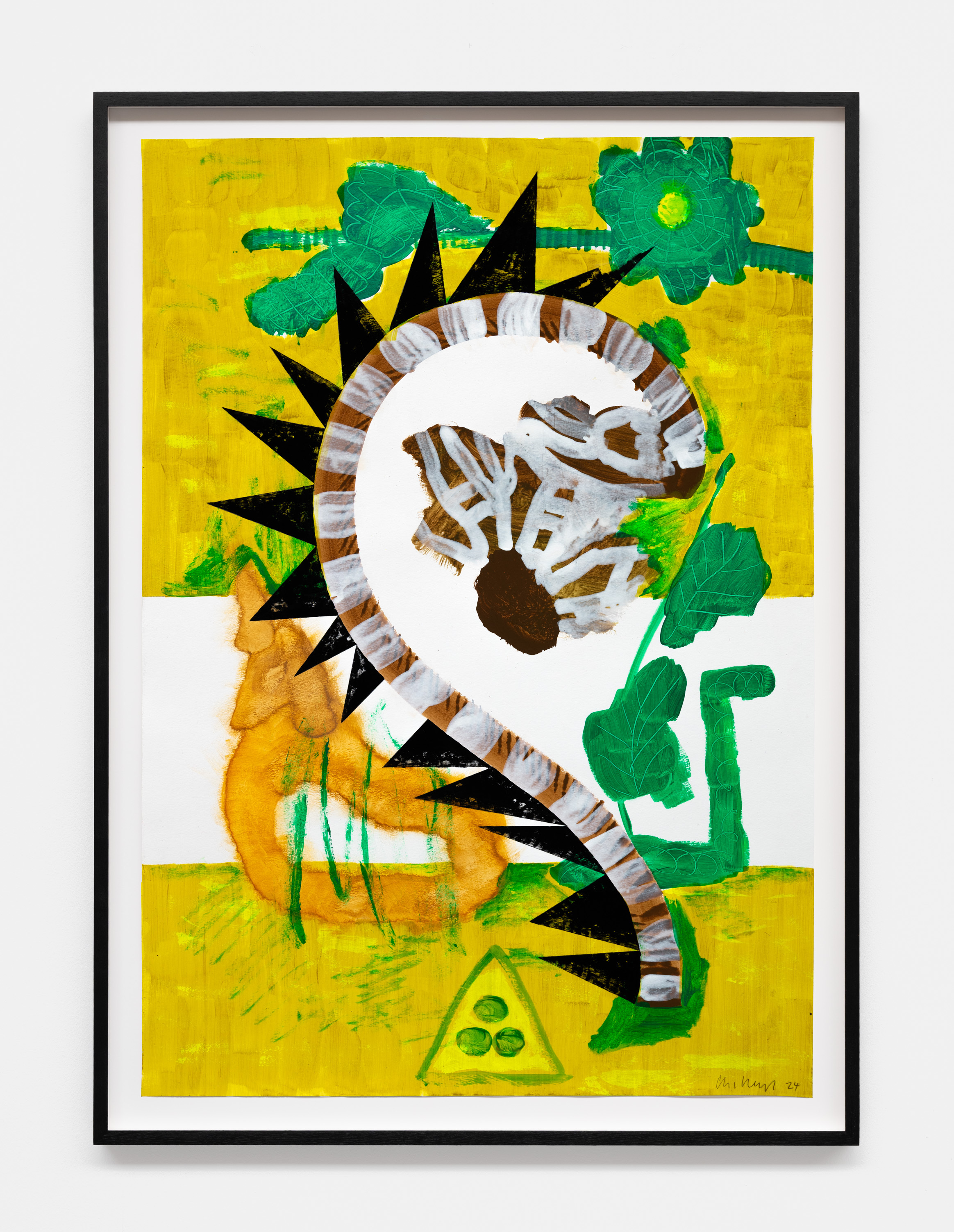 Charline von Heyl’s first exhibition at Xavier Hufkens presents a dynamic suite of new paintings, works on paper, and etchings that pulse with invention, wit, and formal tension. Long regarded as a vital force in contemporary painting, von Heyl conjures a visual universe that is as expansive as it is unpredictable. What emerges is a protean body of work: restless, confident, mercurial, and alive with inquiry and mischief.
