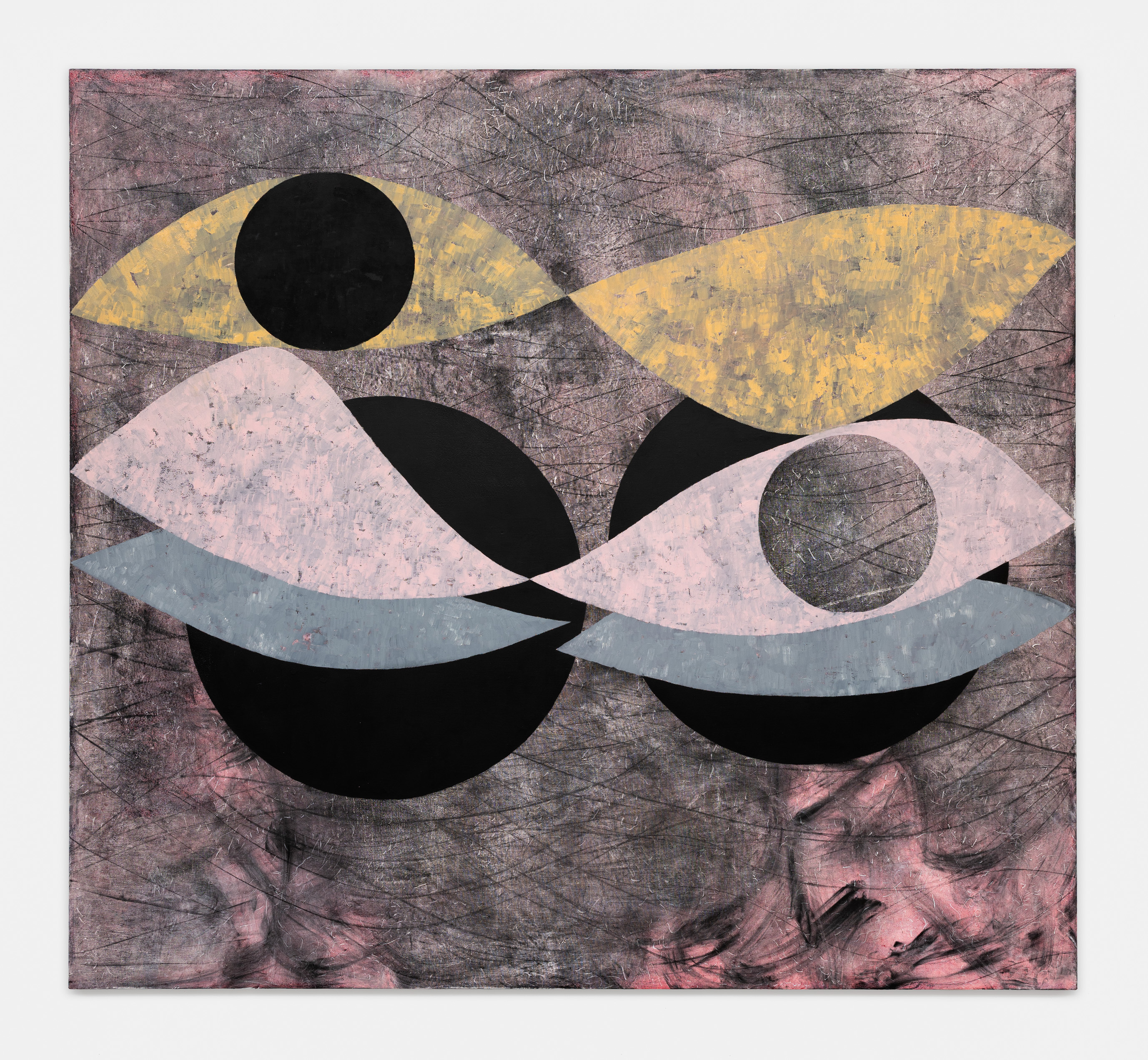 A quiet thesis of the exhibition is captured in The Open, a painting whose title nods to Rainer Maria Rilke’s Eighth Duino Elegy. von Heyl’s own translation of its opening line — “With all eyes the creature sees into the open” — invokes a meditation on the divide between human and animal consciousness. For Rilke, “the open” is the animal’s pure, unselfconscious perception, unclouded by the foreknowledge of death. The human gaze, by contrast, turns inward, burdened by self-awareness and retrospection. von Heyl channels this metaphysical tension not overtly, but through perceptual states that hover between sensation and cognition.