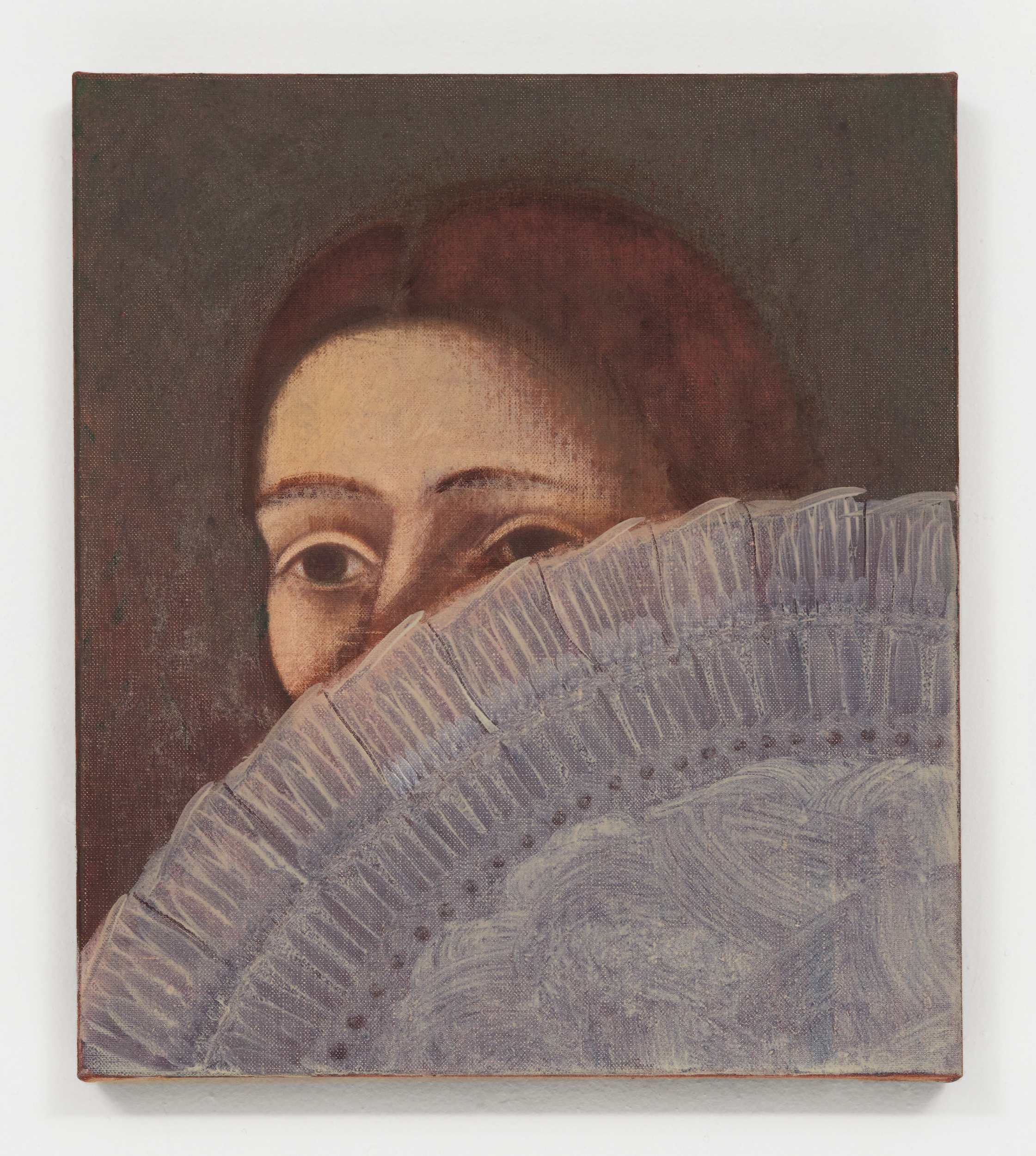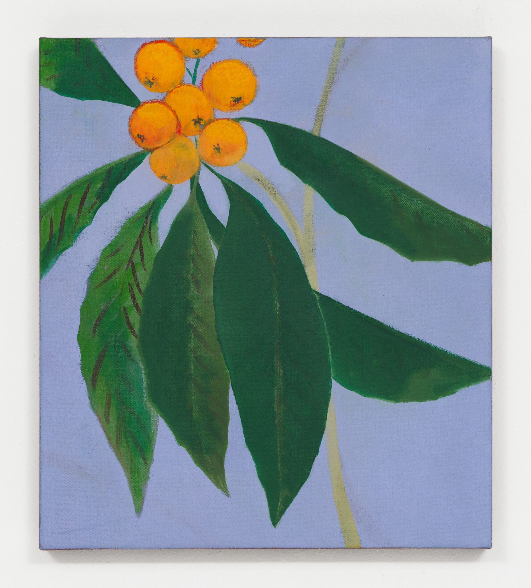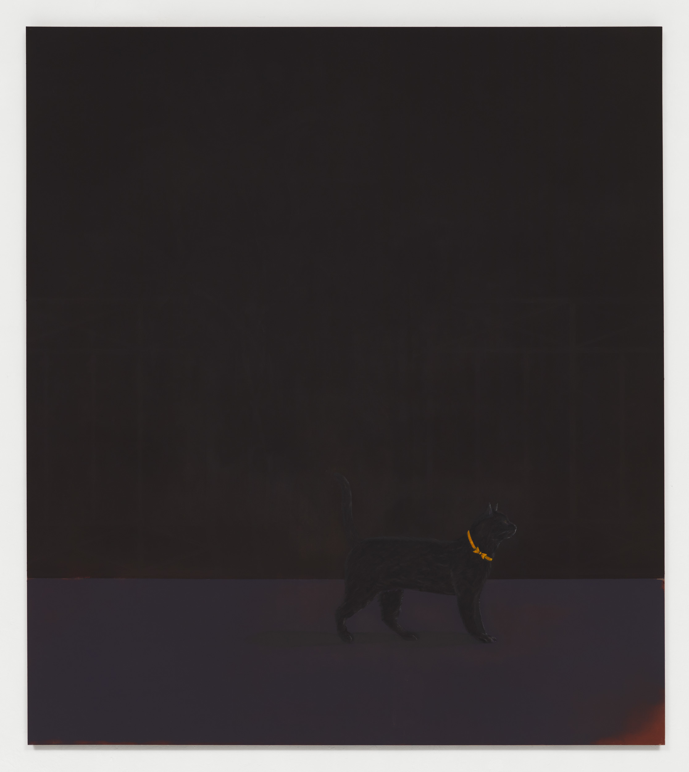 Nitsche’s paintings are inspired by his immediate surroundings: people and interiors, social interactions, animals and nature, street scenes and still lives. These are not rendered literally but distilled—through the filter of memory and act of painting—into atmospheric compositions with few, if any, references to time or place. Interiors are sparse and impersonal, faces are inscrutable and impassive, streets and landscapes lack topographical detail. The indeterminacy is purposeful: Nitsche is not aiming to recreate specific or immediately recognisable scenes, preferring instead to leave their significance open to interpretation. Executed from recollections and photographs, or a mixture of both, Nitsche’s works communicate an intensified and enhanced vision of reality. His figures, for example, are not portraits in the sense of being painted from life, yet they all possess a degree of recognisability. Certain characters reappear in different scenarios, such as the woman in Fleur d’Agave, Micocoulier, Une Mère and Derrière un Eventail, or the yellow-collared black cat. This recapitulation establishes a dialogue between the individual paintings and adds a dramaturgical flow to the exhibition: as if the pictures are stills from a film whose plot remains just out of reach. This open-ended approach encourages viewers to imagine the potential relationships between the characters, the settings and the artist who records them. Nitsche’s transformation of the visual reality results in compositions that feel both fictitious yet plausible, otherworldly but actual. The unusual greenery in La Nonnette, for example, is inspired by a small, planted area observed by the artist in an actual street. Yet everything is flowering and fruiting simultaneously, the colours and forms are ideally balanced and the bird is perfectly poised. Nitsche presents us with a sublimated reality, an image that is almost too good to be true yet eminently believable.