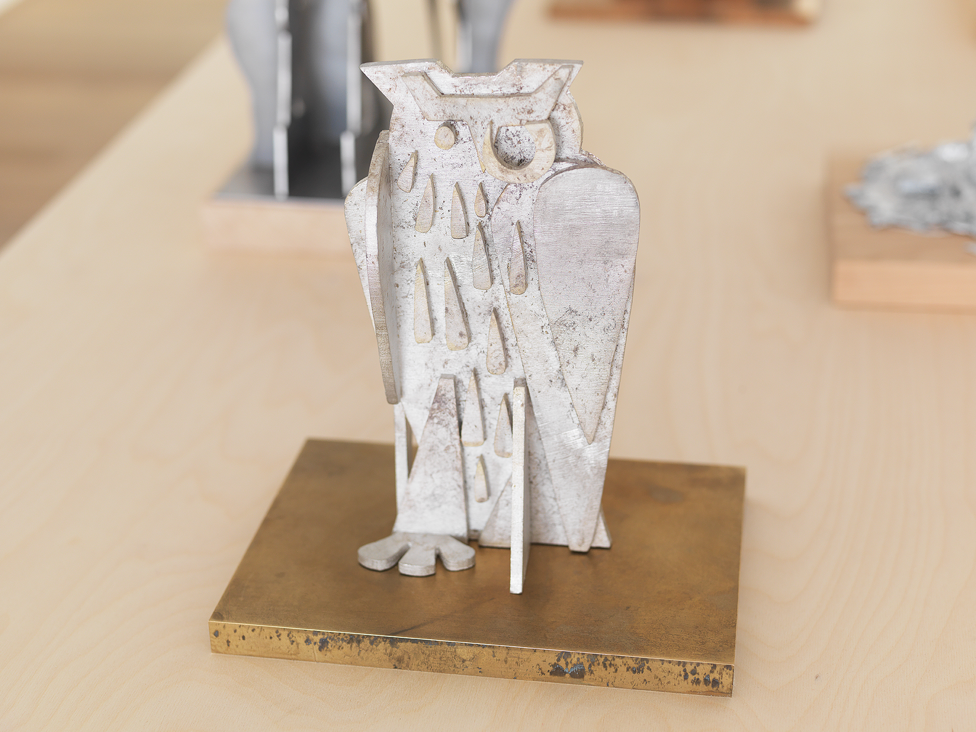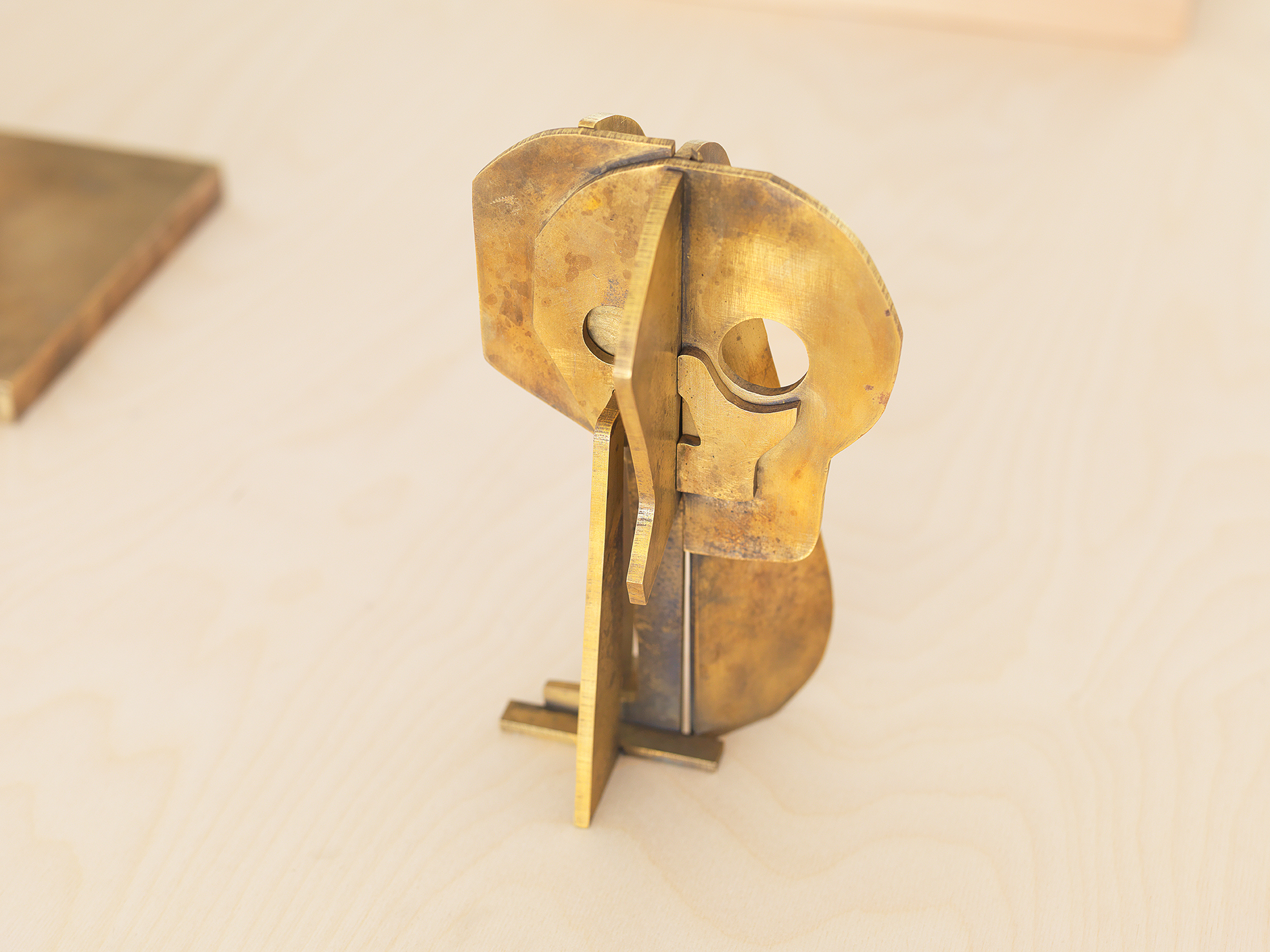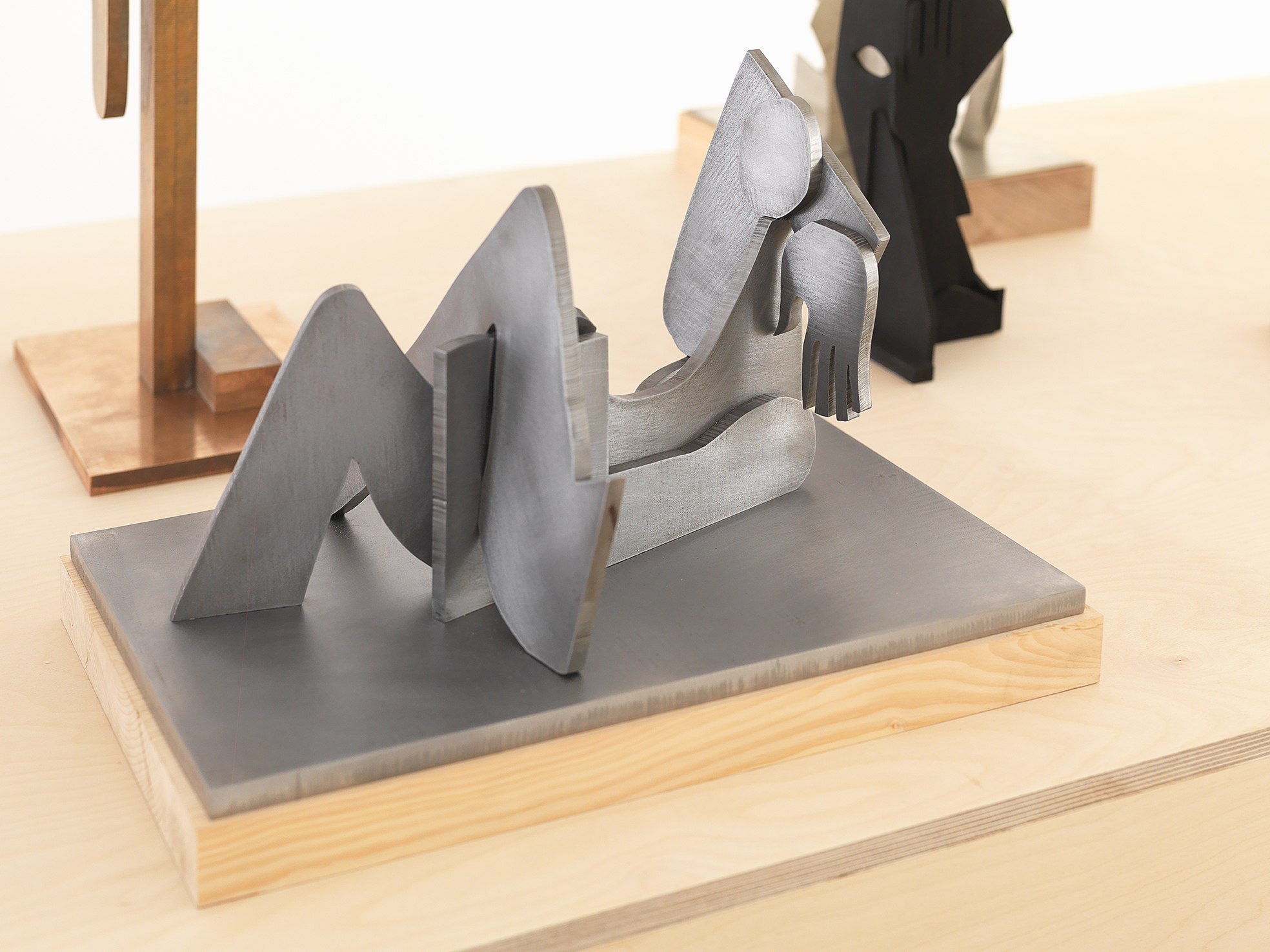 Artists such as Giacometti, Rodin, Brancusi and Calder have long fascinated Houseago with their ability to project intentions of monumentality onto their sculptural models. In Constructions the artist presents new assemblage sculptures, originally fabricated in plywood and questions the conditions of monumentality by taking “a very meditative and almost performative stance” to his relationship with scale. The basis for these works are sketches. Their movement from drawing to wood cuts and from wood to metal traces their making and establishes solid form through actions and transitions. The sculptures combine topics the artist has long been captivated by: the walking figure, the head and face, the reclining figure, the owl.