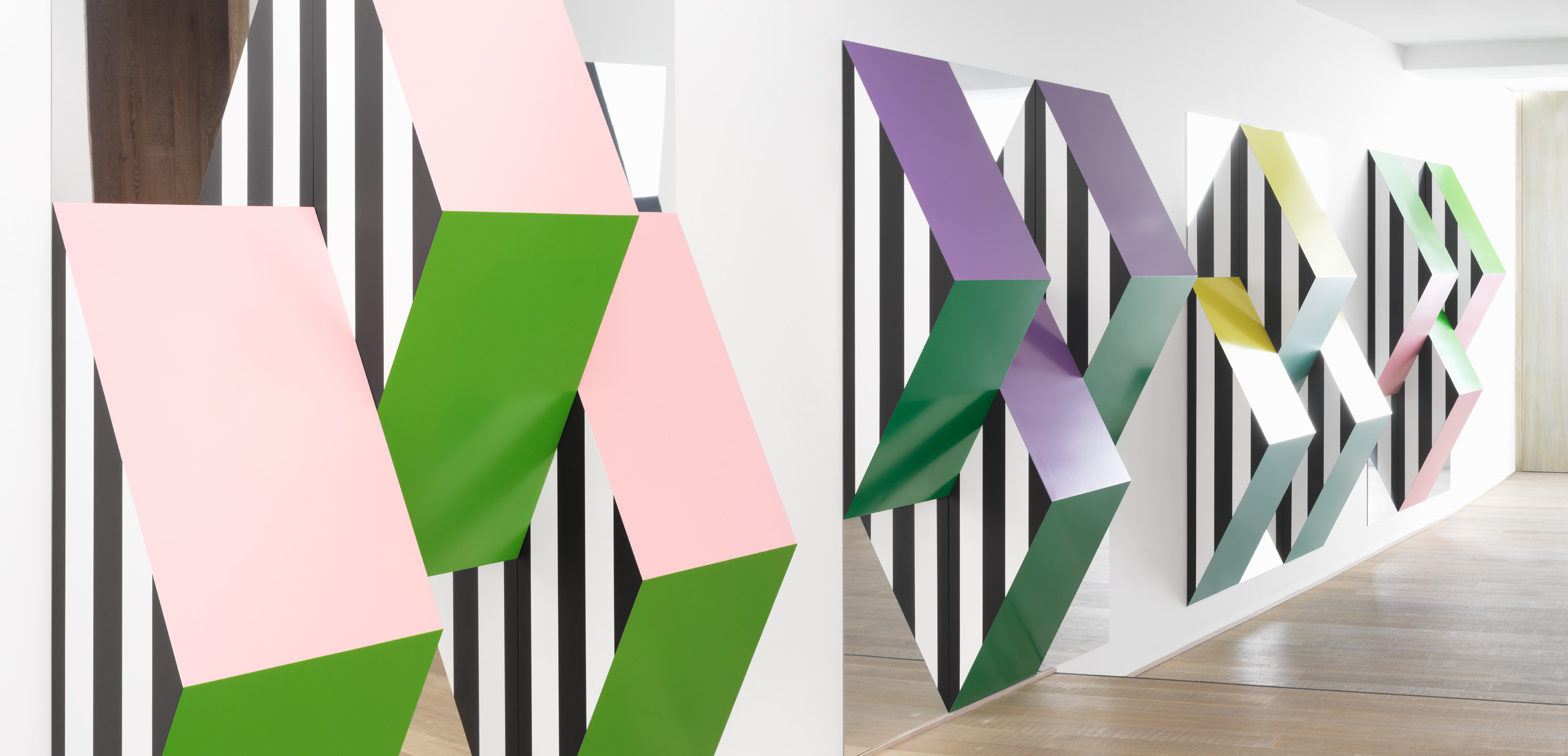 Xavier Hufkens is delighted to present an exhibition of new work by Daniel Buren. The exhibition comprises a series of high wall reliefs in which the artist combines his visual tool (the alternating stripes) with two other important elements in his work (colour and mirrors) to create works that enter into a dialogue with the space, with each other and with the viewer.