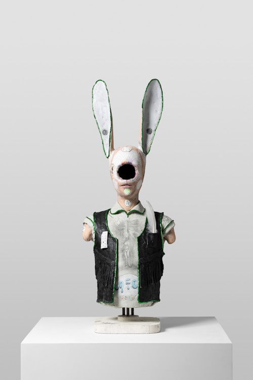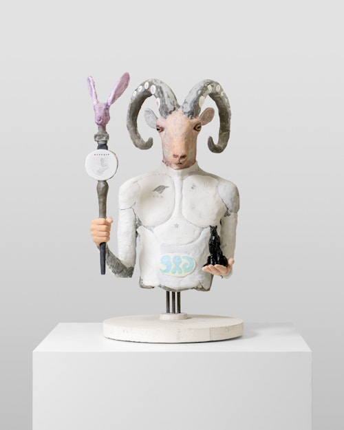 From the celestial heavens to the depths of the earth, the natural world is the lifeblood of David Altmejd’s oeuvre. In his new sculptures, Altmejd introduces an expanded pantheon of hybrid, anthropomorphic beings that allude to the multi- faceted power of animals in various cultures and belief systems. The works are rich in symbolism and evoke a transcendent quality that surpasses the boundaries of the physical world. Rams, an orca, snakes, a panther, birds, rabbits and swans have all made their way into the oeuvre, serving as metaphors and companions since time immemorial, with their wisdom often pointing the way to spiritual enlightenment. Consider, for instance, the Bible, the Koran, the Dhammapada, the Analects of Confucius, or Aesop’s fables.