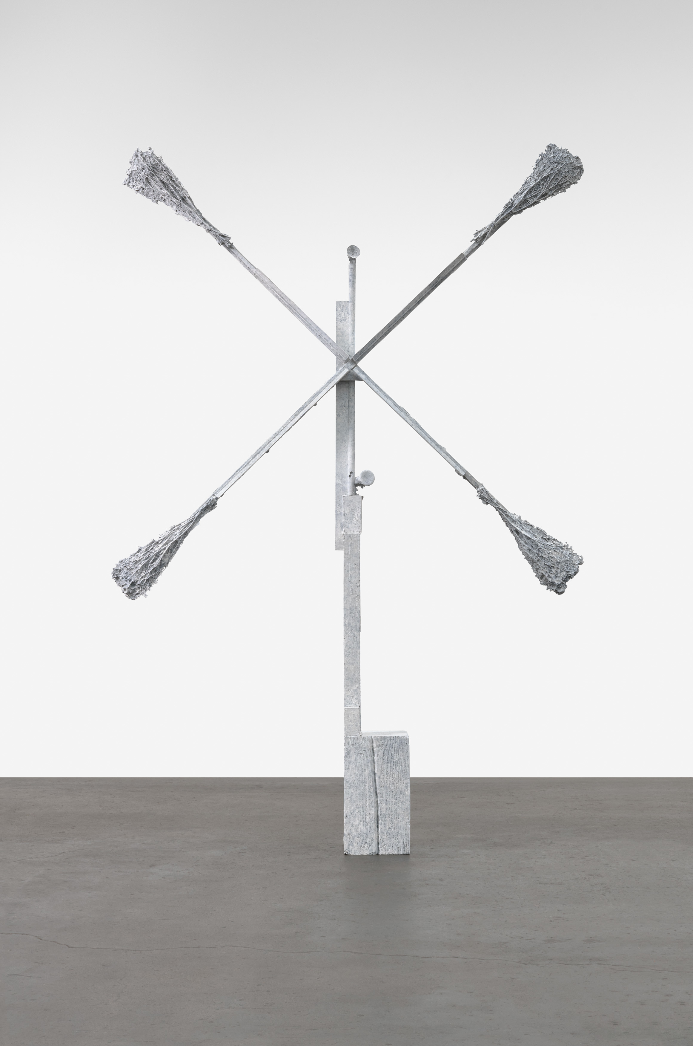Other aluminium sculptures are shaped like windmills, a structure symbolic of progress and sustenance. Historic examples still punctuate European landscapes as reminders of a bygone age. Different versions arose in the US: the distinctive water-pump windmills that allowed farmers to conquer America’s ‘breadbasket’, the Great Plains. Both are turbines, although the latter have all but disappeared from the American landscape. On another level, Ruby’s sculptures also speak to rich visual and literary traditions. From the windmills of Hobbema and Vermeer to those of Malevich and Mondrian, or from Don Quixote to Alfred Daudet’s Letters from My Windmill, this is a machine whose power reverberates down the ages.