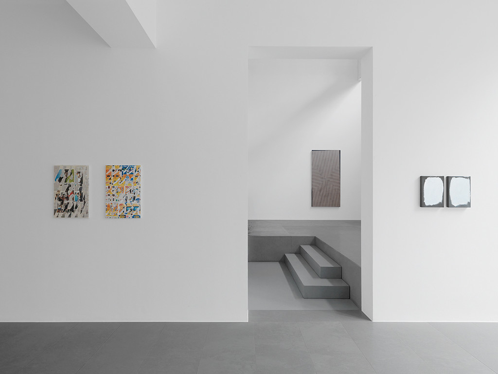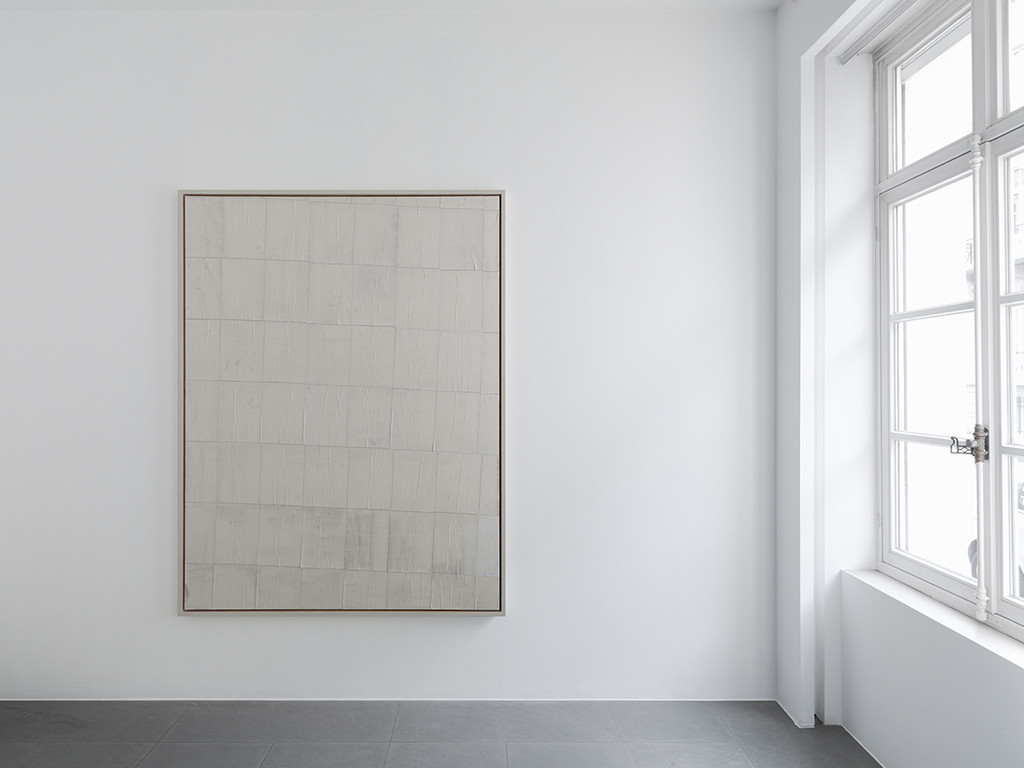 ANDREW DADSON (Canada, 1980) lives and works in Vancouver. Dadson combines strong concep- tual ideas with highly imaginative object making. His work develops the idea of the action repeated in time, questioning the concept of limit and physical space. In his paintings he exceeds the two-dimensional plane of the canvas to create a sculptural relationship with space. Dadson’s so-called ‘Lean Paintings are protruding from the wall into space, causing a visual distortion which makes their square or rectangular shape look trapezoidal. Leaning against the wall as props, these paintings refer to the work of Richard Serra and Charles Ray, while their monochrome surfaces hark back to the experiences of American abstraction, to artists such as Rauschenberg, Reinhardt and Rothko.