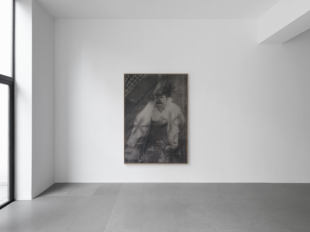 DAVID NOONAN (Australia, 1969) lives and works in London. Noonan depicts a universe inspired by theatre, ancient rituals and folk mythology, and the sinister world of the occult. His human figures are visible only partially, hanging out of time, place or specific colour. Costumes and masks hide their real character. Despite this dark mood, there is a delicate and poetic sensibility to Noonan’s work that uses slips and accidents of memory to offer a captivating anonymity. His paintings disorient the viewer by the sight of fragile bodies carrying blind rituals. The texture of Noonan’s photographic prints and silkscreen prints on linen grants them a sculptural dimension. Noonan had solo exhibitions at the Palais de Tokyo in Paris, the Australian Center for Contemporary Art in Melbourne and the Chisenhale Gallery in London.