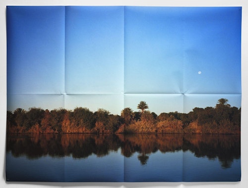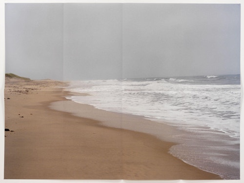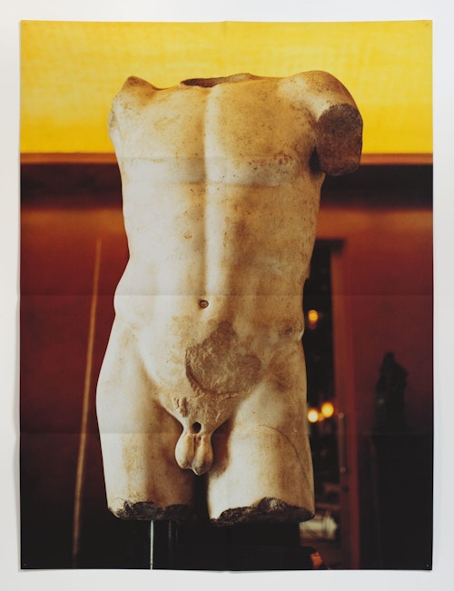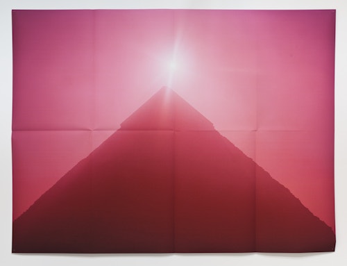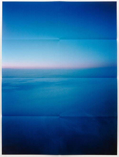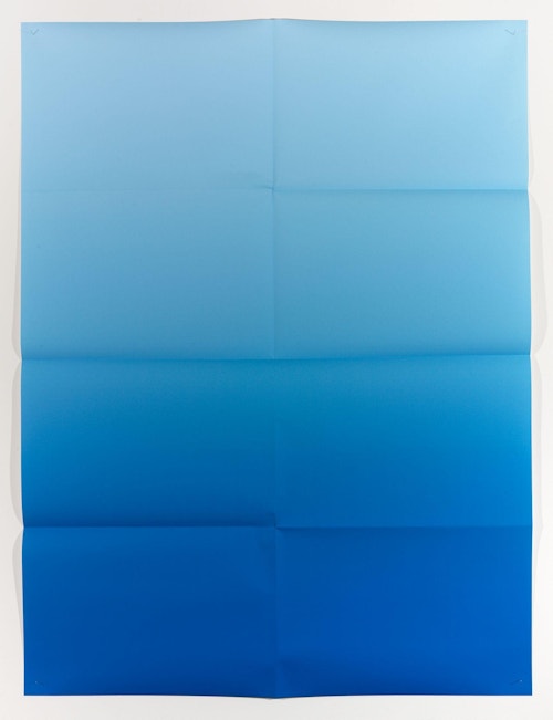 Folded in eight as if to fit in an envelope, and attached directly to the wall using pins, there is an enigmatic quality to Pierson’s large-scale pigment prints: on the one hand, they resemble posters, with all the bittersweet qualities associated with disposable, ephemeral objects. Yet, in reality, the works are exquisitely printed fine art photographs produced in tiny editions.
