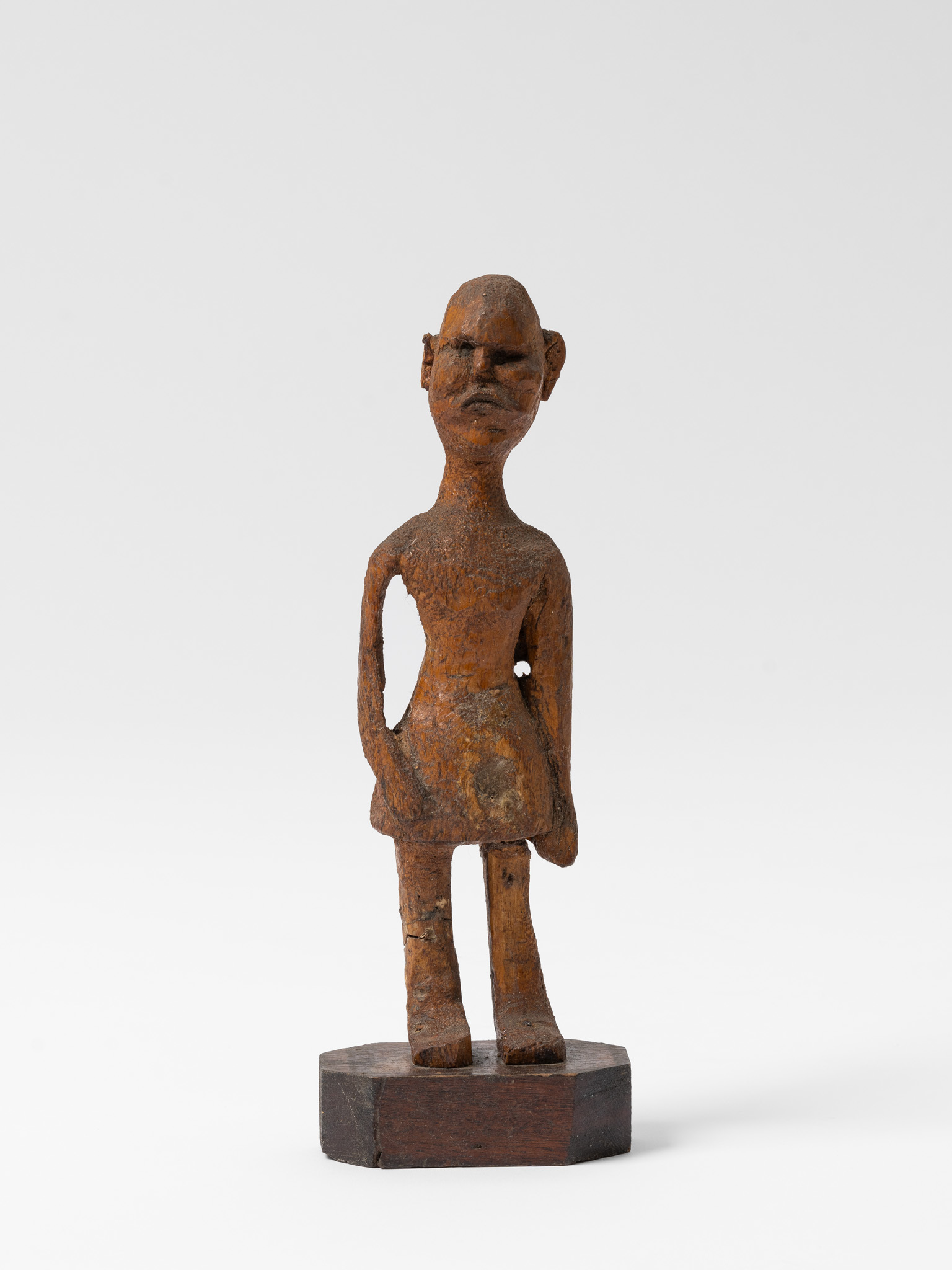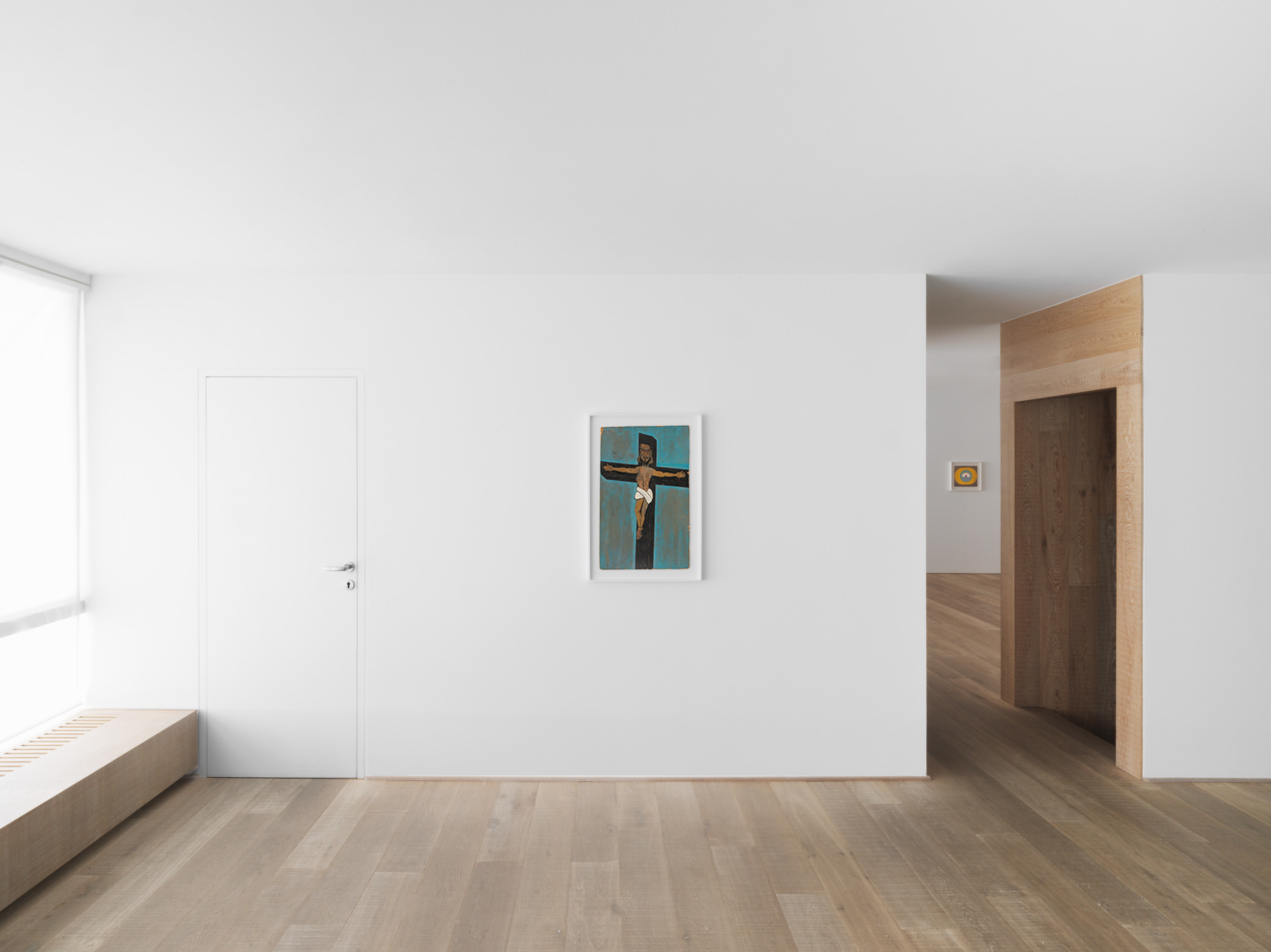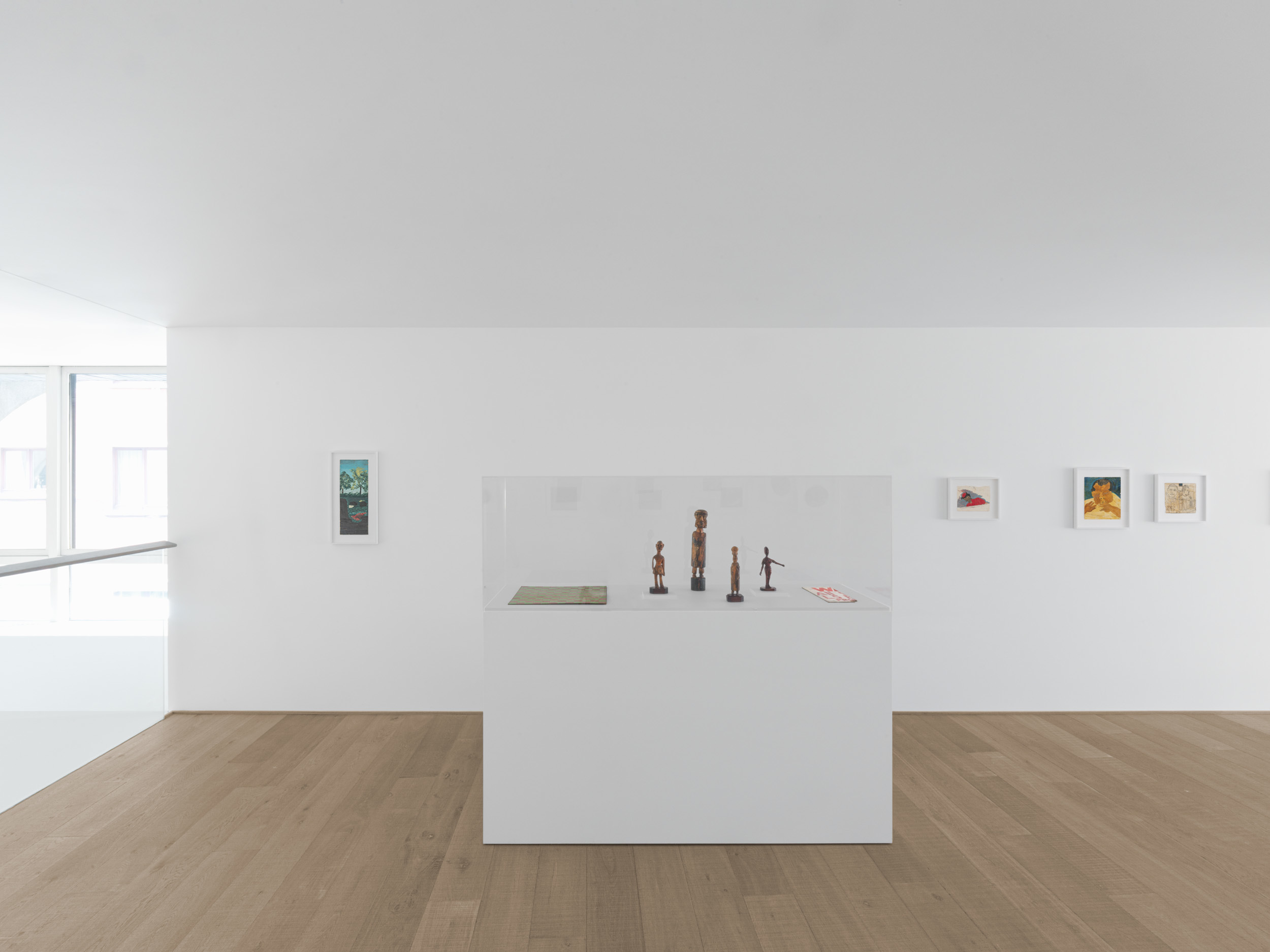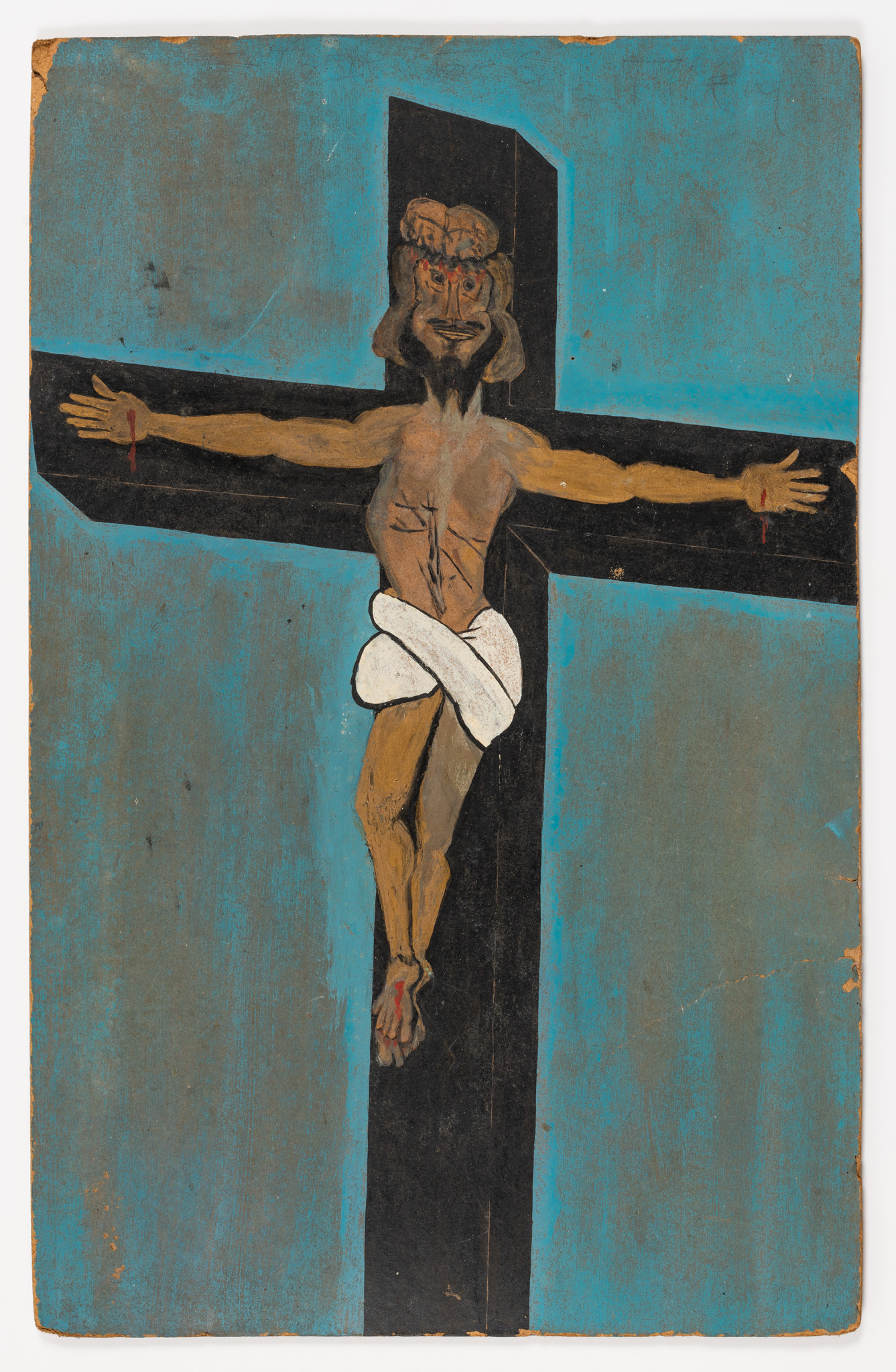 The exhibition draws the multiple strands of Frank Walter’s life together and explores the contradictions that shaped both his visual art and prose. While his story begins and ends in Antigua, his most formative years are closely linked to the Western hemisphere. Both Caribbean and European landscapes feature in the presentation as a testament to the artist’s abiding love for these contrasting places in his life. Christianity, which was introduced to Antigua by the European settlers, is still the majority religion on the island. While this is a connecting thread throughout Walter’s oeuvre, as seen in Self-Portrait as Christ on the Cross and Roman Catholic Cardinal, the artist was also immersed in myth and folklore, as evidenced by Vampire and the unique wooden carvings depicting ancient gods and figures from the indigenous Arawak culture. And while he largely avoided people in later life, he painted them constantly and compiled vast genealogies that link countless individuals across time, space and continents. Walter depicted local characters, such as Portrait of Eileen, Two Tourist Guys and Sir George Walter Counting with his Fingers (a portrait of his brother, Sir George Walter, the premier of Antigua and Barbuda). But he also portrayed contemporary and historical representatives of the ruling elite and symbols of British culture, as exemplified by Adam and Eve (Charles and Diana), Cricket Player, and the small sculpture of King Charles II of England (to whom the artist believed he was related via the king’s mistress Lucy Walter). Yet Frank Walter was also a spiritually inquisitive man whose mind was unconstrained by the physical limitations and social constructs of the world he inhabited. Non-figurative works, such as Hypnosis and Abstract Red Birds provide a window onto the alternative, almost astral realms to which Walter travelled in his mind’s eye, while Abstract Stars illustrates the refined ordering principles, or psycho-geometries, that run like a leitmotiv through his work.