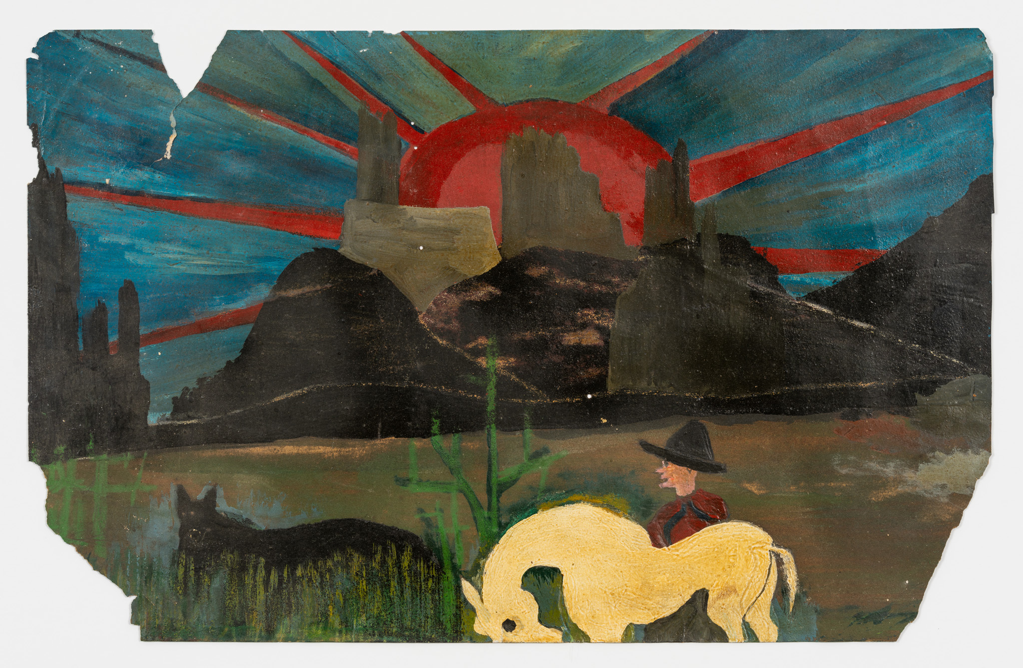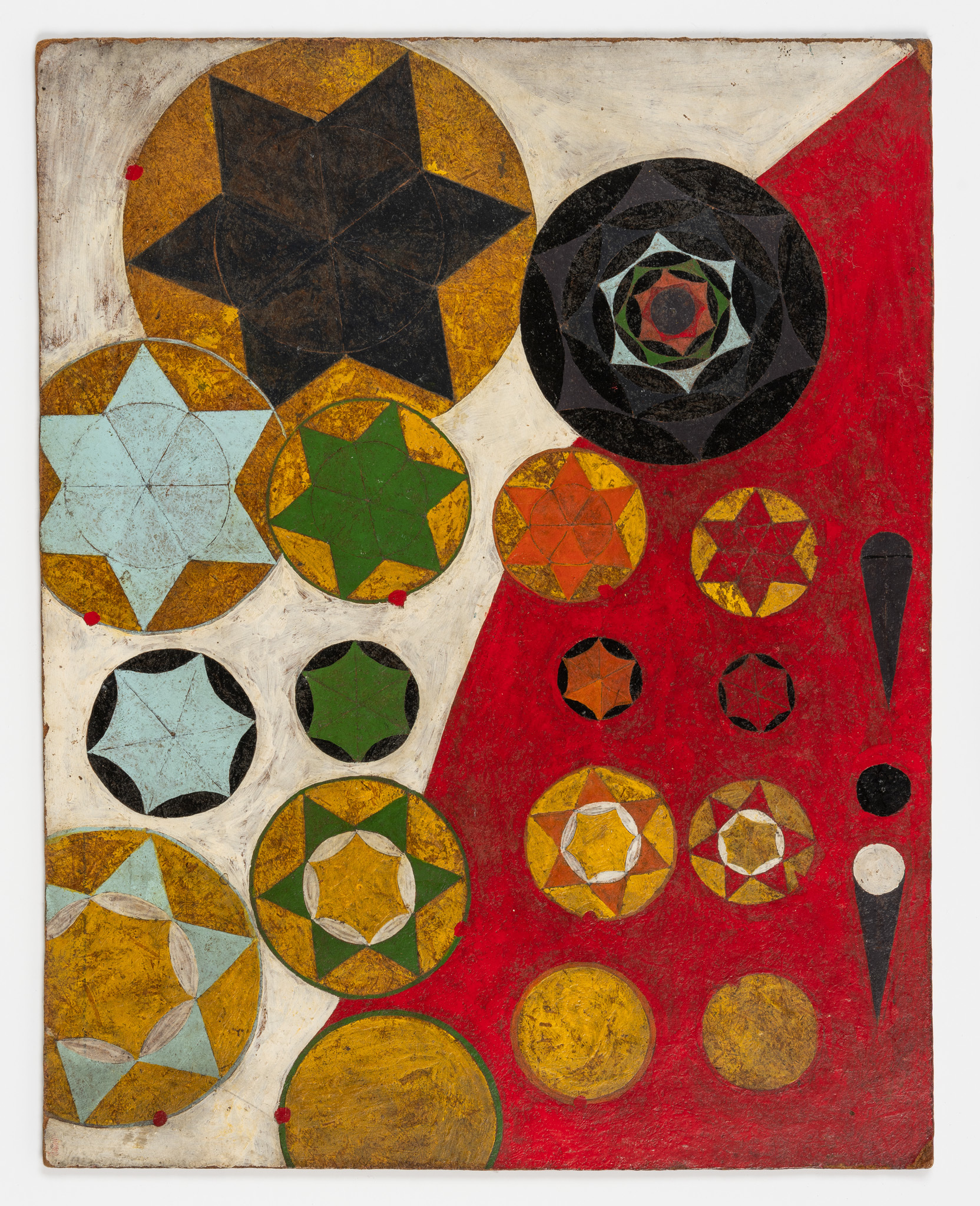 Walter’s biographical and creative journey is one of ascendence, transcendence and duality. As the offspring of both enslaved persons and German slave owners, he became the first Black man to hold the position of manager on Antigua; it was his ironic fate to manage a sugar plantation in 1948. Having broken production records by empowering his fellow workers with better pay, he embarked on a professional transatlantic voyage to England, Scotland and mainland Europe. He was a staunch civil rights advocate yet also saw himself, thanks in part to his obsessive genealogical research, as a genuine child of Europe. His self-portrait, in which he depicts himself as white, is particularly resonant in this respect. As an erudite and eloquent man, not to mention brilliant agriculturalist, artist and writer, he became increasingly dismayed at always having to justify his accomplishments to the white Europeans with whom he felt such an affinity. From 1953 to 1961 he lived in Europe and the U.K., where persistent racism had lasting effects on his mental health. Walter’s later abandonment of society to live as a semi-recluse in rural Antigua, however, was ultimately liberating. Forsaking all social conventions or expectations, he henceforth dedicated himself to his unique philosophical and prescient universe, to which he gave prolific expression in both words and images.