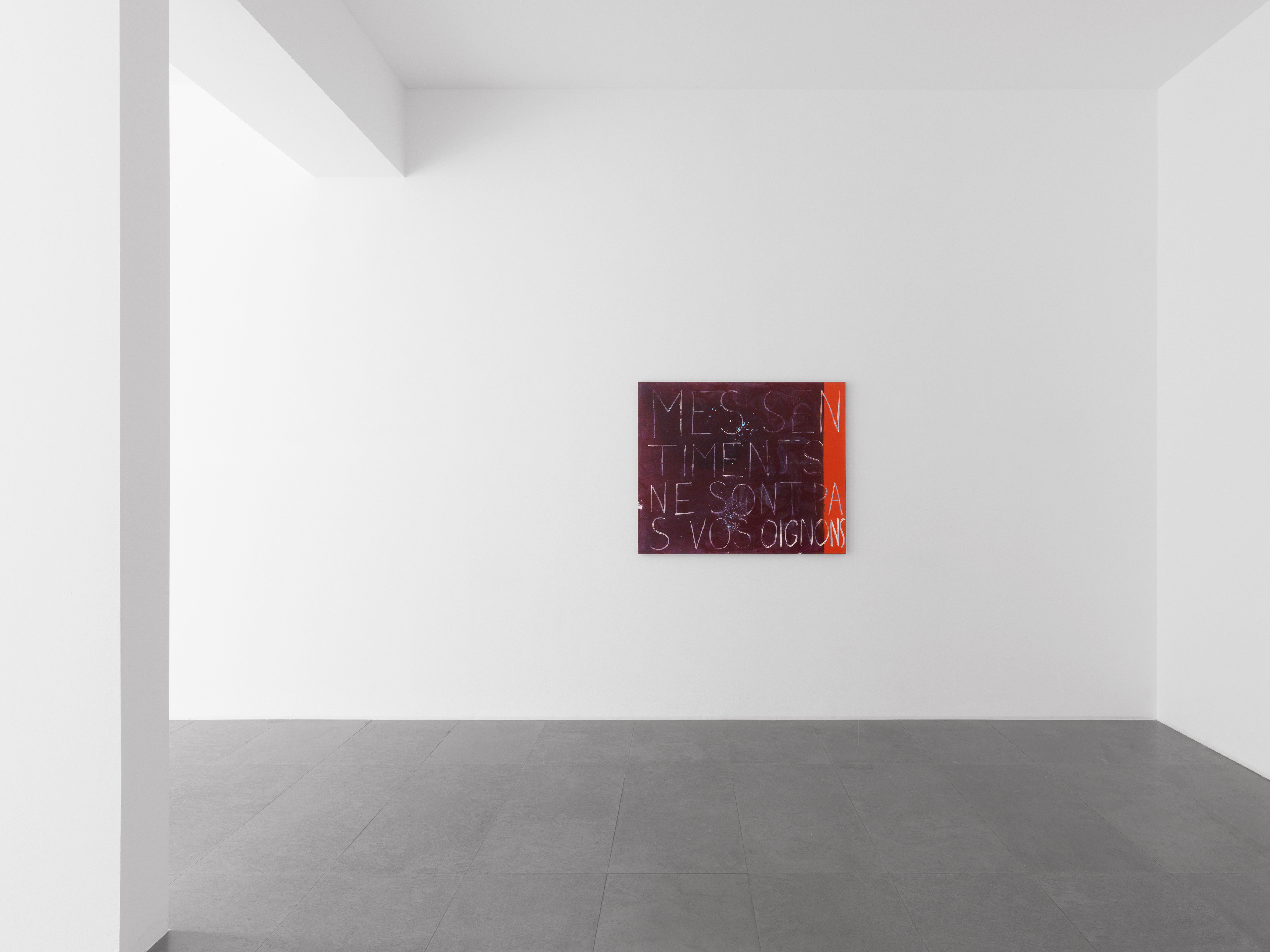 A painting by Walter Swennen always comes as a surprise. It might contain an intriguing combination of words or an isolated letter of the alphabet, a fractured message or a semi-recognisable phrase. Perhaps it will be figurative, abstract, or something in-between. Then there are the textures: opaque or transparent, rough or smooth, glossy or matte. Not to mention the techniques: brush, palette knife, sgraffito and impasto, and endless fluctuations and combinations thereof, not to mention a wealth of less orthodox methods. Finally, and last but not least, there are the colours: vivid, evocative and always beautiful. Look carefully at a work by Walter Swennen and you will discern — either instantaneously or over time — some or all of these qualities. These material aspects of the work reveal the many and varied layers of its construction. In short, they disclose ‘how’ the painting was made.