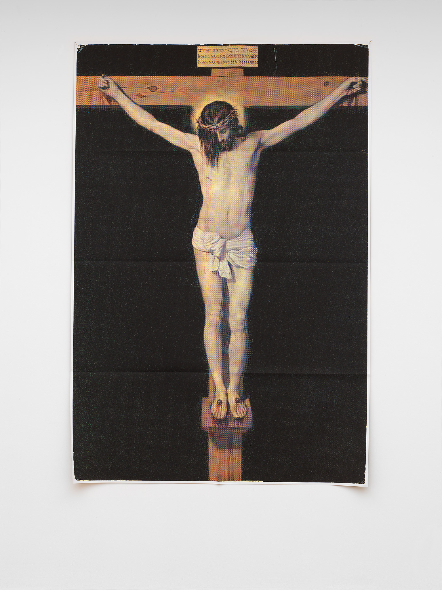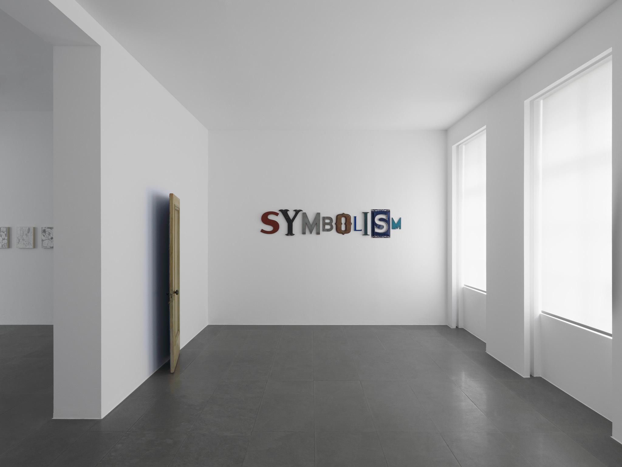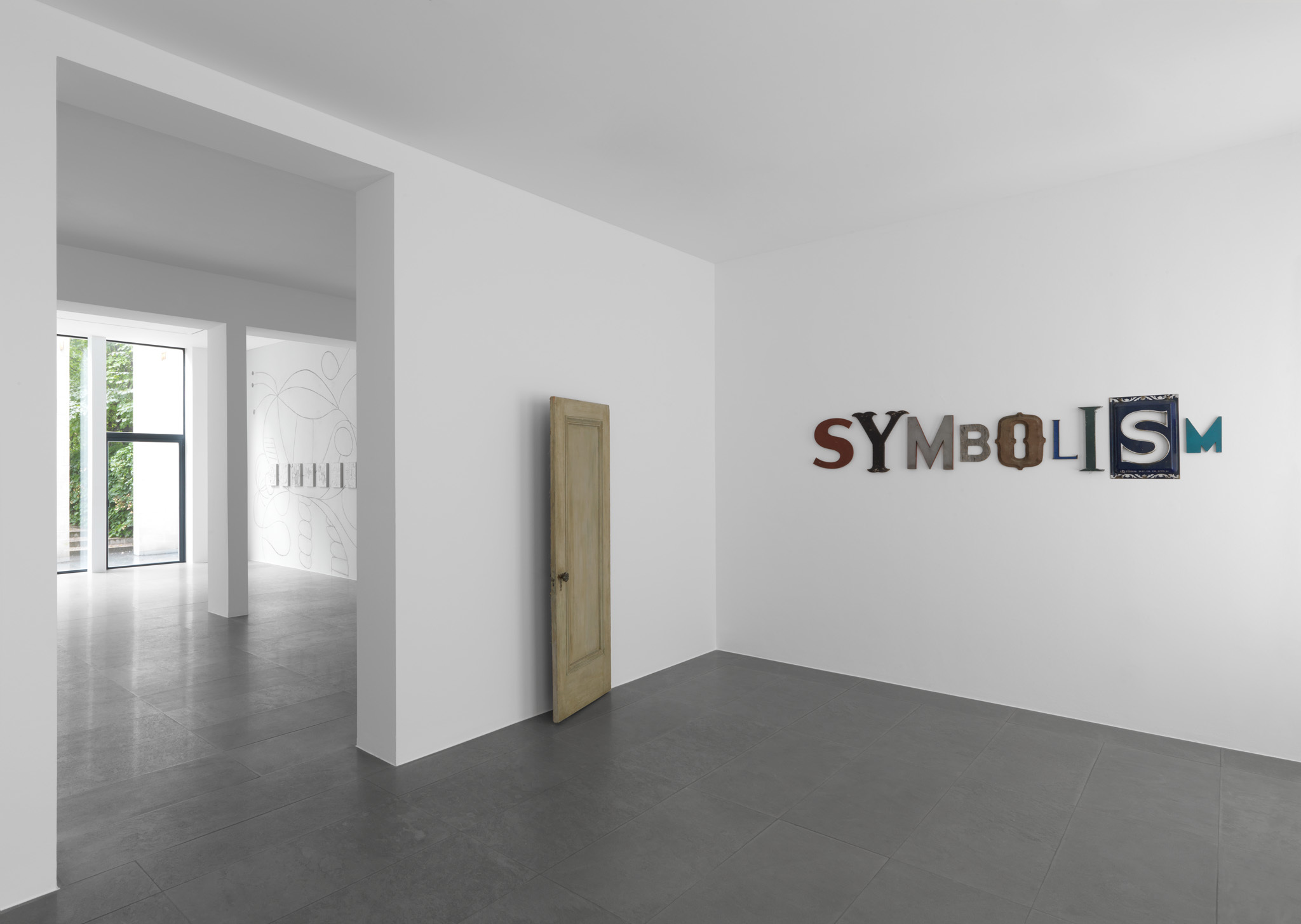 Central to the exhibition are two emblematic ‘Gods of love’: the figure of Jesus (represented by a life-size photograph of the famous crucifixion by Velázquez in the Prado) and Rudolph Valentino (1895-1920), one of the great early 20th century sex-symbols and star of the silent screen. Valentino’s sudden death aged 31 triggered mass hysteria and propelled the actor to mythical status. Although Valentino is never explicitly referred to in the exhibition, he has an emotional and physical presence in A Door from Falcon Lair, a door from the actor’s house. Created from random found letters, Pierson’s word sculptures are undeniably contemporary, yet steeped in nostalgia and the words they make (Nazimova, Fame, Symbolism, Souvenirs and Last Century) can also be interpreted through the prism of Valentino’s life and times.