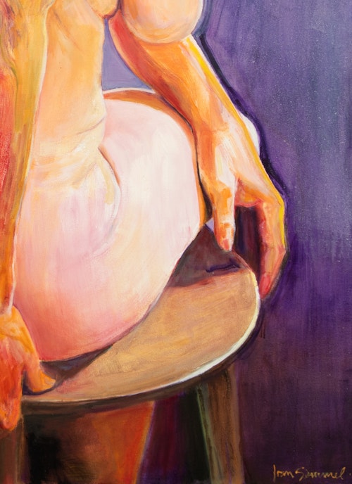 By adopting a resolutely non-objectifying stance — her own body as the subject — Semmel has created an oeuvre that not only challenges traditional representations of women but also explores themes such as identity, sexuality, and censorship. She does not consider her paintings to be self-portraits, but rather as touchstones: images that bring critical issues into focus, so that they can be confronted. While Semmel tends to work in series, the element that binds the oeuvre together — in addition to the focus on selfhood and self-representation — is the use of colour. Semmel’s approach to colouration is abstract, whereas her approach to figuration is unapologetically realistic.
