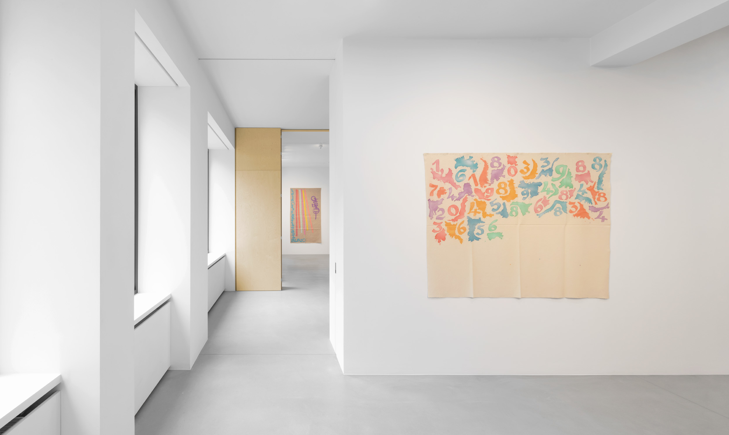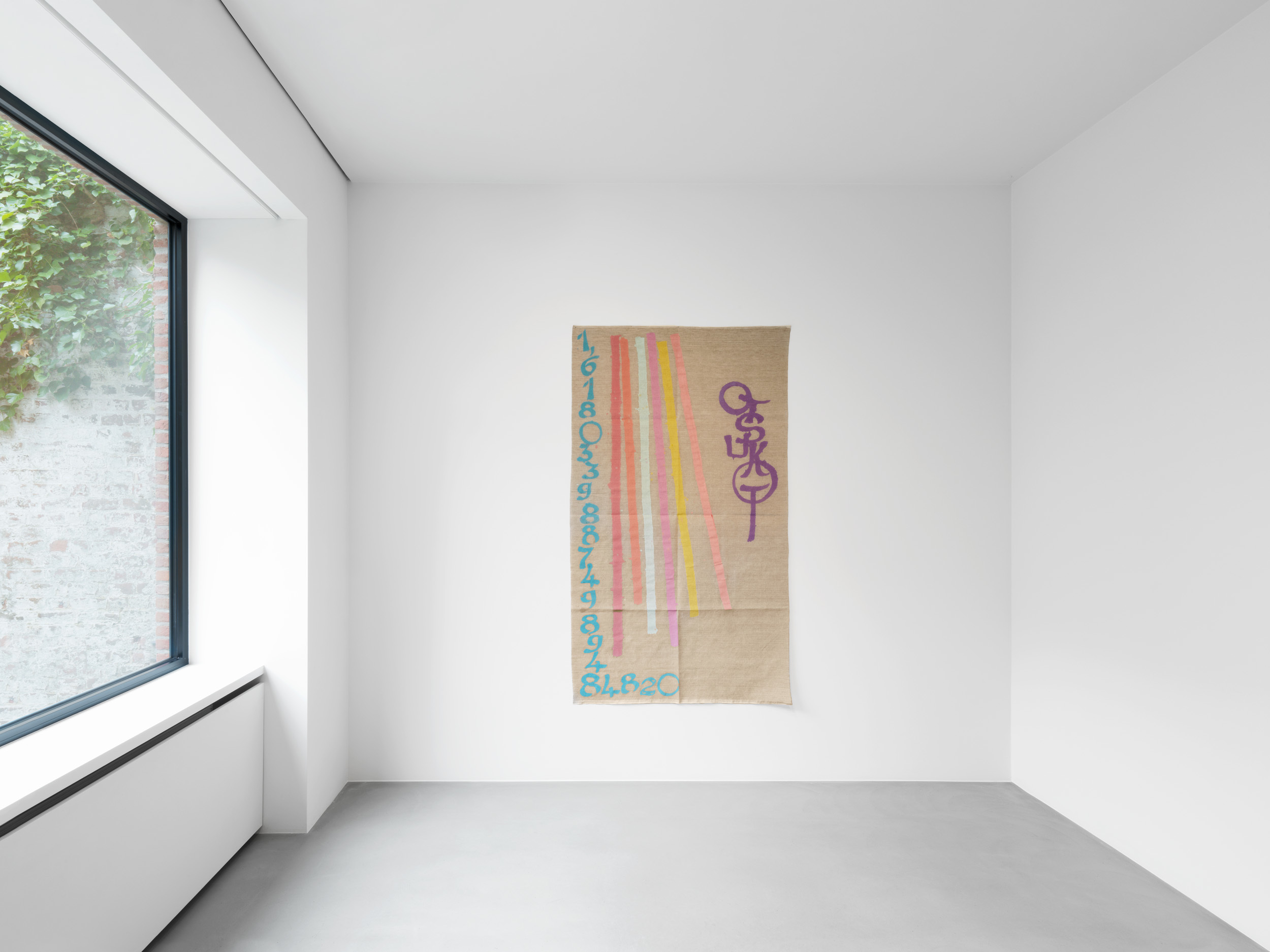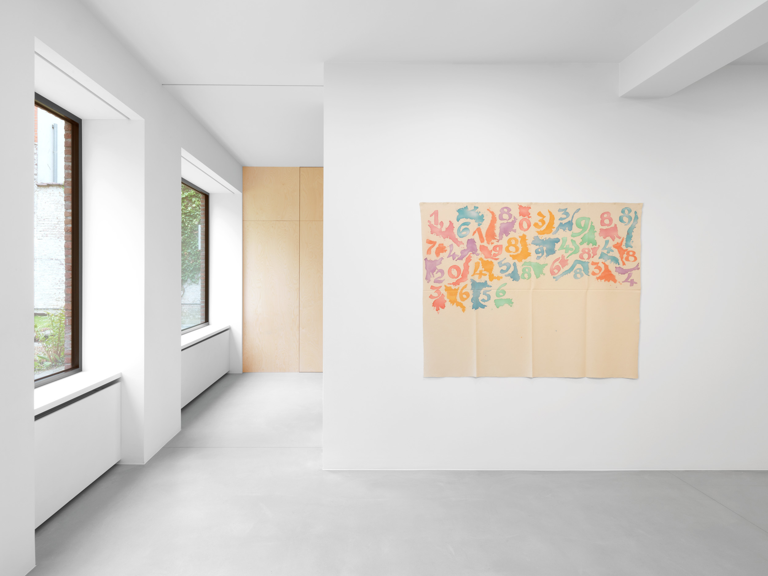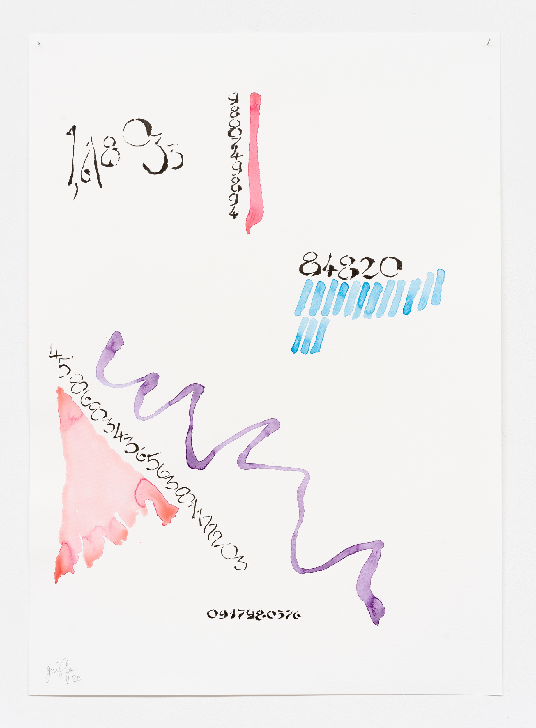 Giorgio Griffa is both a painter and a lawyer. Until he retired from his legal practice, he devoted himself to his twin professions, a combination which takes us back to the renaissance ideal of ‘universal knowledge’. Related to this are the so-called seven liberal arts, which are divided into those of the word (grammar, logic and rhetoric; the trivium) and those of numbers (arithmetic, music, astronomy and geometry; the quadrivium). As profoundly interconnected mechanisms for understanding nature and humanity, and as media for change and renewal, these disciplines were regarded as the components of a single encompassing ‘art’: the foundation of all learning. This once indivisible link between the realm of words and that of numbers runs like a leitmotif through the various cycles in Griffa’s oeuvre, as seen in the distinct bodies of work depicting letters, phrases and quotes, and those departing from numerical principles, the Fibonacci sequence or the golden ratio, also known as the ‘irrational number’. Key to translating the ideas that spring from these inspiration sources, and countless other musical, historical and philosophical starting points both ancient and modern, is Griffa’s characteristically simple visual language involving archetypal signs: letters, numbers and lines. Nothing more, nothing less. Griffa does not paint what he sees, therefore, but what he thinks or, more specifically, what he knows. As he himself once said, “I do not represent anything, I paint.” This act of painting — using the lightest of all touches and ultra-fluid acrylic pigments — is thus a means of transmission, a way of articulating a deeply humanistic worldview that it is connected to every other field of knowledge. By conflating two passages from Four Quartets by T. S. Eliot, whom Griffa has long admired, we get close to the ideas embodied in the work: “For the pattern is new in every moment / And every moment is a new and shocking / Valuation of all we have been [...] And so each venture / Is a new beginning.”