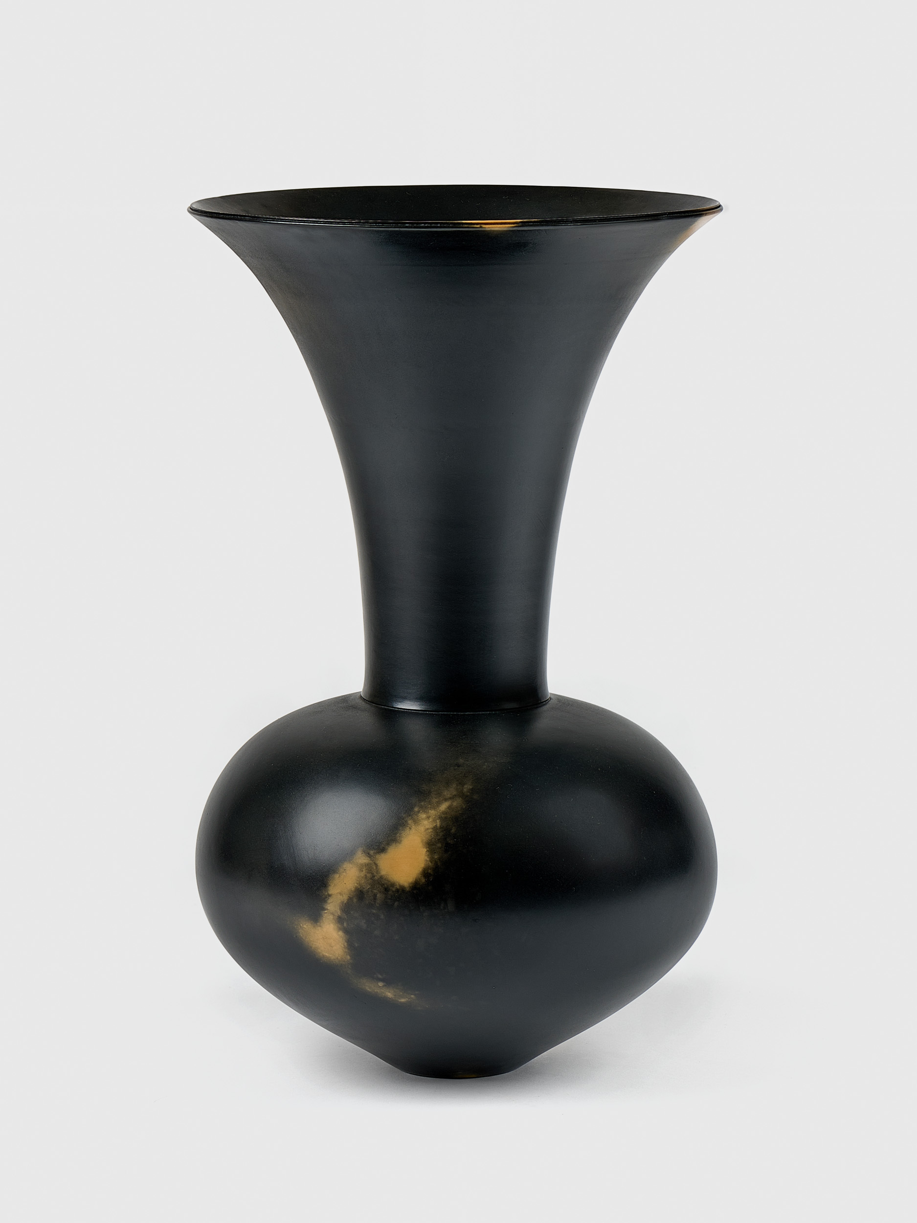 At the heart of the exhibition is a recent series of ceramic vessels, a form that has been a cornerstone of Odundo’s practice for nearly five decades. These vessels, refined in shape and rich in symbolism, draw inspiration from a wide array of global ceramic traditions—African, European, Asian, and Indigenous American – as by the human body, which Odundo likewise regards as a vessel. Her work carries a distinct anthropomorphic presence: gestures, physical states and bodily movements often serve as starting points for a vessel’s form, silhouette, proportion or balance. As one of the oldest and most universal of human-made objects, vessels transcend time, geography and culture. Moreover, they are rich with dualities: inside and outside, fullness and emptiness, fragility and strength. These oppositions echo the deeper conceptual themes in the artist’s oeuvre, such as transition, identity and cultural hybridity. For Odundo, the vessel is more than a physical object. It is an archetypal and elemental form through which to articulate relationships – between materials, histories, cultures and individuals.
