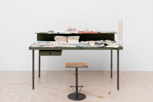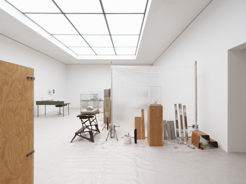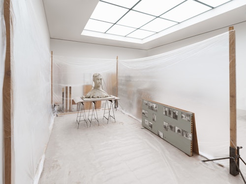 Mark Manders expands his seminal ‘Self-Portrait as a Building’ project with multiple new rooms for his inaugural exhibition with the gallery. Installations referencing domestic spaces, including a bathroom, bedroom and studio, take their place alongside monumental and domestic-scale painted bronzes, mixed-media sculptures, objects, furniture and two-dimensional works. This large-scale exhibition draws together the multiple strands of practice to reveal the depth and breadth of his oeuvre.
