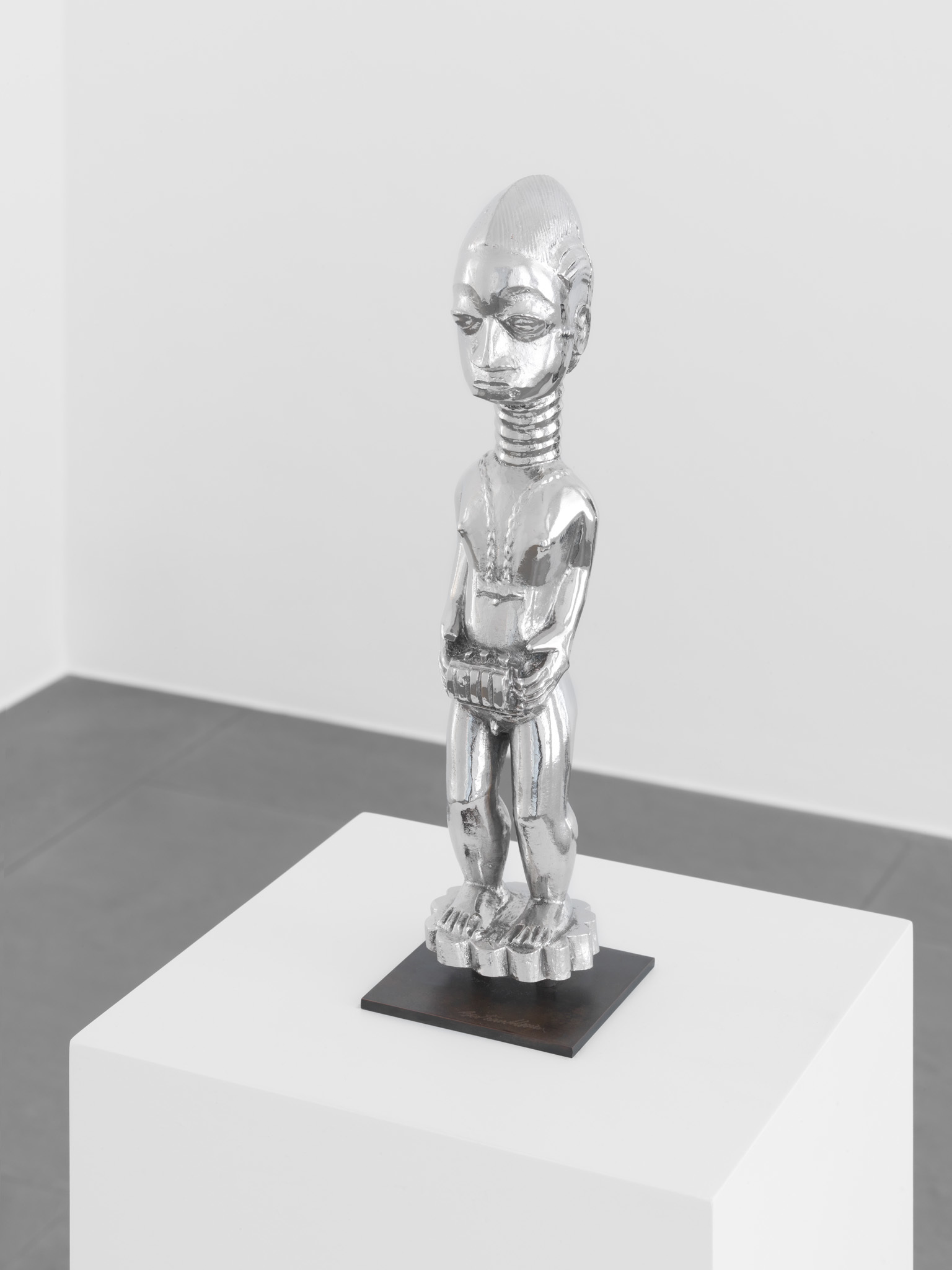 The artist is like an archaeologist of the post-industrial era. He has had a damaged canoe repaired with great care by archaeology restoration experts as if it were a priceless relict from the past, while bronze casts of African objects are treated with a layer of nickel, so that they come to resemble modern artworks. In his oeuvre, not lacking for humour, Lavier raises some pertinent questions about the aura of art and the fetishism of the object.